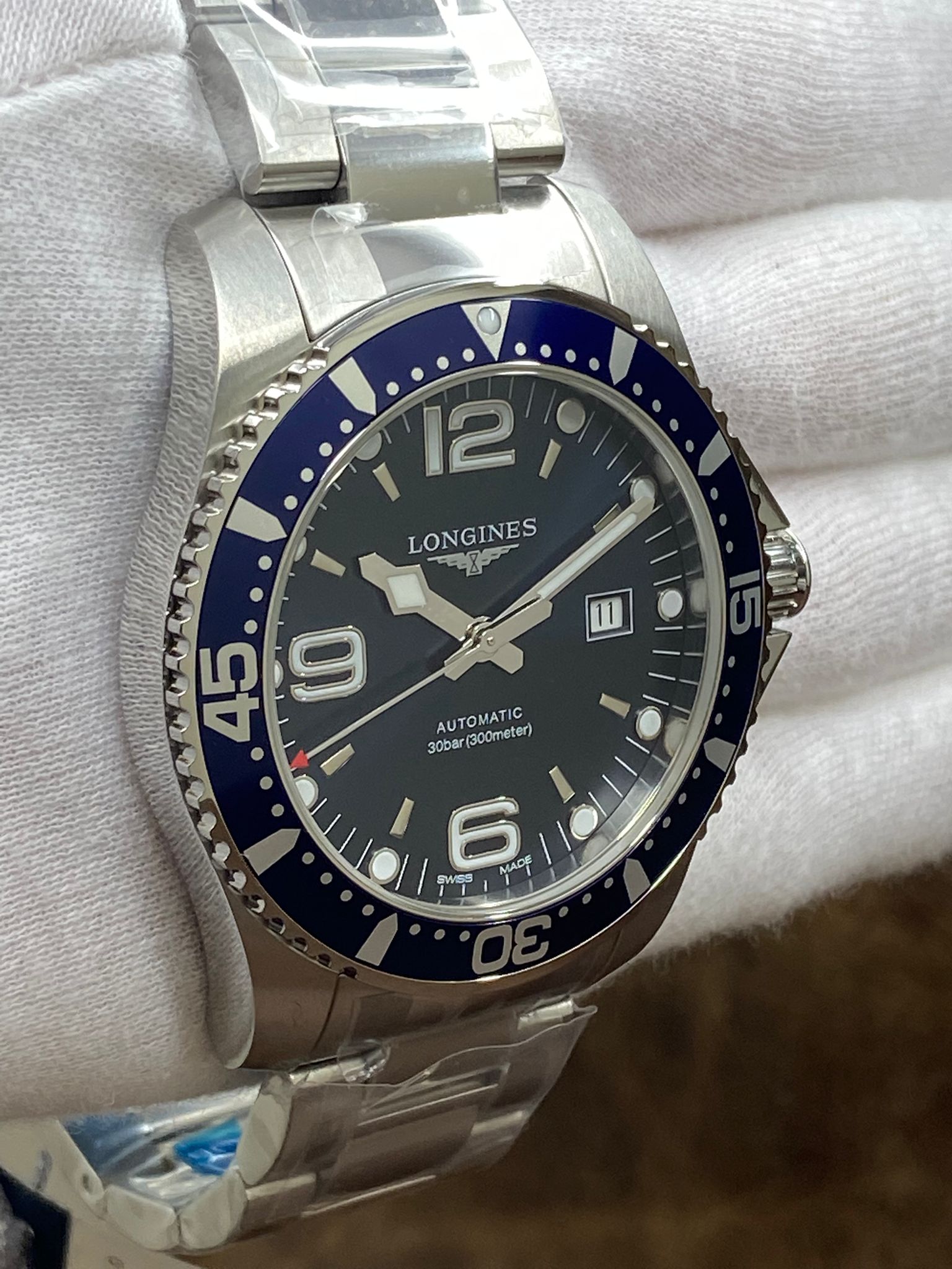 This pre-owned Longines HydroConquest L3.841.4.96.6 is in unworn with stickers condition and comes with: original Longines double box, booklet and matching warranty card dated Sep 2025. Max wrist size: 8.5 in.
