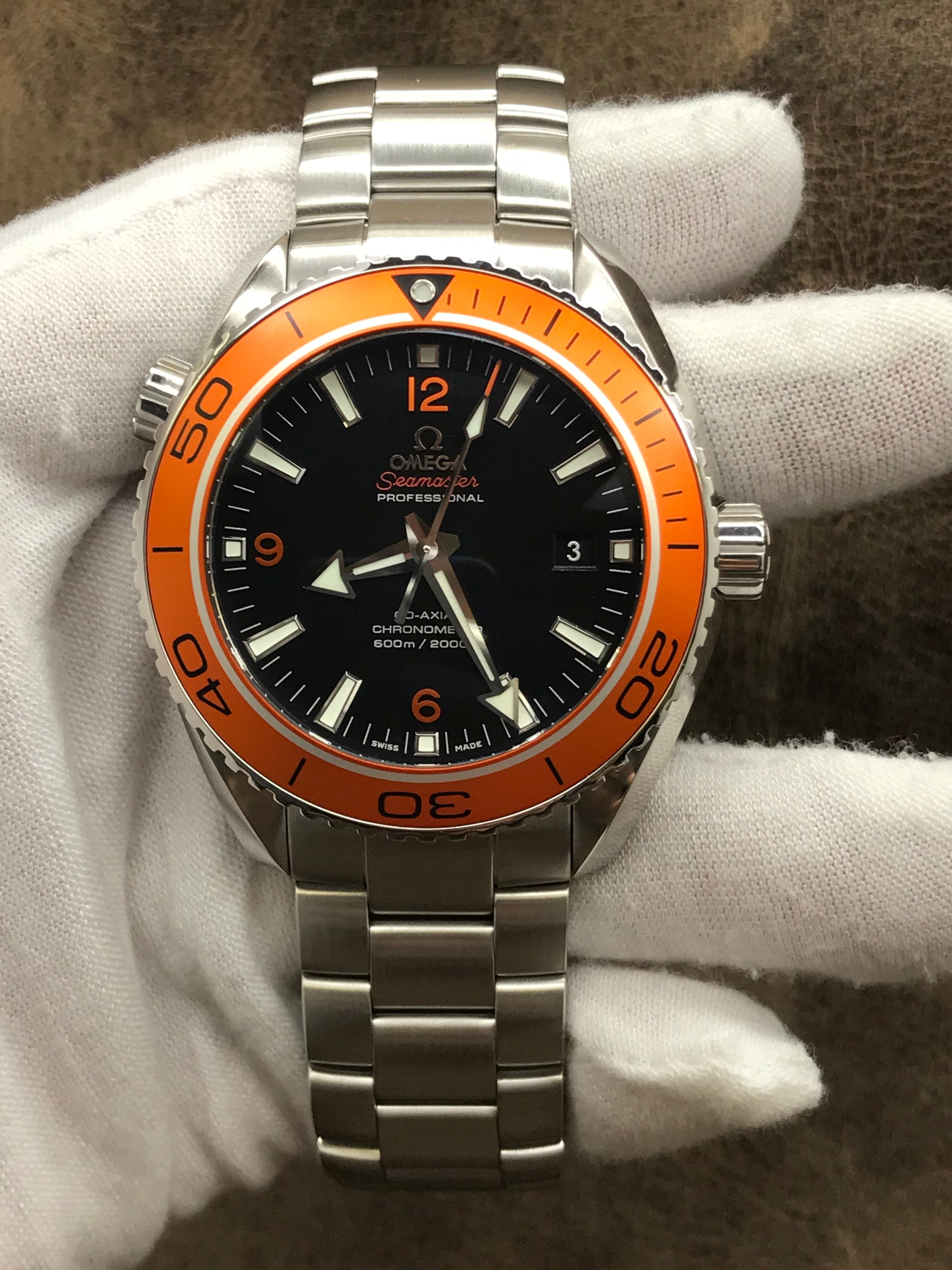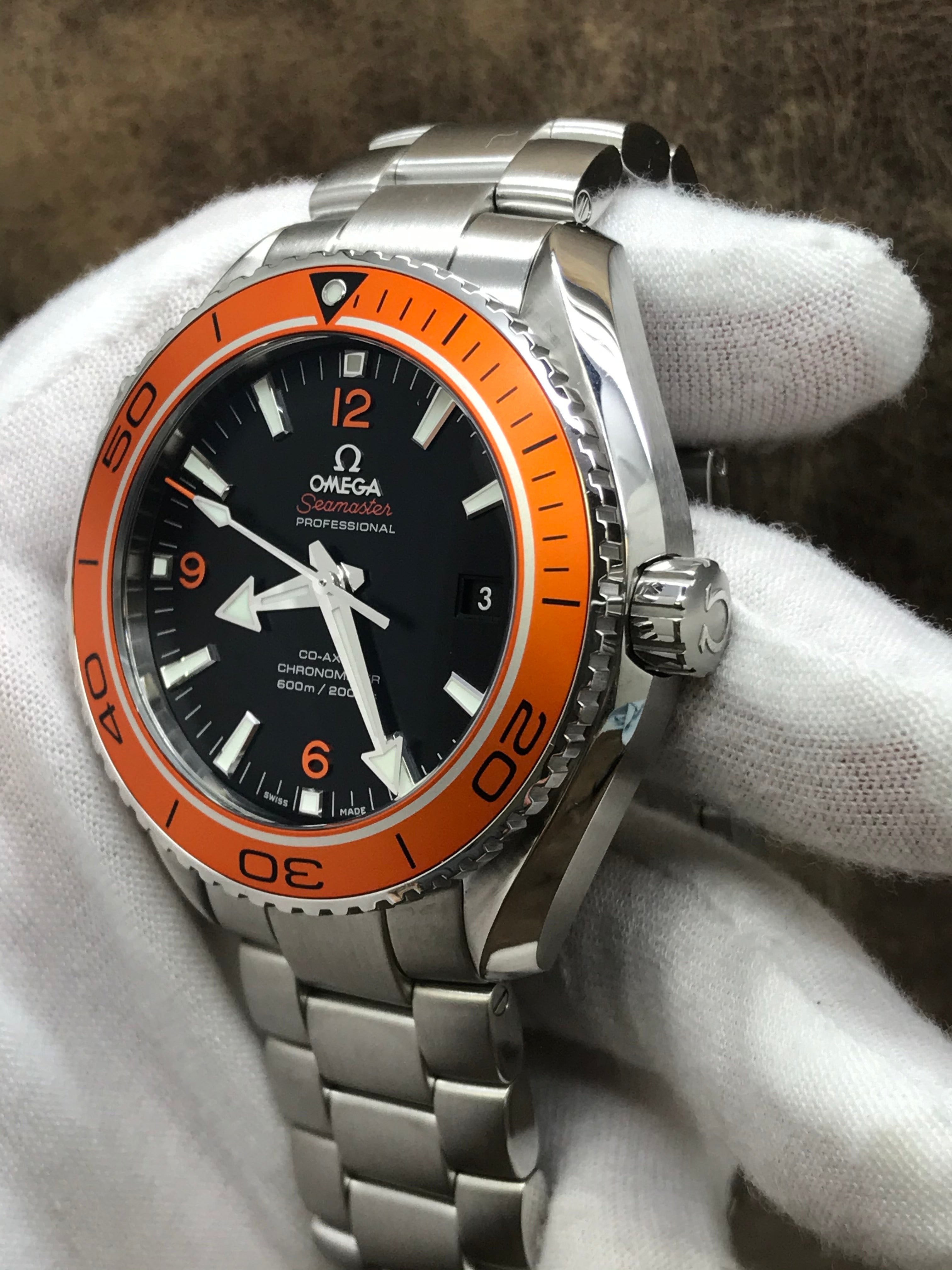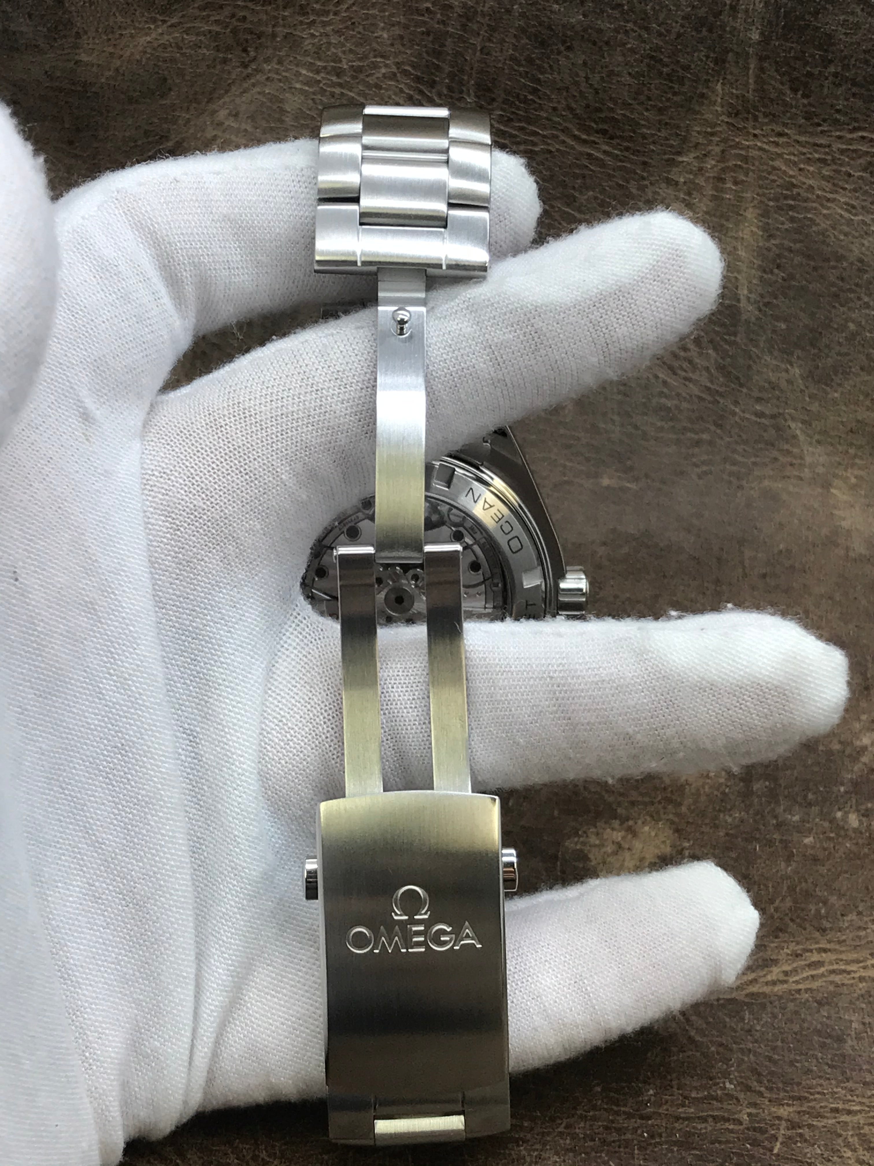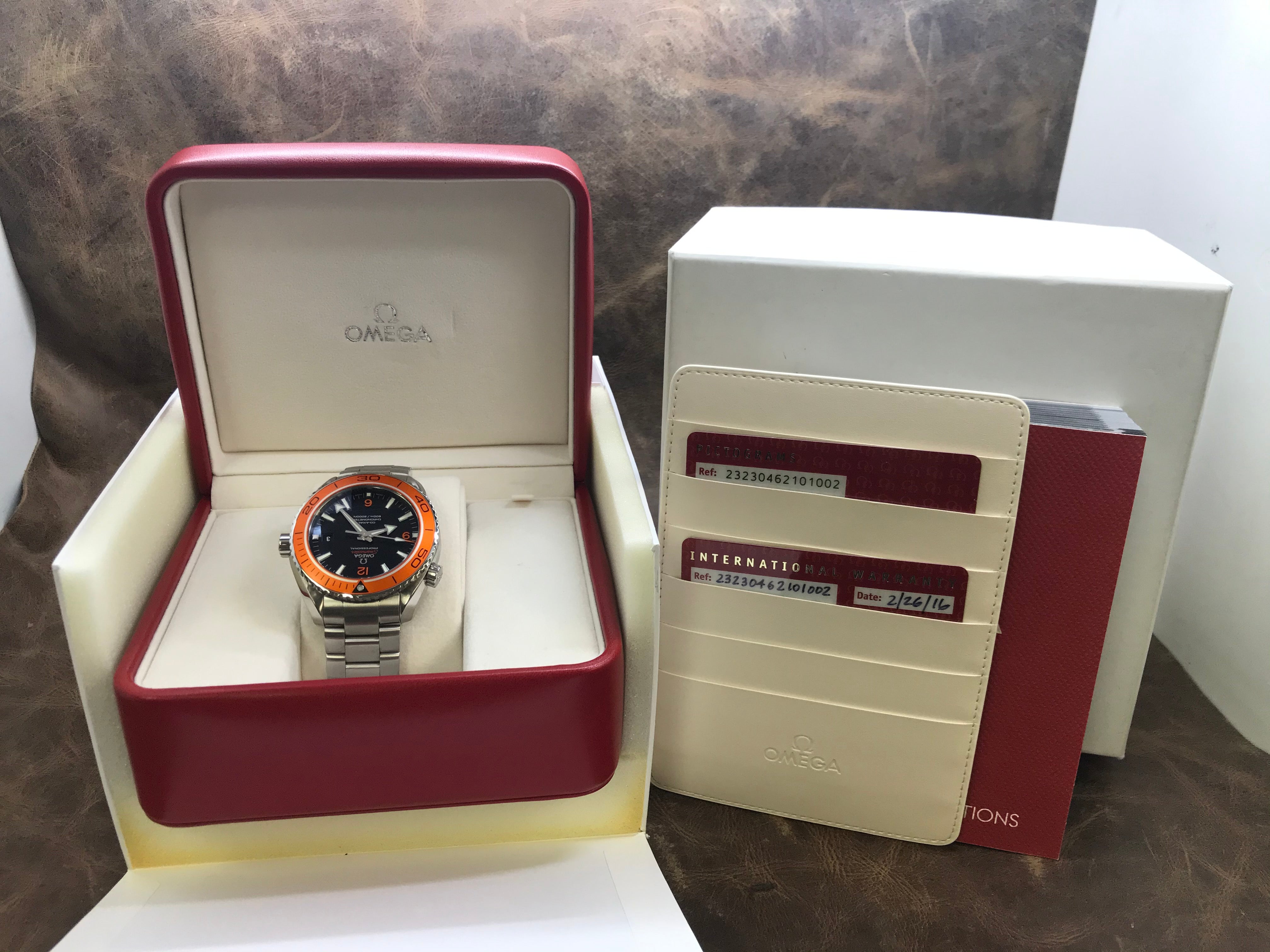 This pre-owned Omega Seamaster Planet Ocean 232.30.46.21.01.002 is in excellent condition and comes with: original Omega double box, booklet, pictograms & warranty cards dated 2016. Max wrist size: 7.75 in.