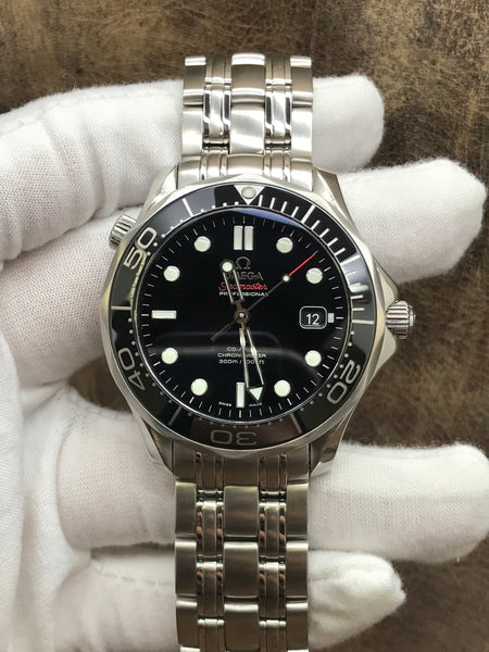 This pre-owned Omega Seamaster 212.30.41.20.01.003 is in excellent condition and comes with: original Omega travel pouch, booklet, tag, pictograms & matching warranty card dated 2015. Max wrist size: 8.25 in.