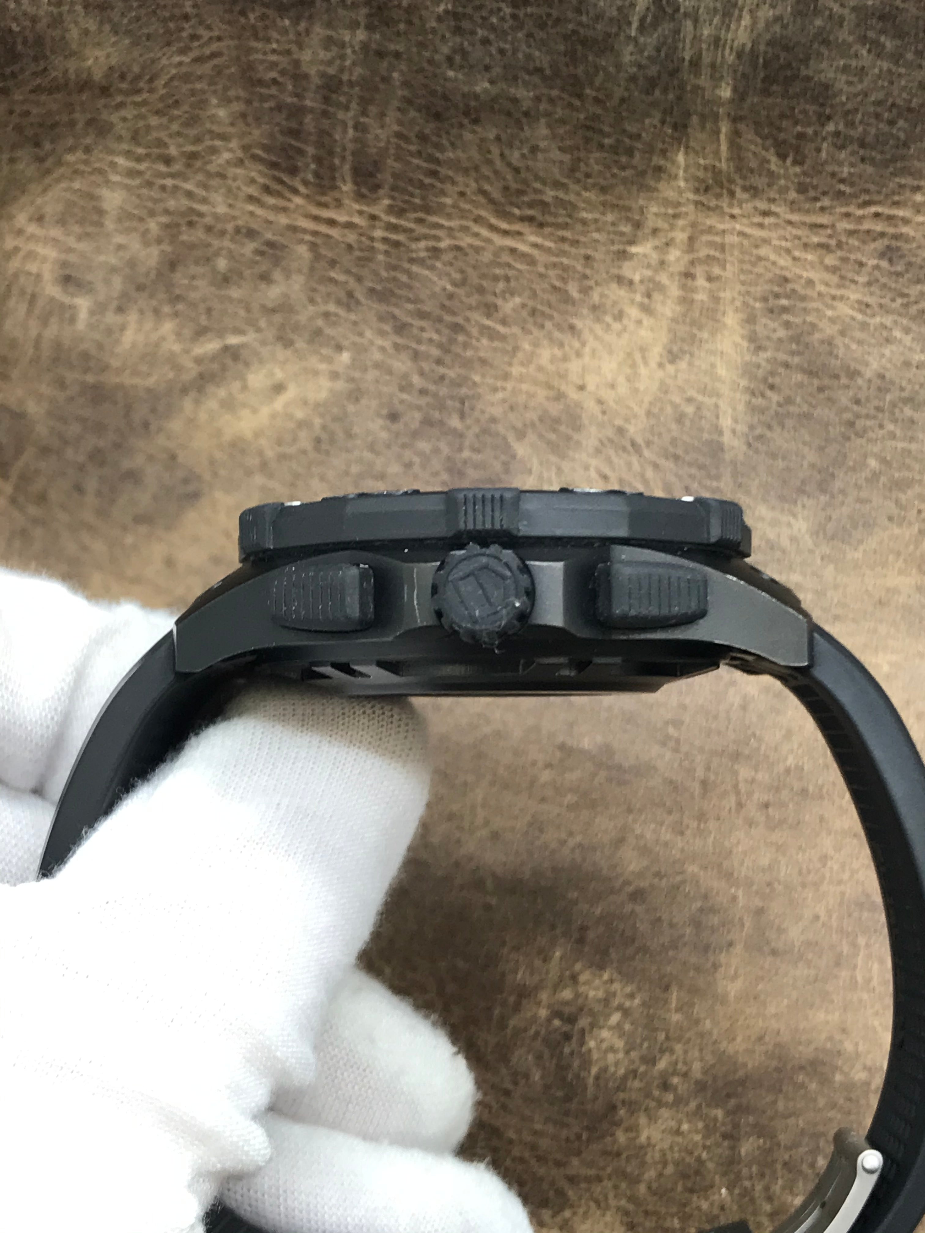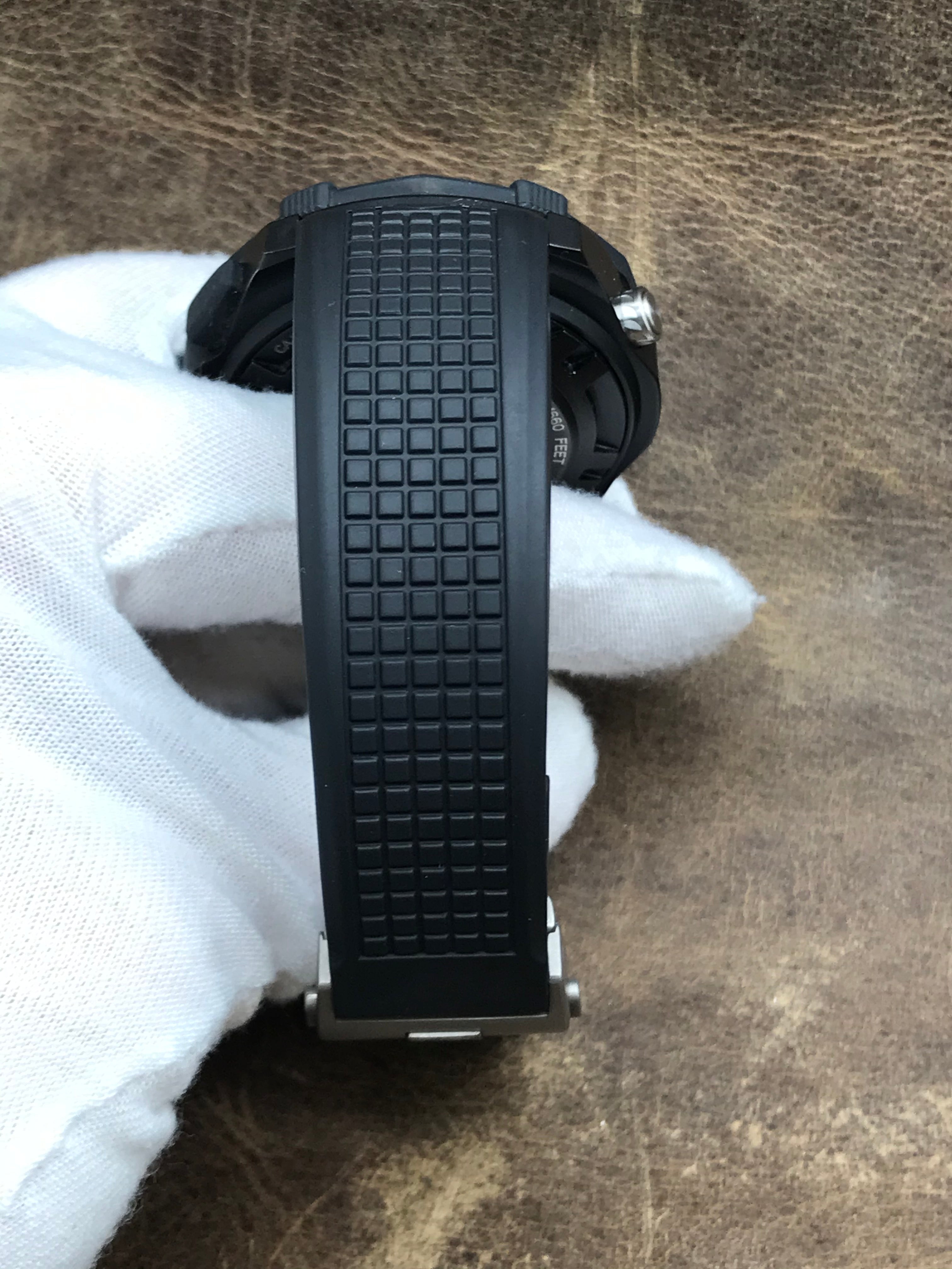 - Features Hours; minutes; seconds; date; chronograph; pvd; titanium; rubber; strap