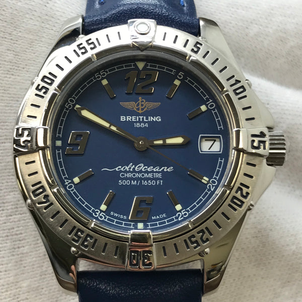 Omega also offers a range of diving watches from the Seamaster Diver 300M to the Seamaster Planet Ocean 600M to the Seamaster Ploprof 1200M. Finally, Breitling makes the vintage-inspired Superocean Heritage (200 meters), the modern Superocean (1,000 meters), and the professional Avenger II Seawolf (3,000 meters).