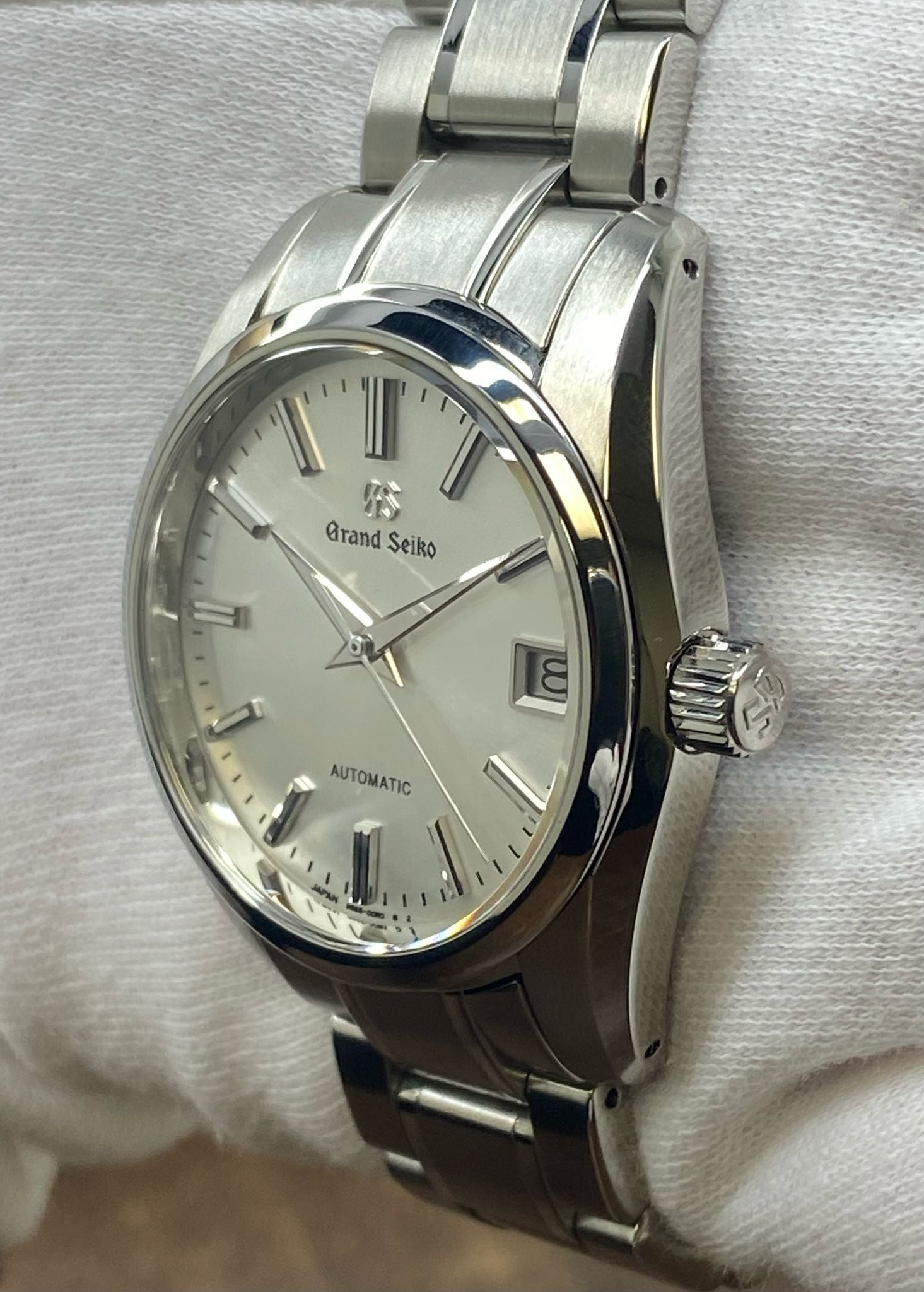 Stainless steel case with a stainless steel bracelet. Fixed stainless steel bezel. Silver dial with silver-tone hands and index hour markers. Dial type: analog. Caliber 9s65 automatic movement with about 72 hours of power reserve. Dual-curved sapphire crystal with anti-reflective coating on inner surface crystal. Crown. Transparent case back. Case size: 37 mm. Case thickness: 13.3 mm. Round case shape. Band width: mm. Fold over with push button release clasp. Water resistant at 100 meters / 330 feet. Functions: date, hour, minute, seconds, . Grand Seiko Heritage Collection 37mm SBGR251 Silver Dial Automatic Men's Watch.