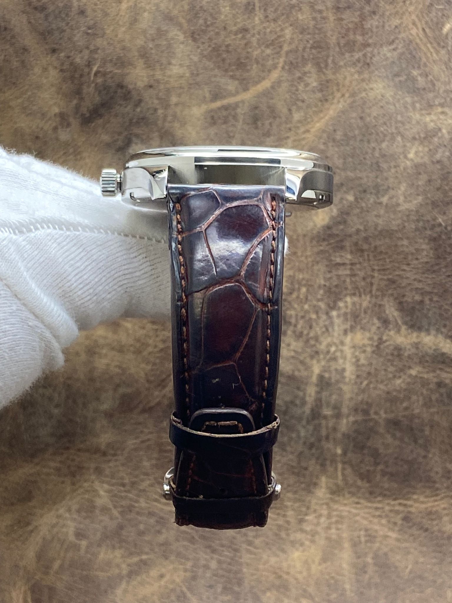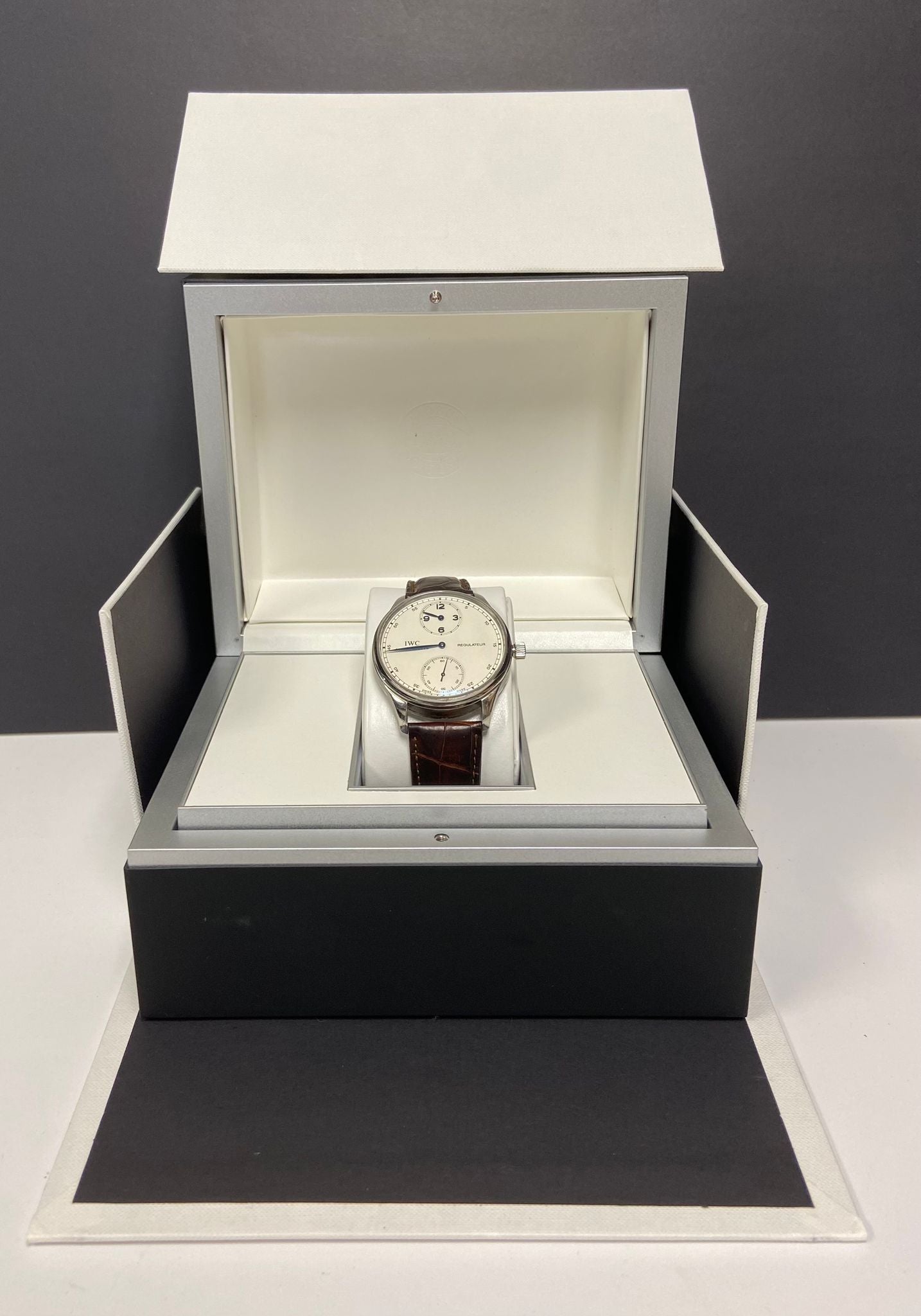 This pre-owned IWC Portuguese Regulator IW544401 is in very good condition and comes with: original IWC double box only. The watch is not waterproof and the front crystal has a few minor hairlines. Max wrist size: 8 in.