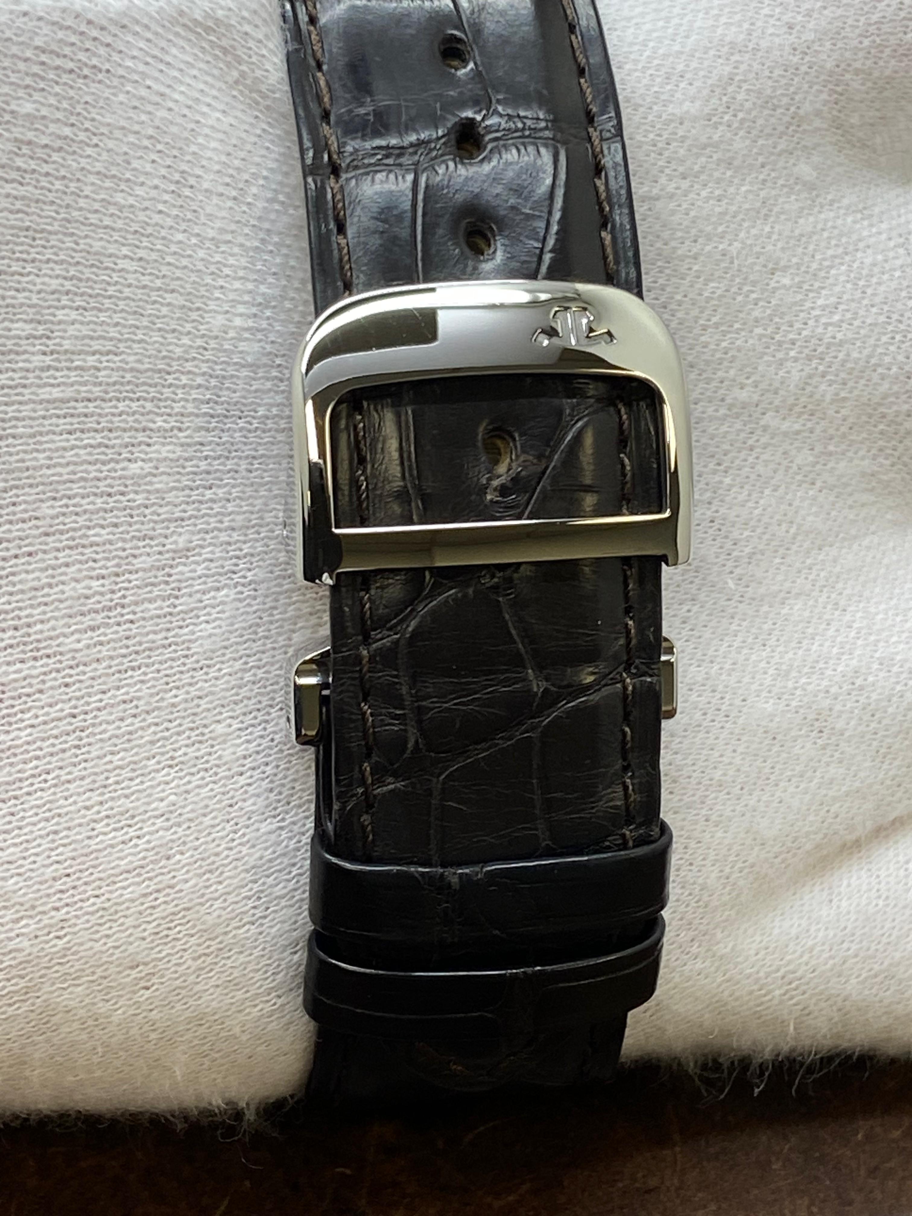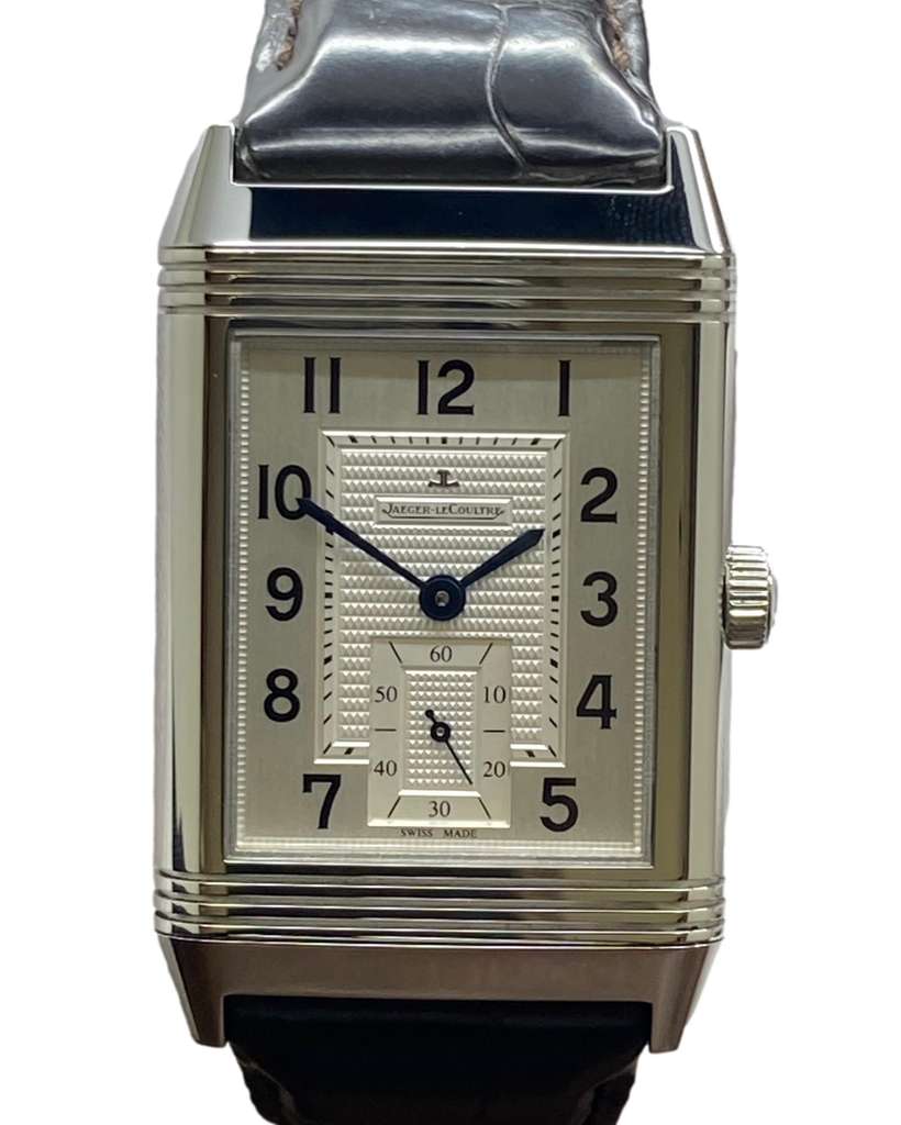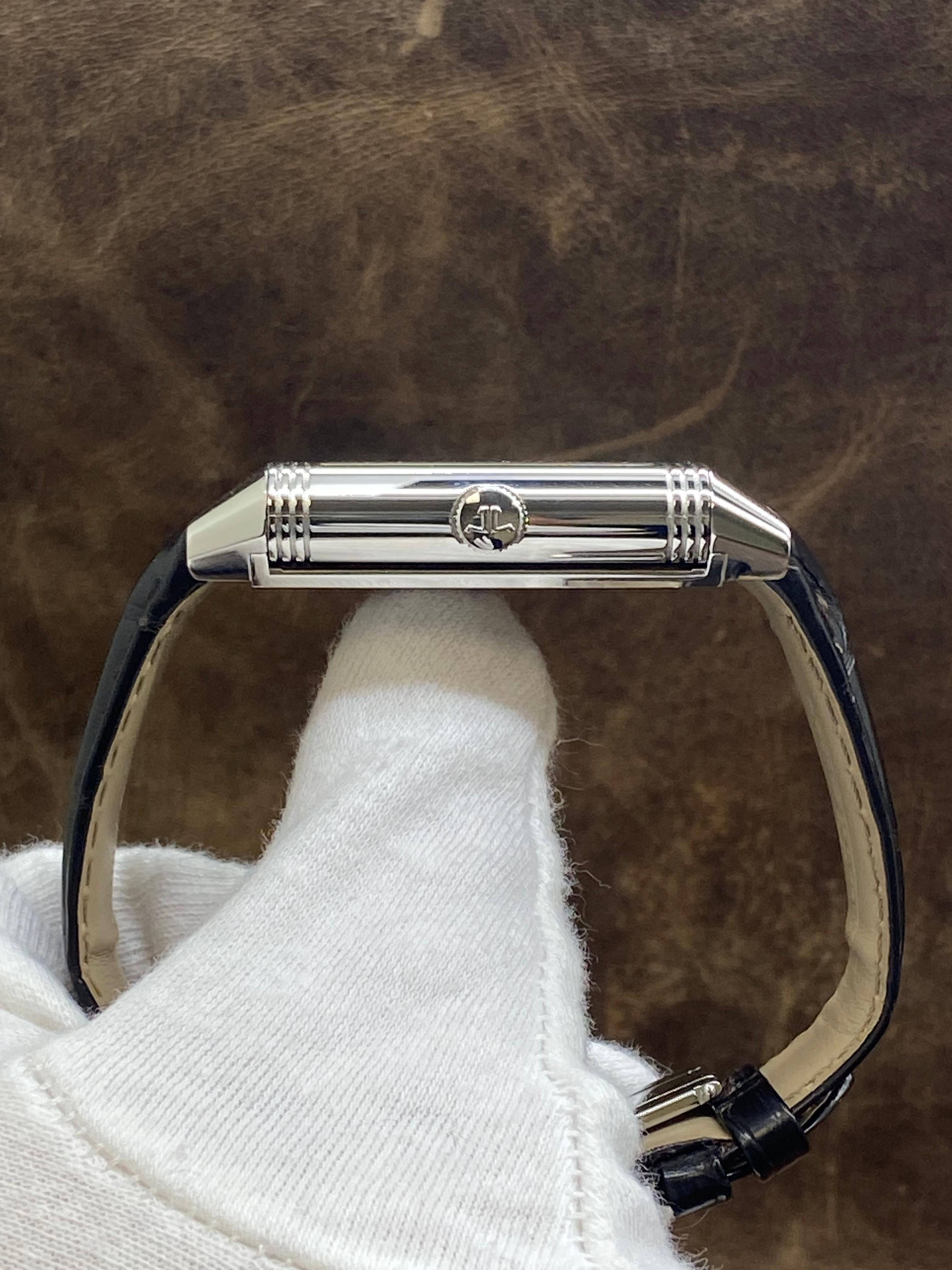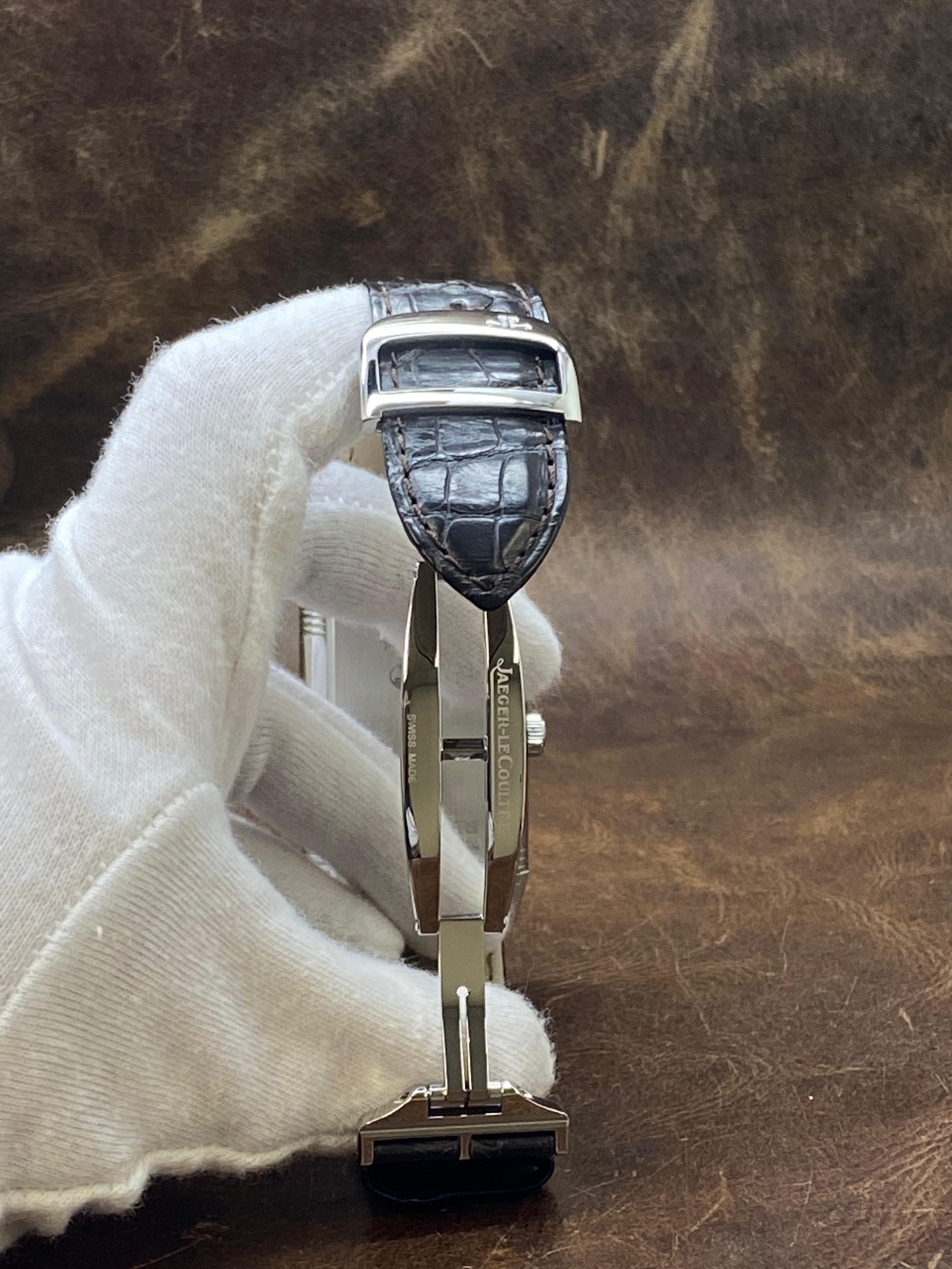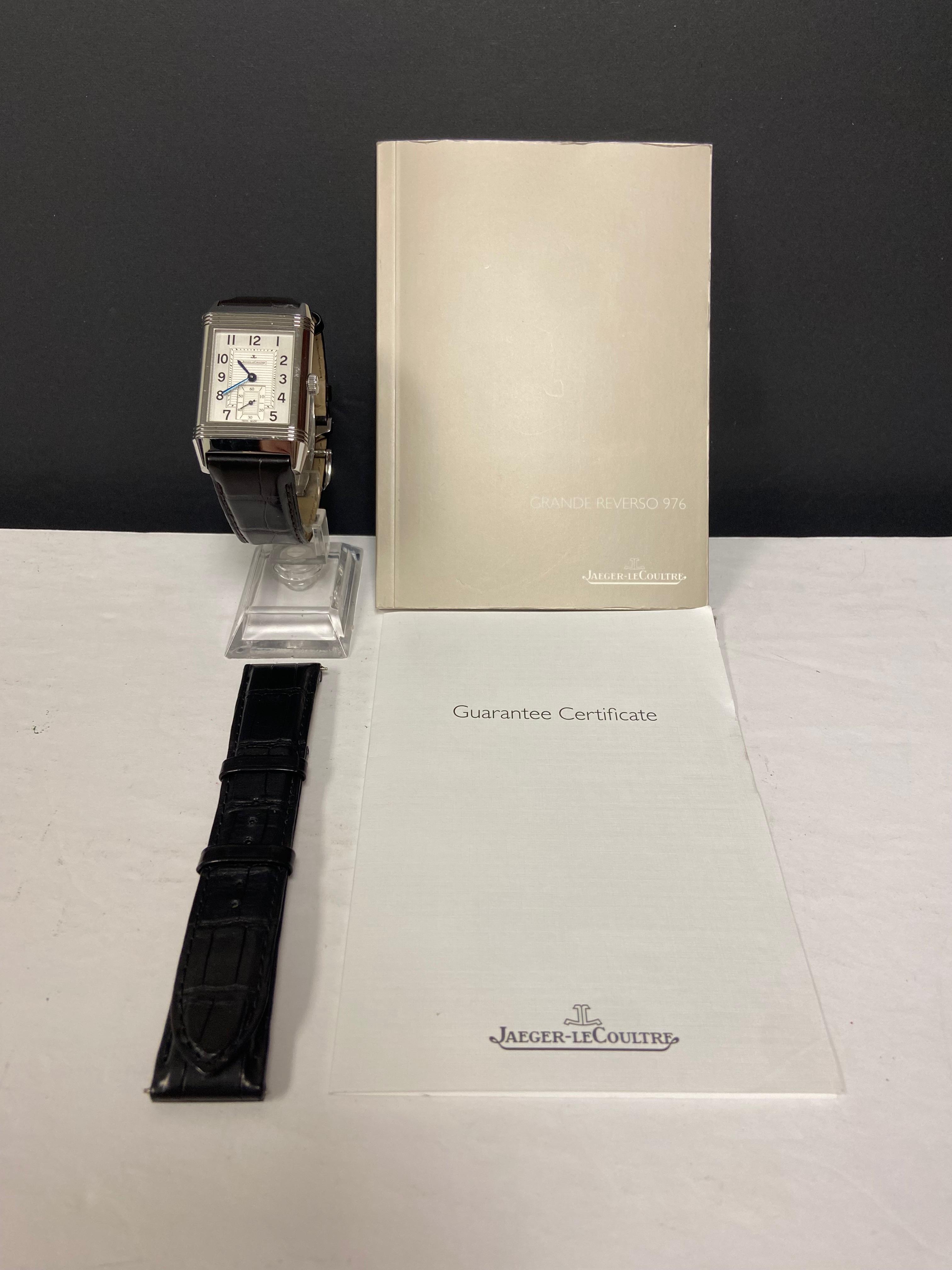 This pre-owned Jaeger LeCoultre Reverso 976 273.8.04 / Q3738420 is in mint condition and comes with: original booklet, extra strap and matching warranty papers dated 2011.