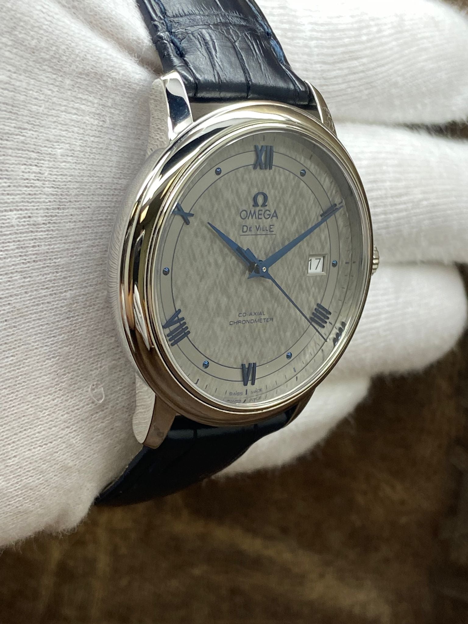This pre-owned Omega De Ville Prestige Co-Axial 424.13.40.20.06.002 is in excellent condition and comes with: original Omega double box, booklet and matching pictograms card only. Max wrist size: 7.5 in.