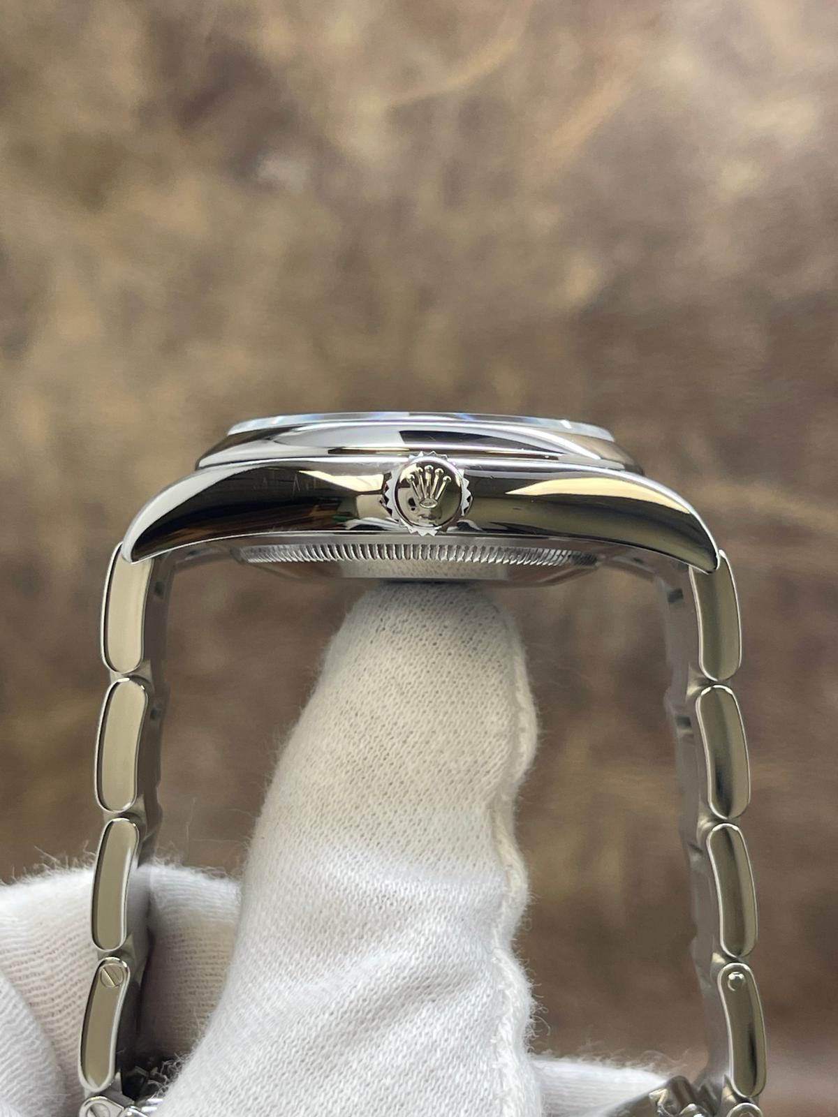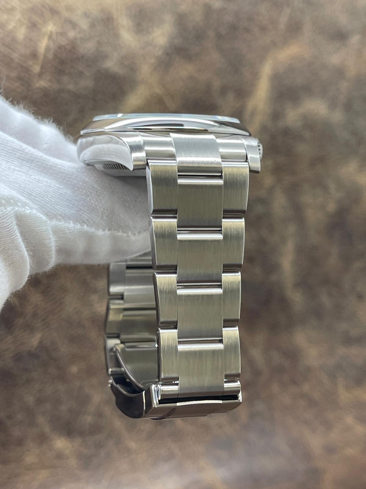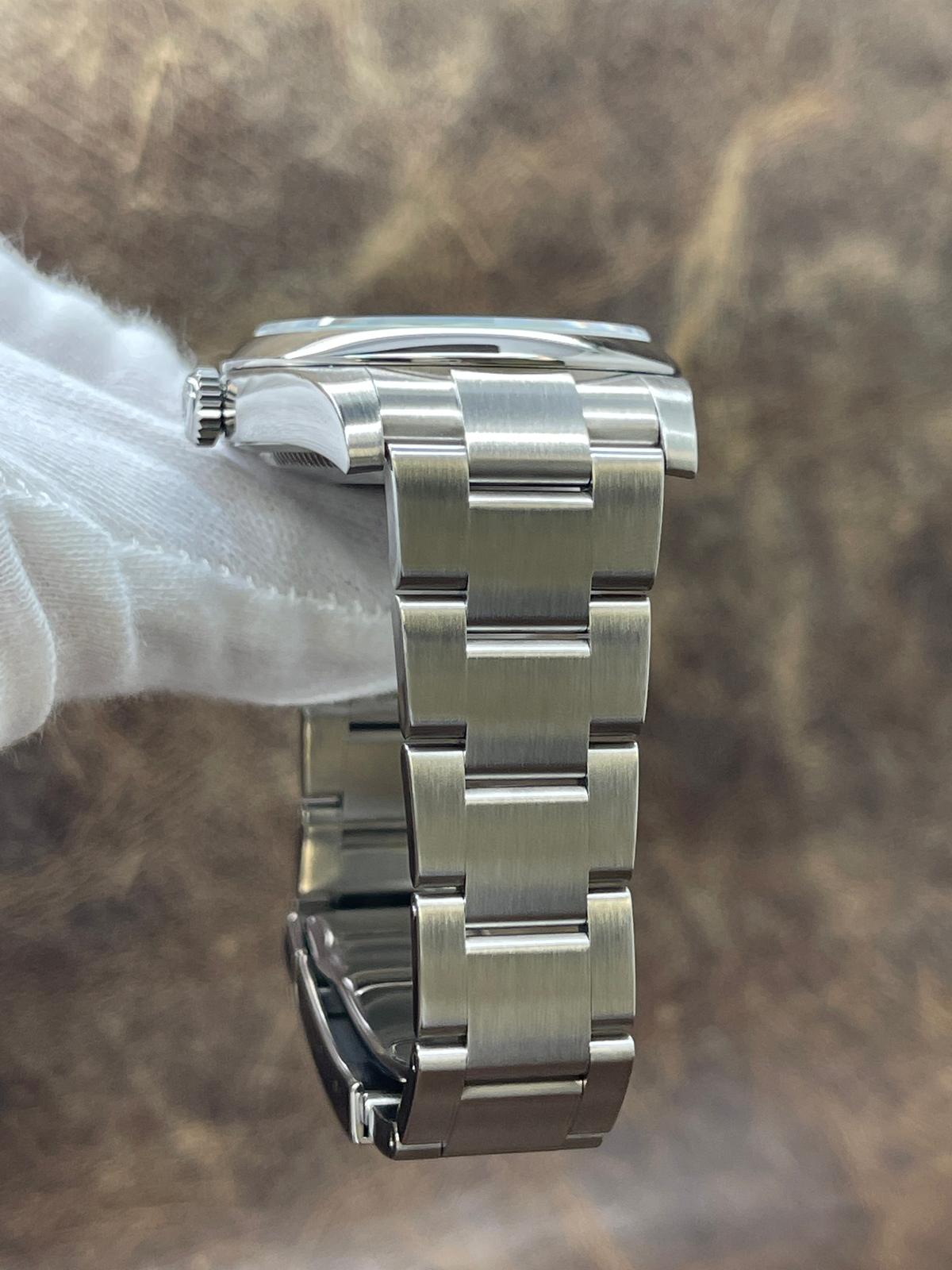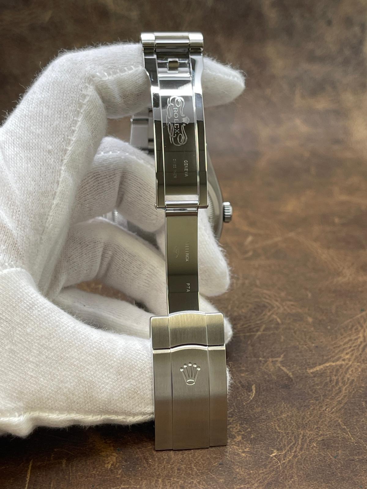 This pre-owned Rolex Oyster Perpetual 36mm 116000 is in mint condition and comes with: original Rolex double box and matching warranty card dated 2019. The watch comes with a Custom Tiffany dial. Max wrist size: 6.25 in.