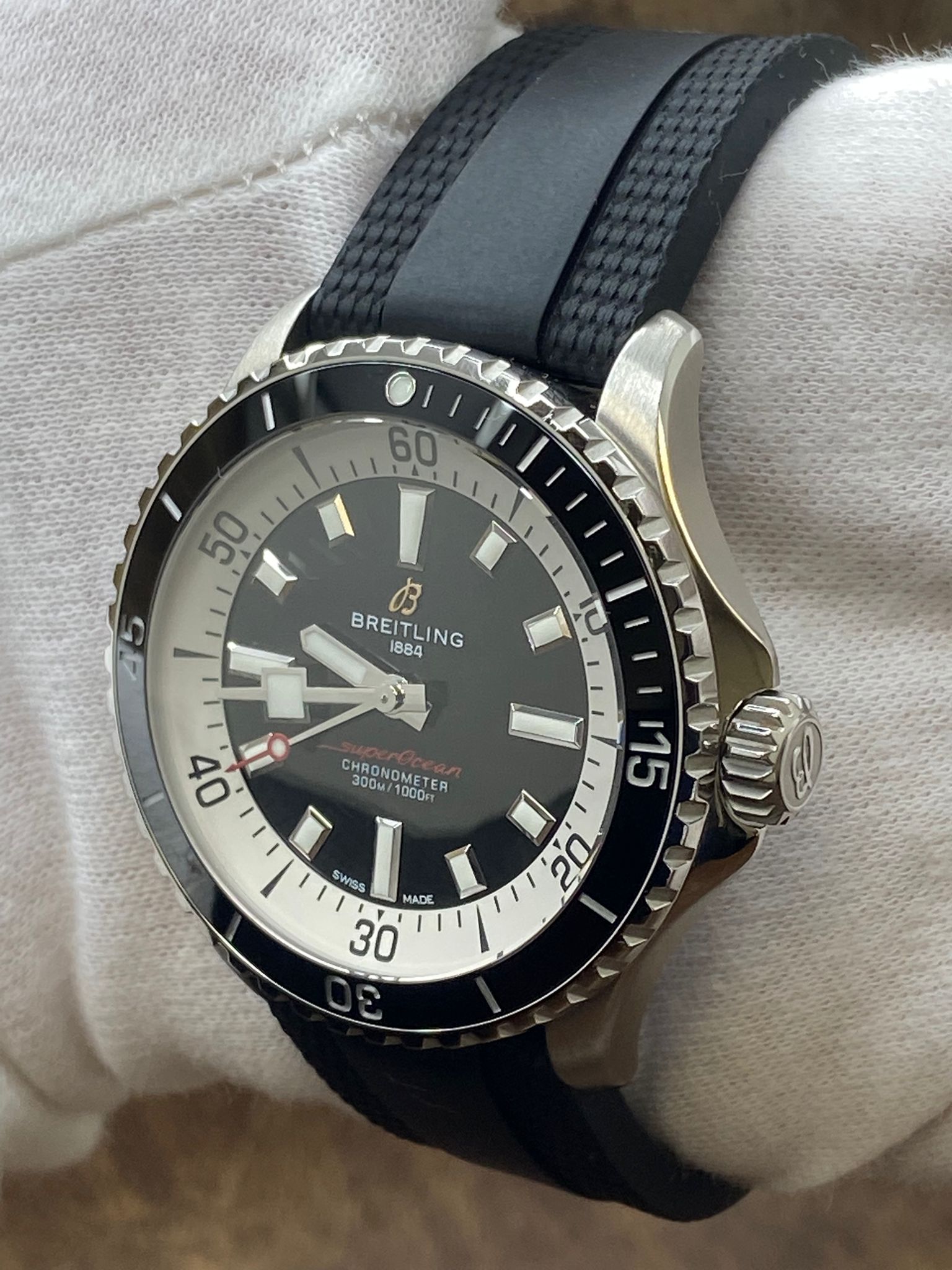 This pre-owned Breitling Superocean 42mm A17375 is in excellent condition and comes with: original Breitling travel box only . Max wrist size: 7 in.