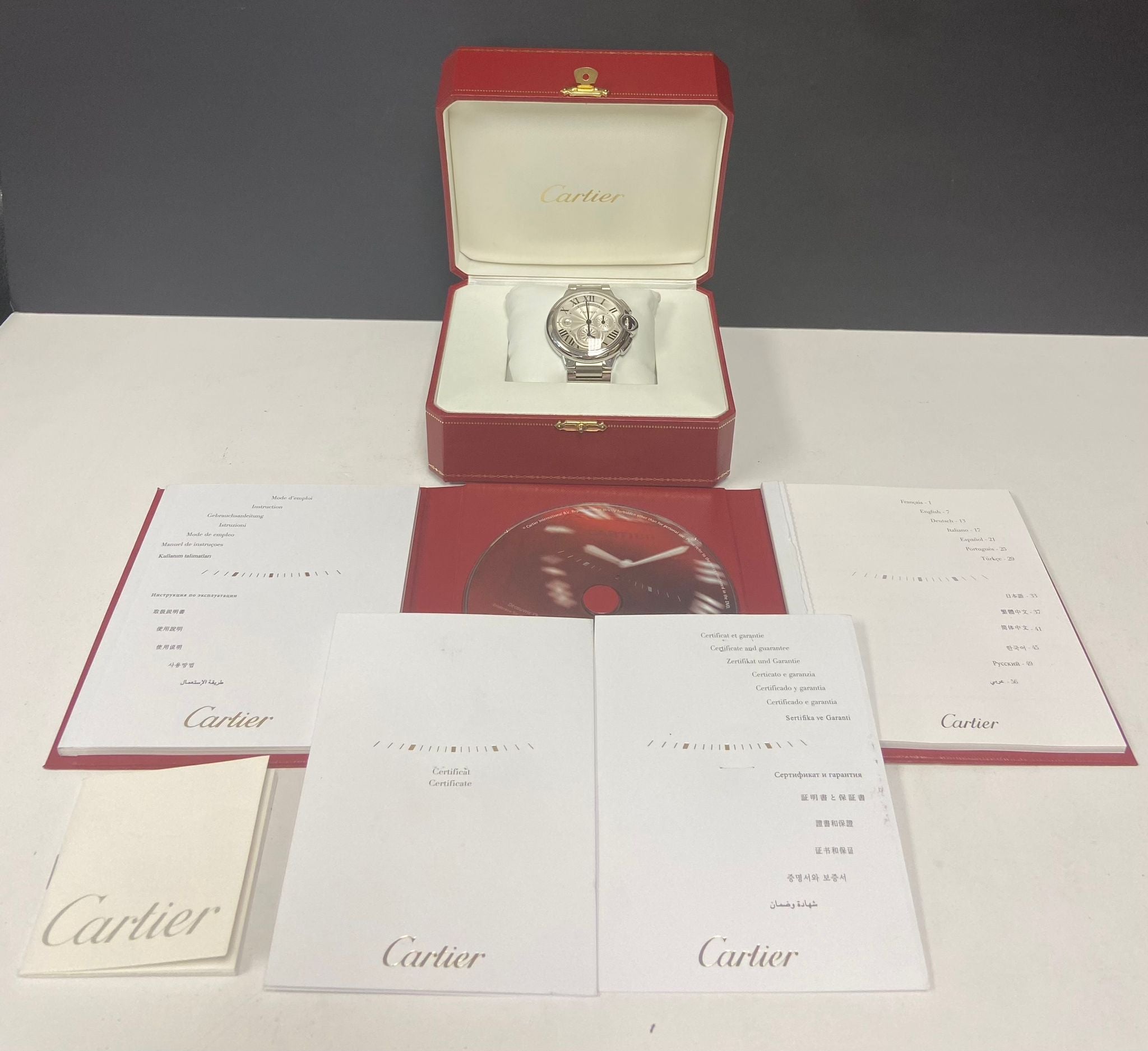 This pre-owned Cartier Ballon Bleu XL Chronograph W6920002 is in excellent condition and comes with: original Cartier box, booklets and matching warranty papers dated 2011. Max wrist size: 8.75 in.