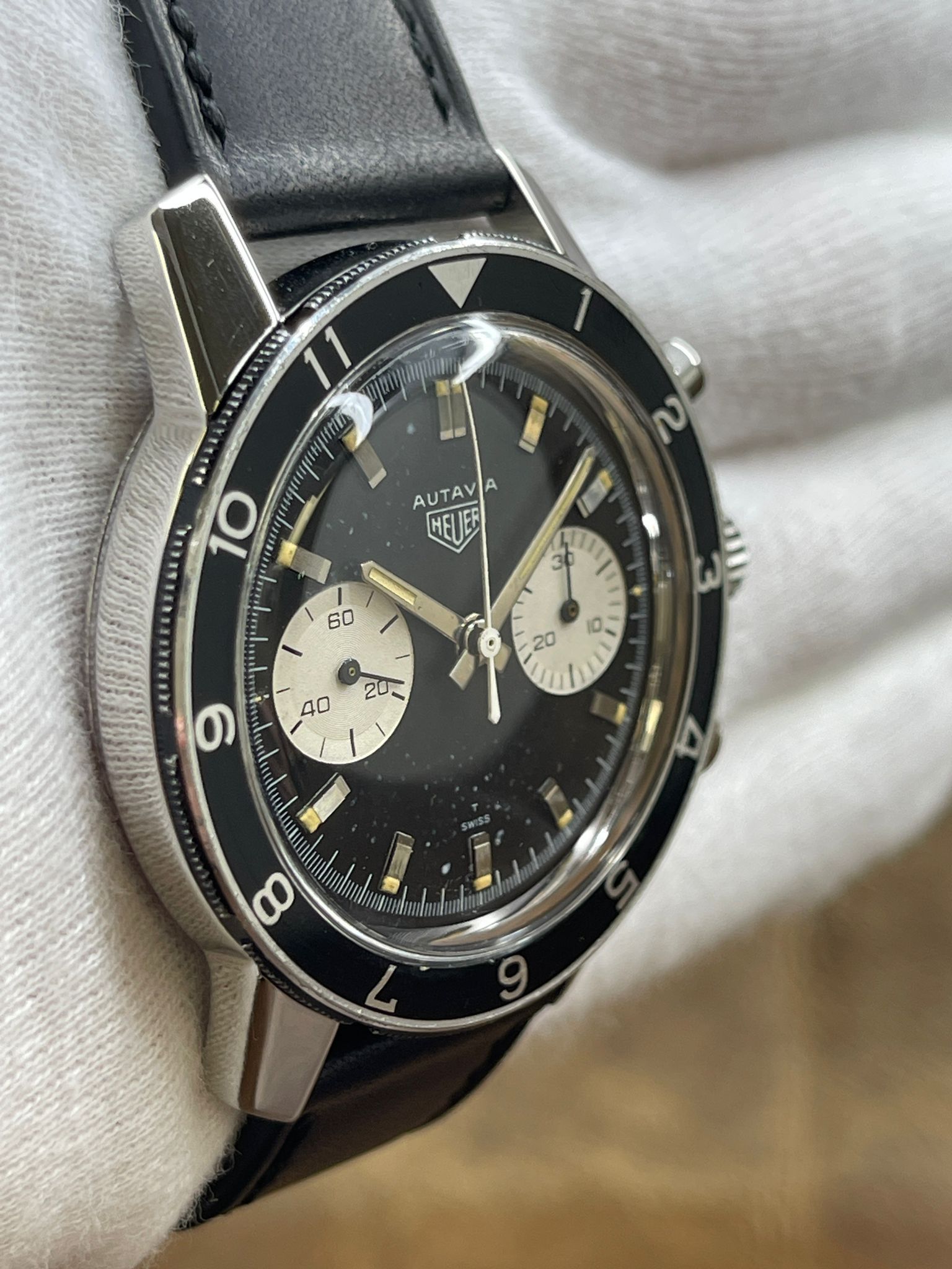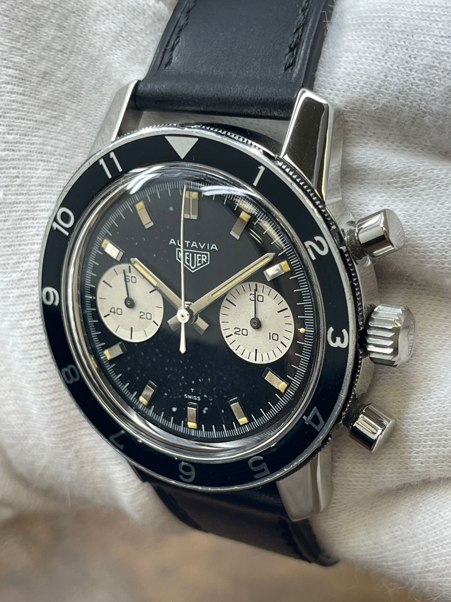 Heuer Autavia 7763 Black Panda Dial Hand Wind Men's Watch