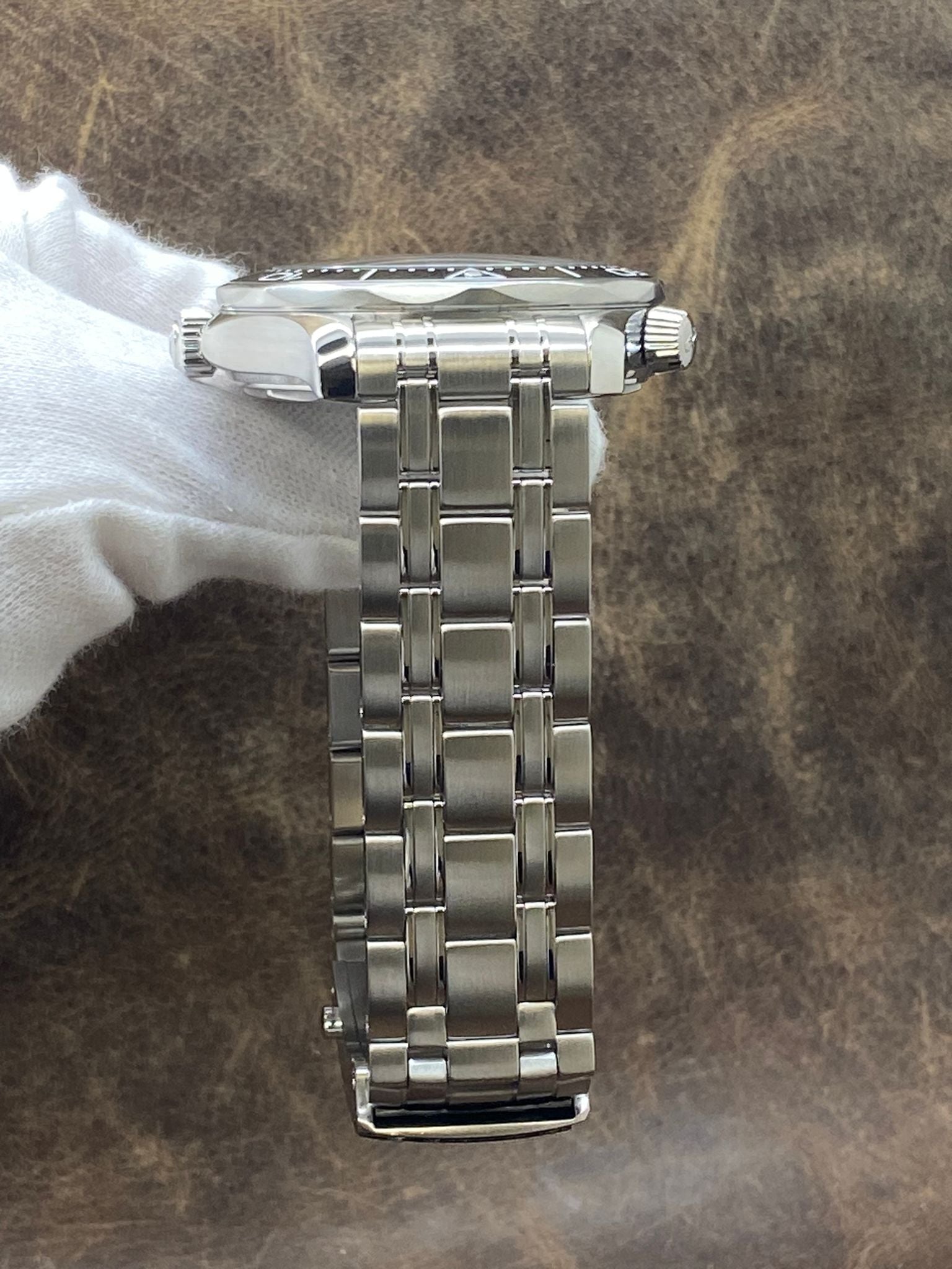 - Bezel Material Stainless Steel with a Black Ceramic Top Ring