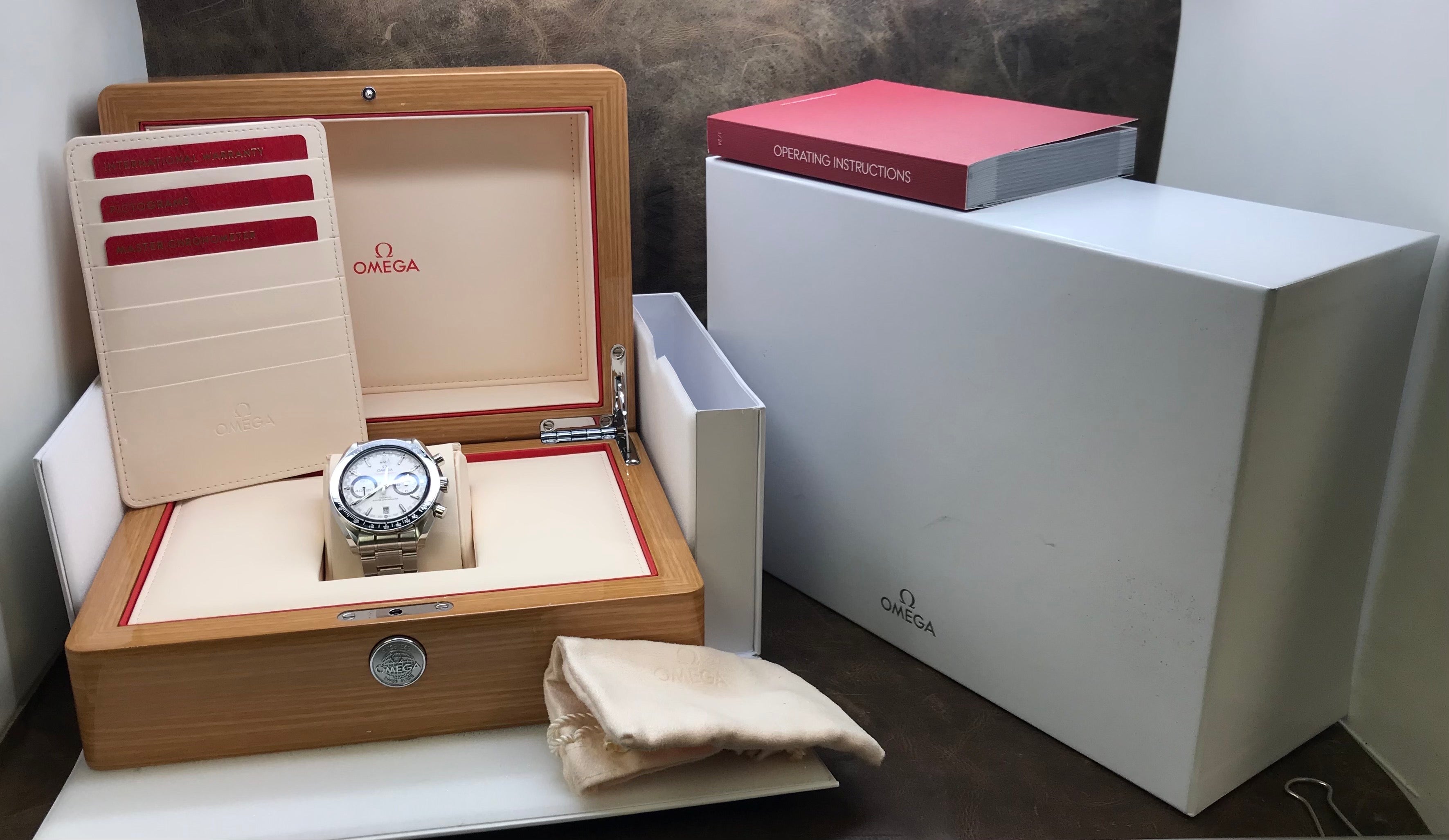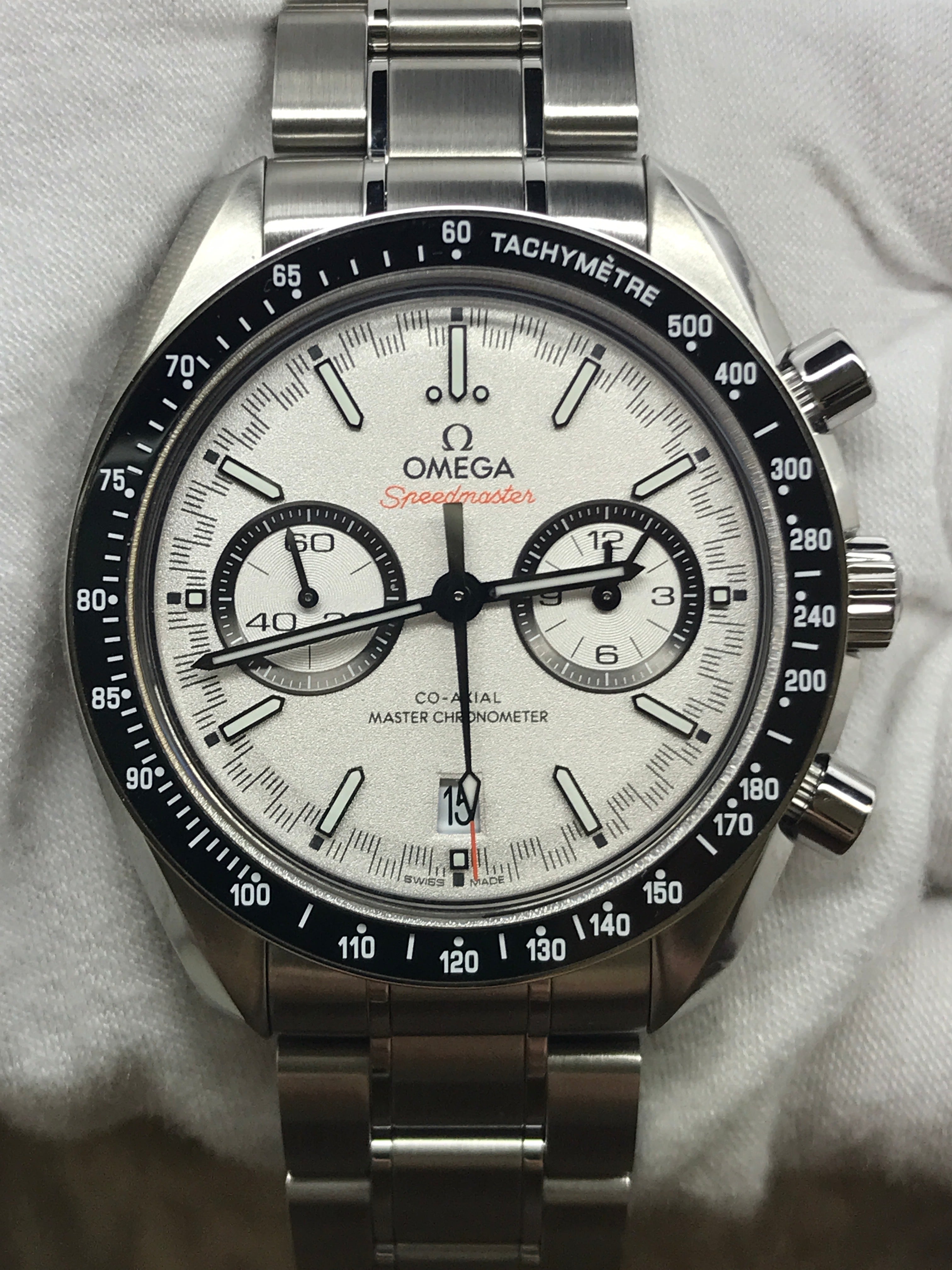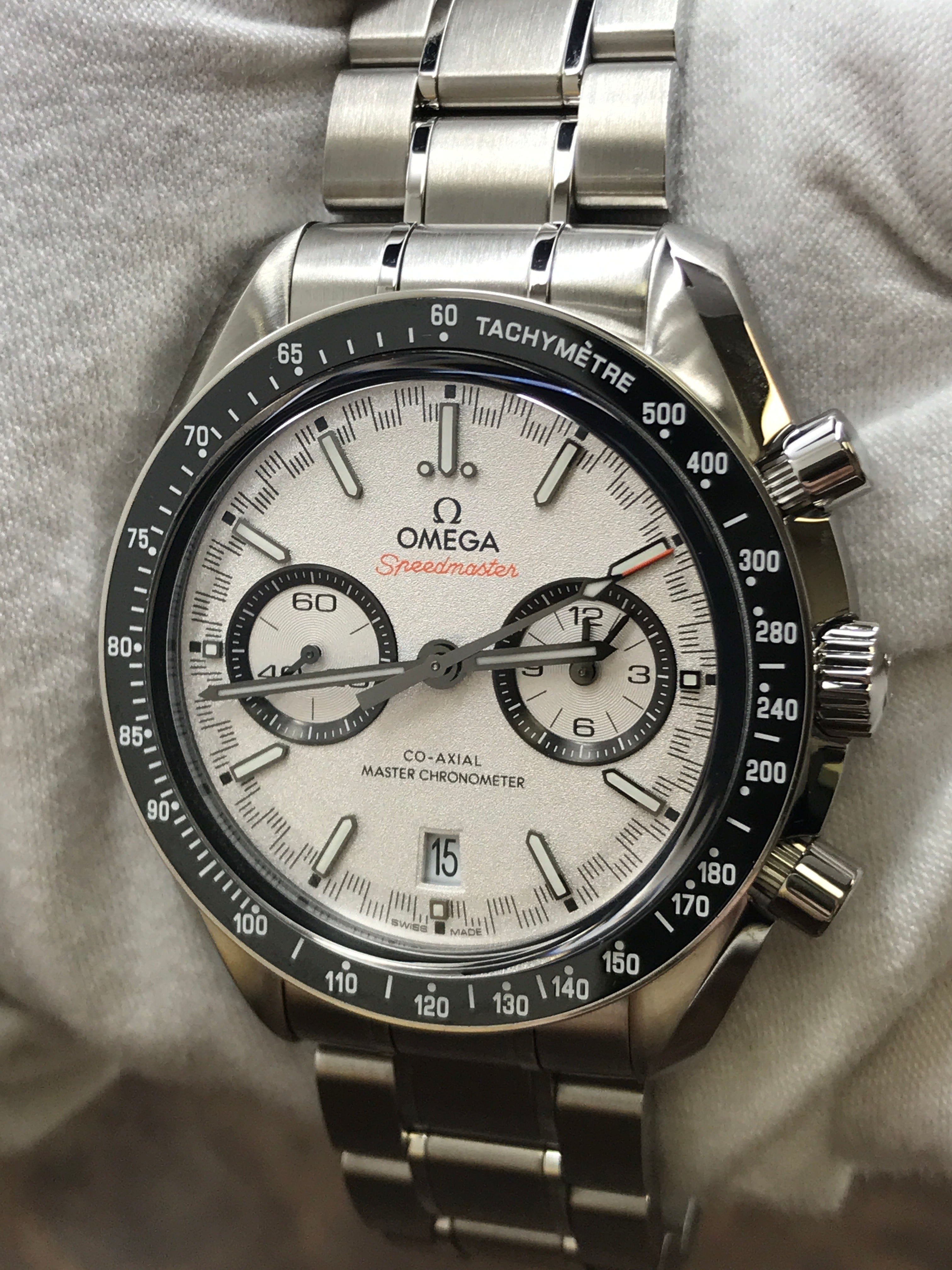 This pre-owned Omega Speedmaster Racing 329.30.44.51.04.001 is in unworn condition and comes with: original Omega double box, booklet and matching pictograms, chronometer & warranty card dated April 2022. Max wrist size: 7.5 in.