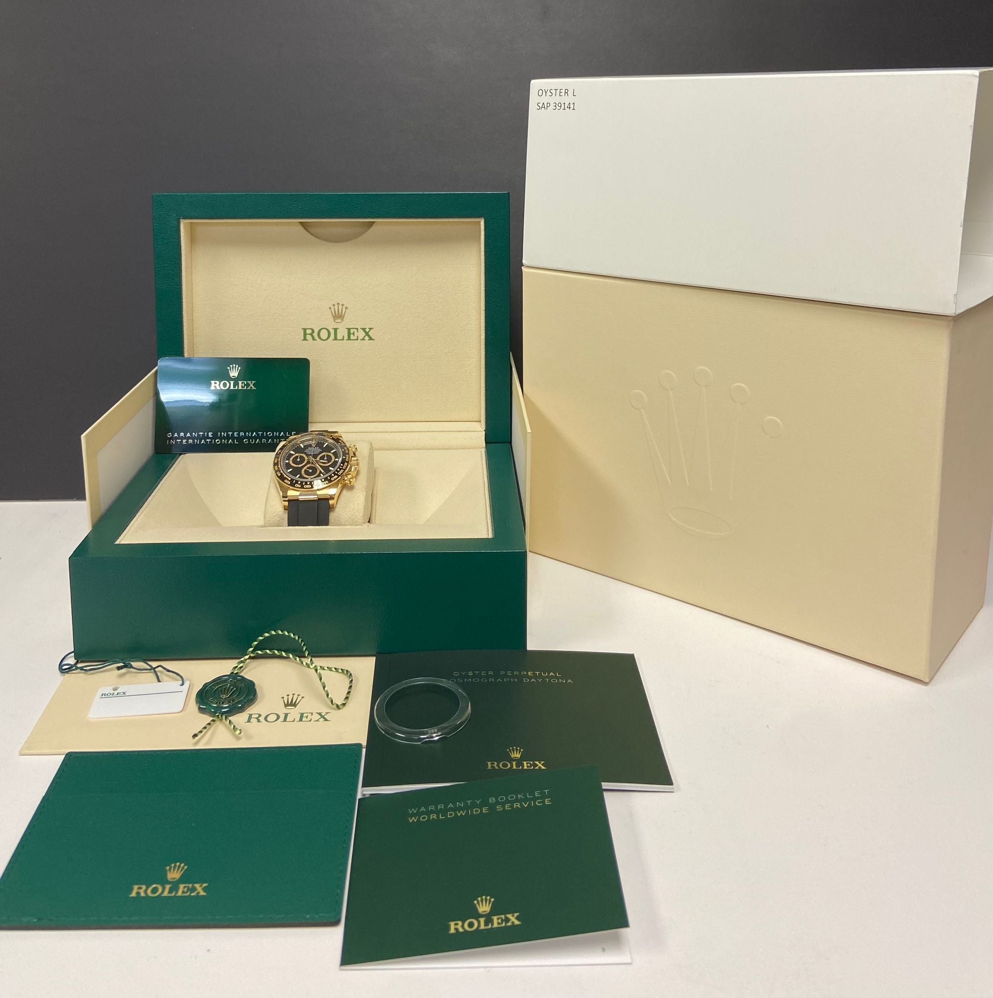 - original Rolex double box, tags, booklets and matching warranty card dated April 2024