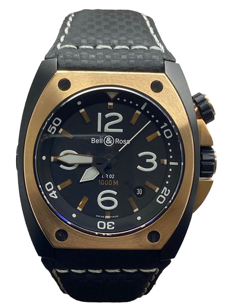 Bell & Ross Marine BR02-20 18K Gold Bezel Black Dial Automatic Men's Watch