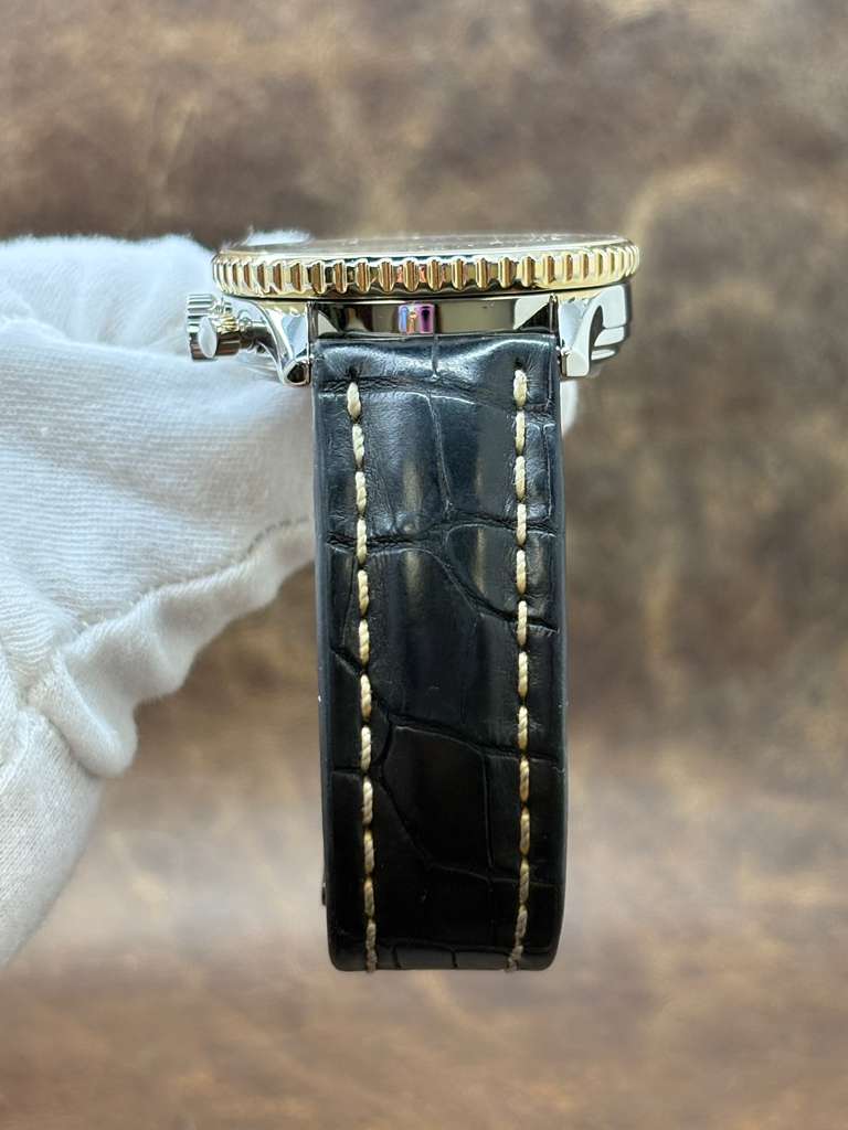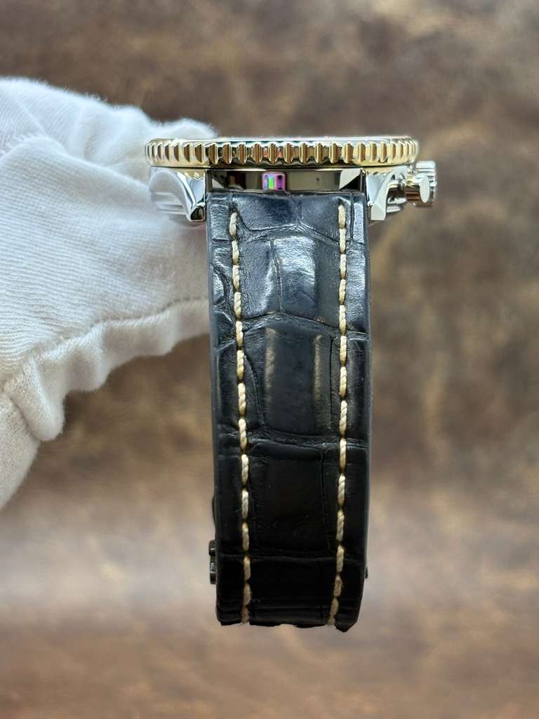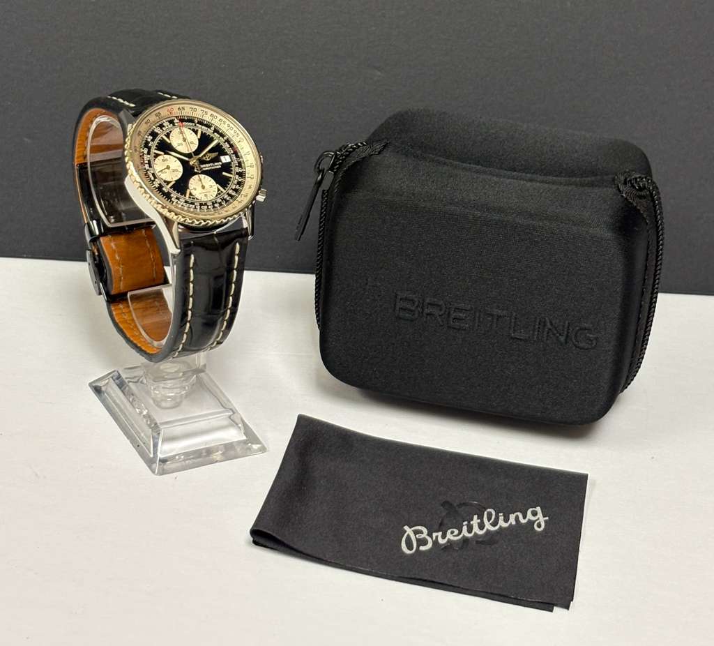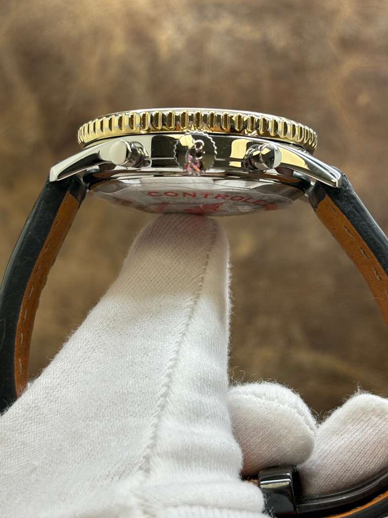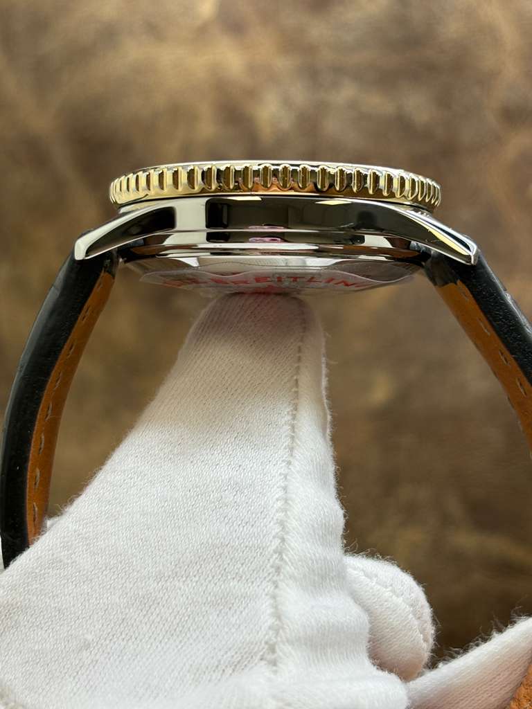 This pre-owned Breitling Old Navitimer Factory Warranty 18K Gold Bezel B13019 is in mint condition and comes with: original Breitling service receipt dated July 2025 with factory warranty until Aug 2027. The watch comes with Valid Breitling Factory warranty until Aug 2027. Max wrist size: 7.5 in.