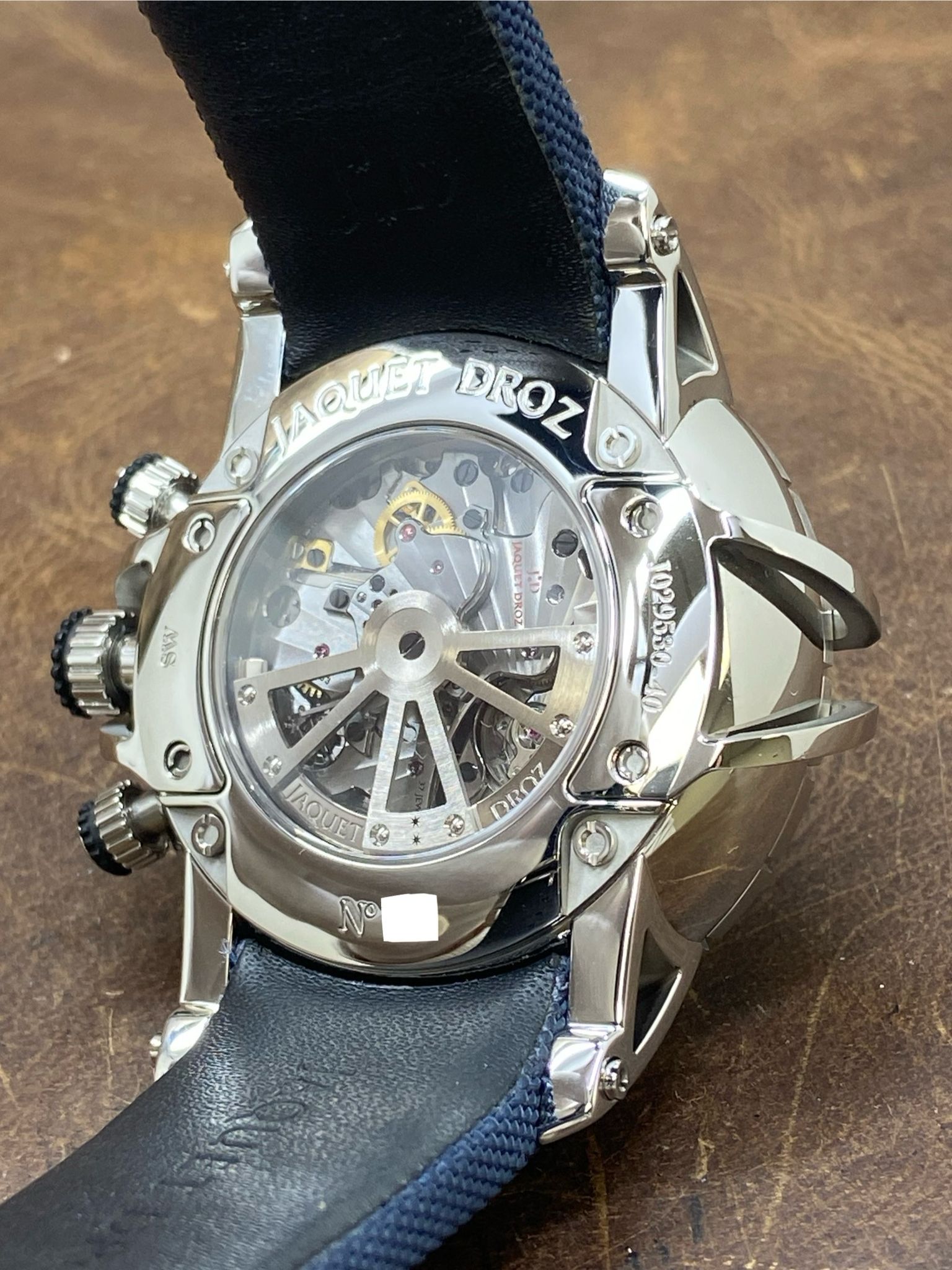 - original Jaquet Droz double box, booklets, extra strap and matching warranty card dated 2023