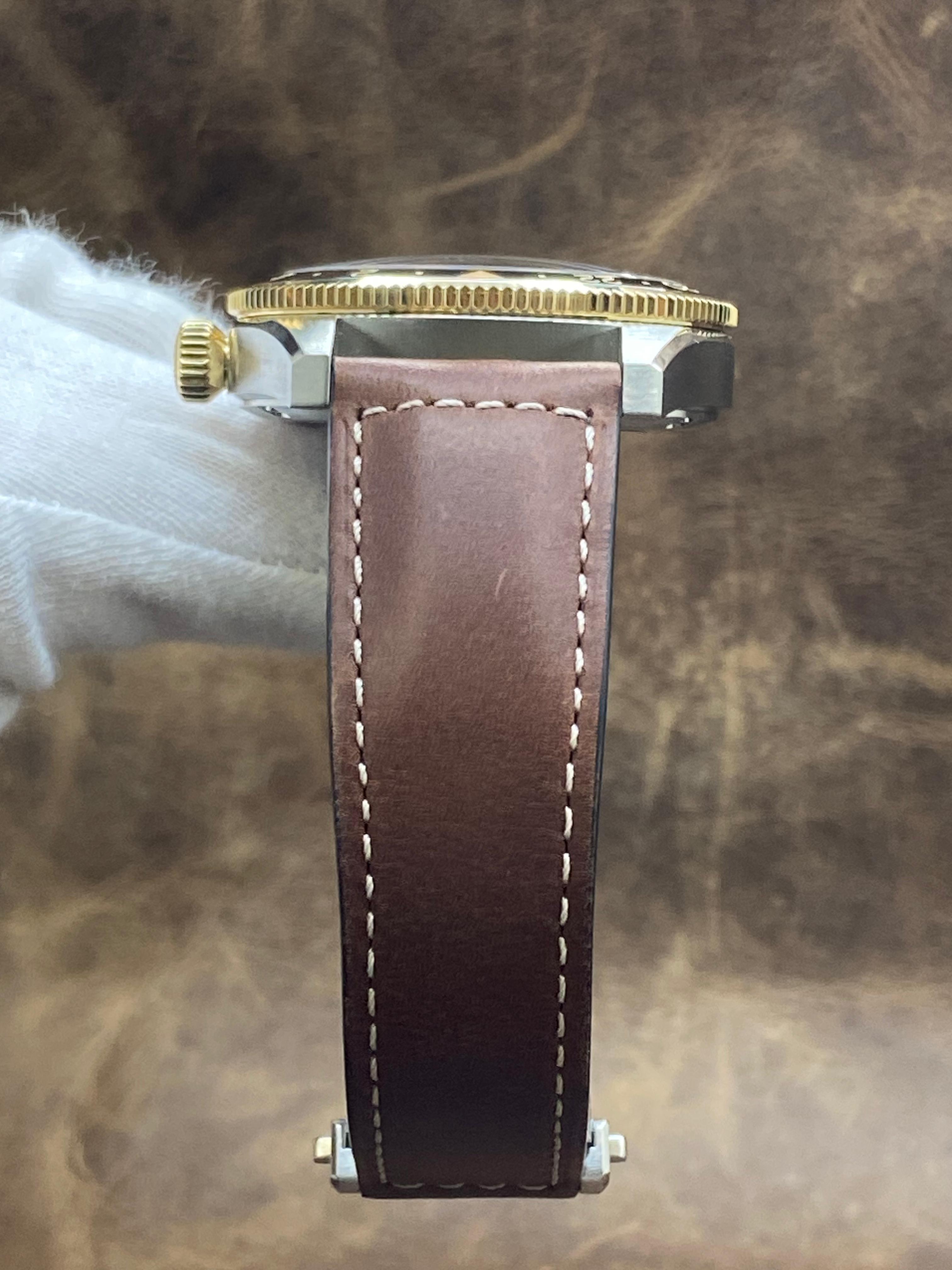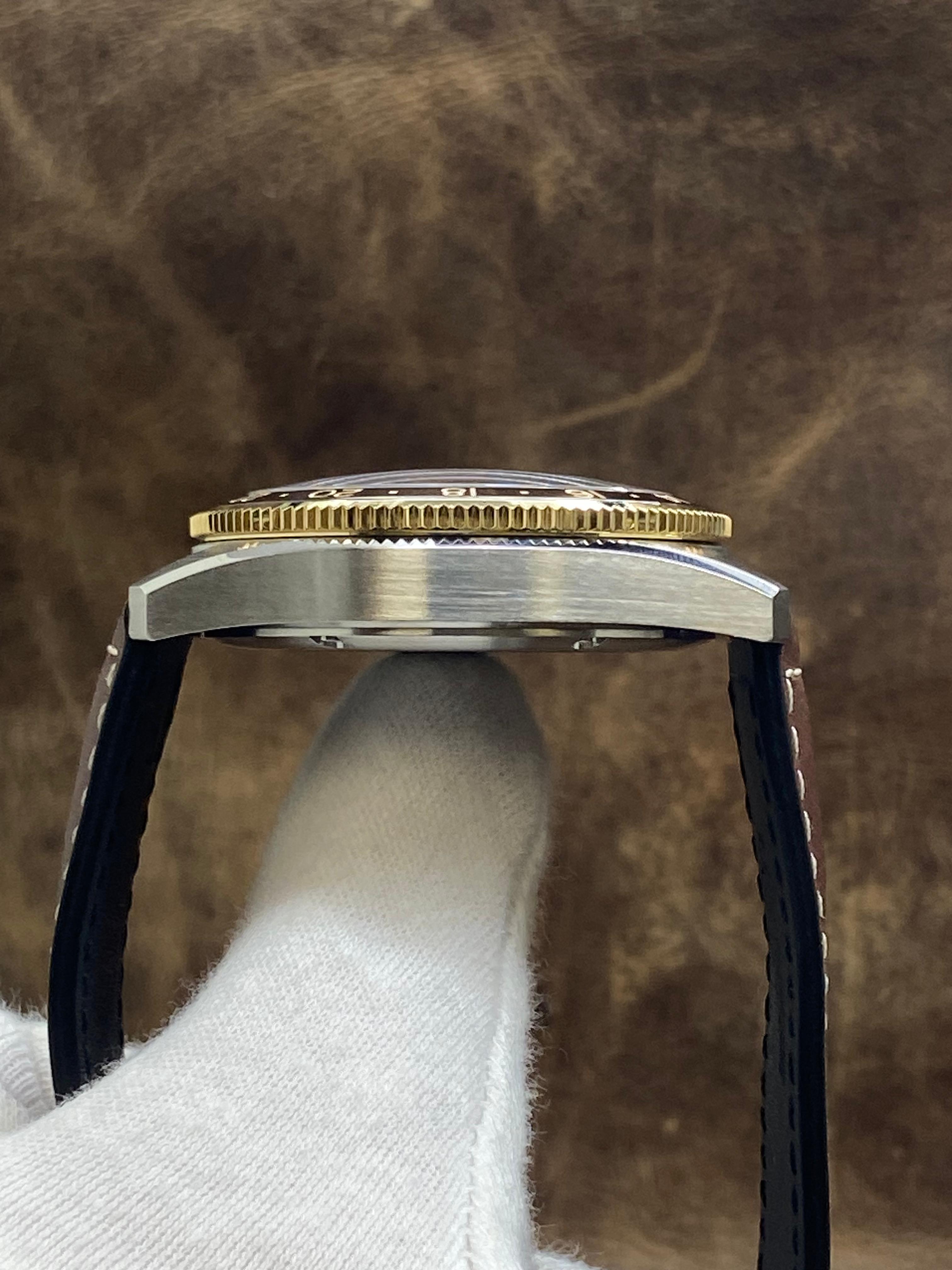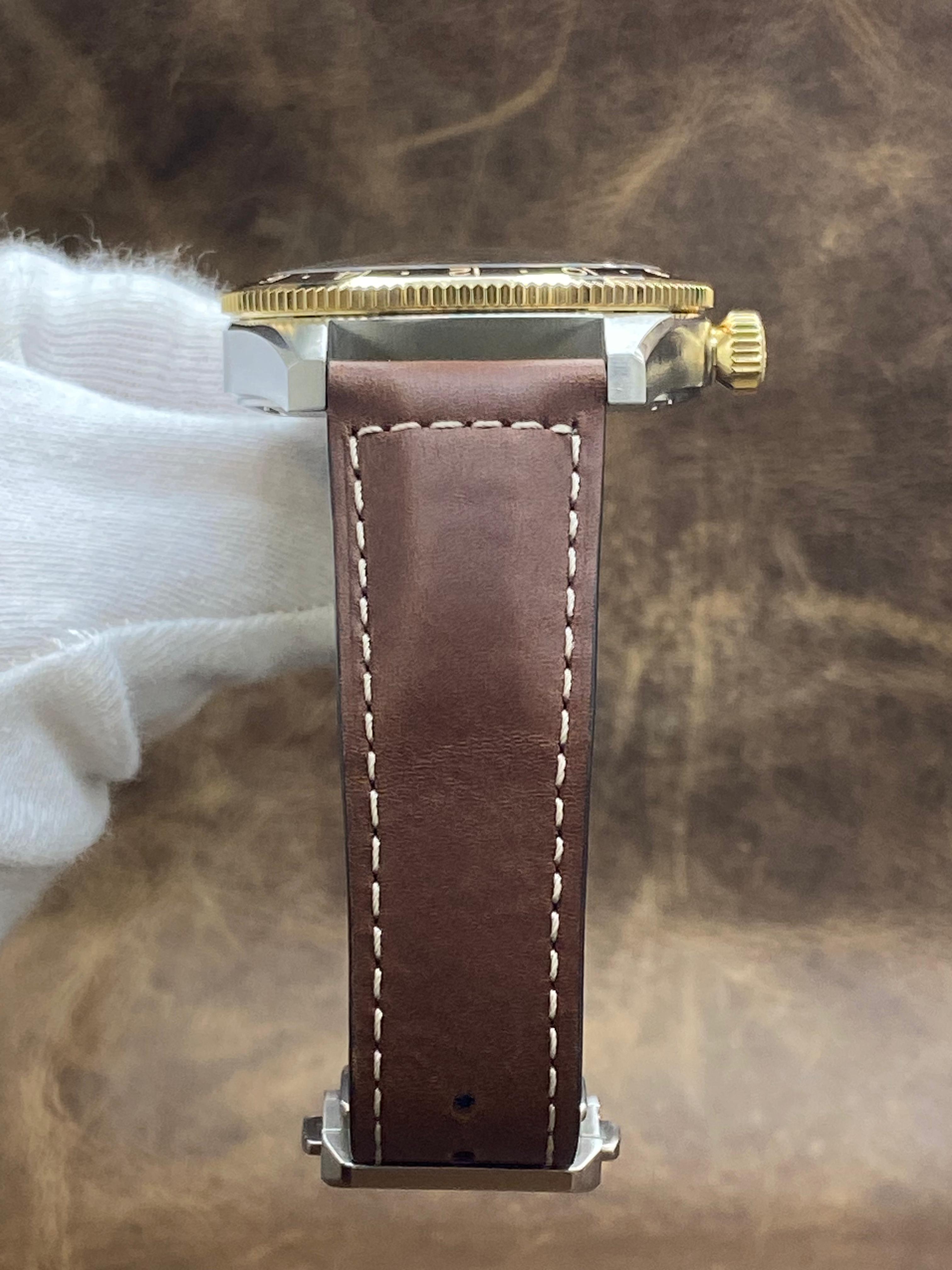 - Features GMT; Date; Hour; Minute; Seconds; COSC chronometer; Stainless Steel; 18K Yellow gold cap 200; Leather; Analog; strap