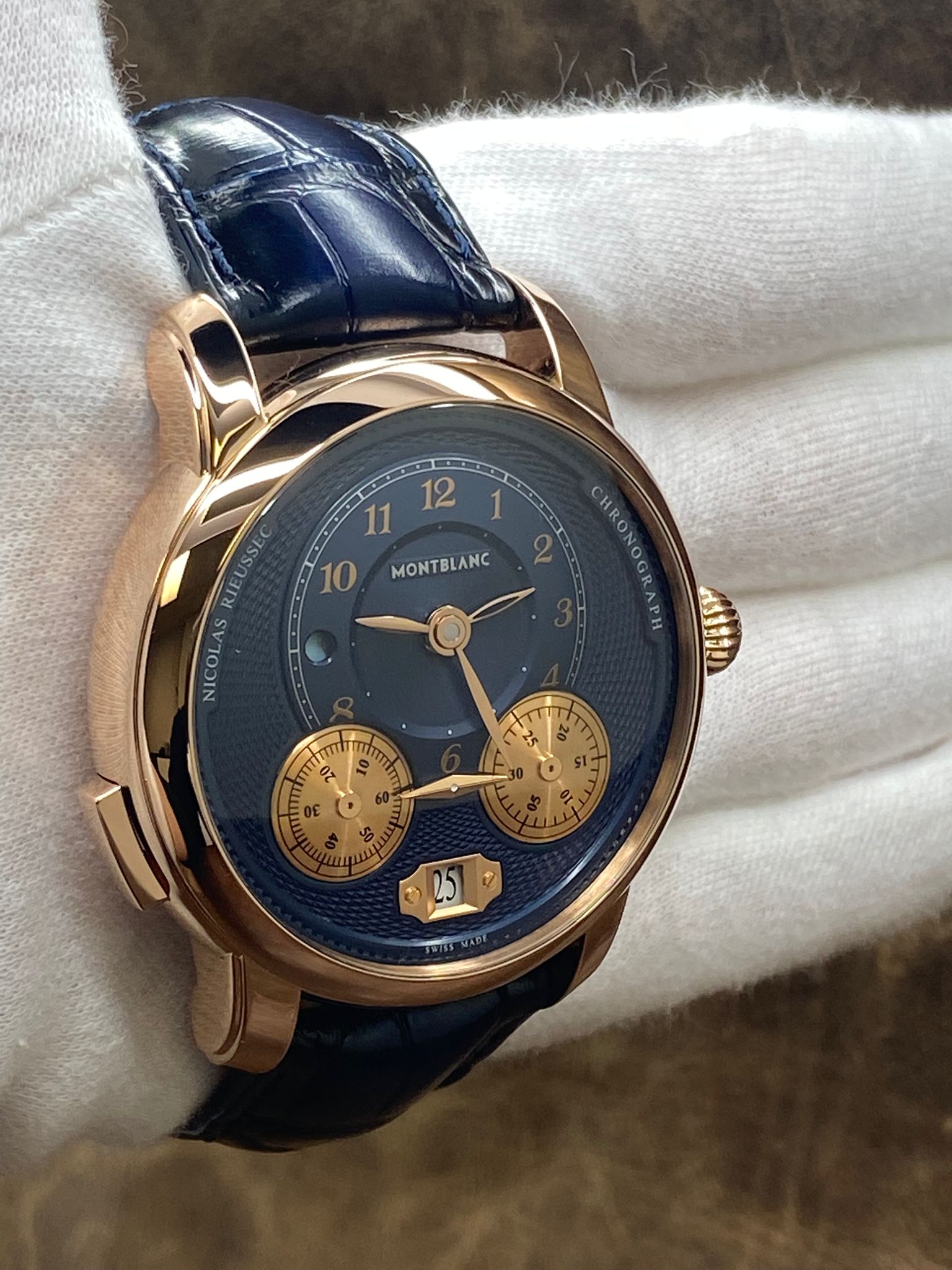 Montblanc Star Legacy Nicolas Rieussec Chronograph 18K Rose Gold 126097 Blue Dial Automatic Men's Watch