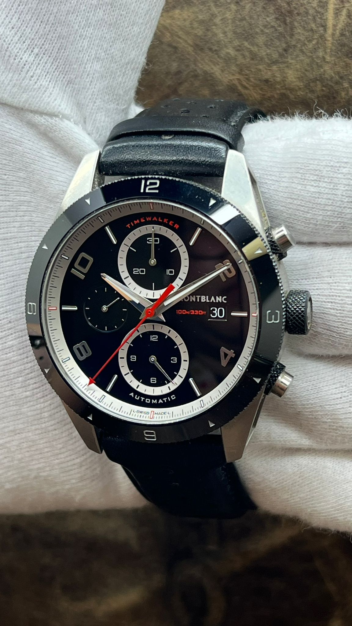 This pre-owned Montblanc TimeWalker Chronograph 116098 is in excellent condition and comes with: original Montblanc double box & booklets only. Max wrist size: 8.25 in.