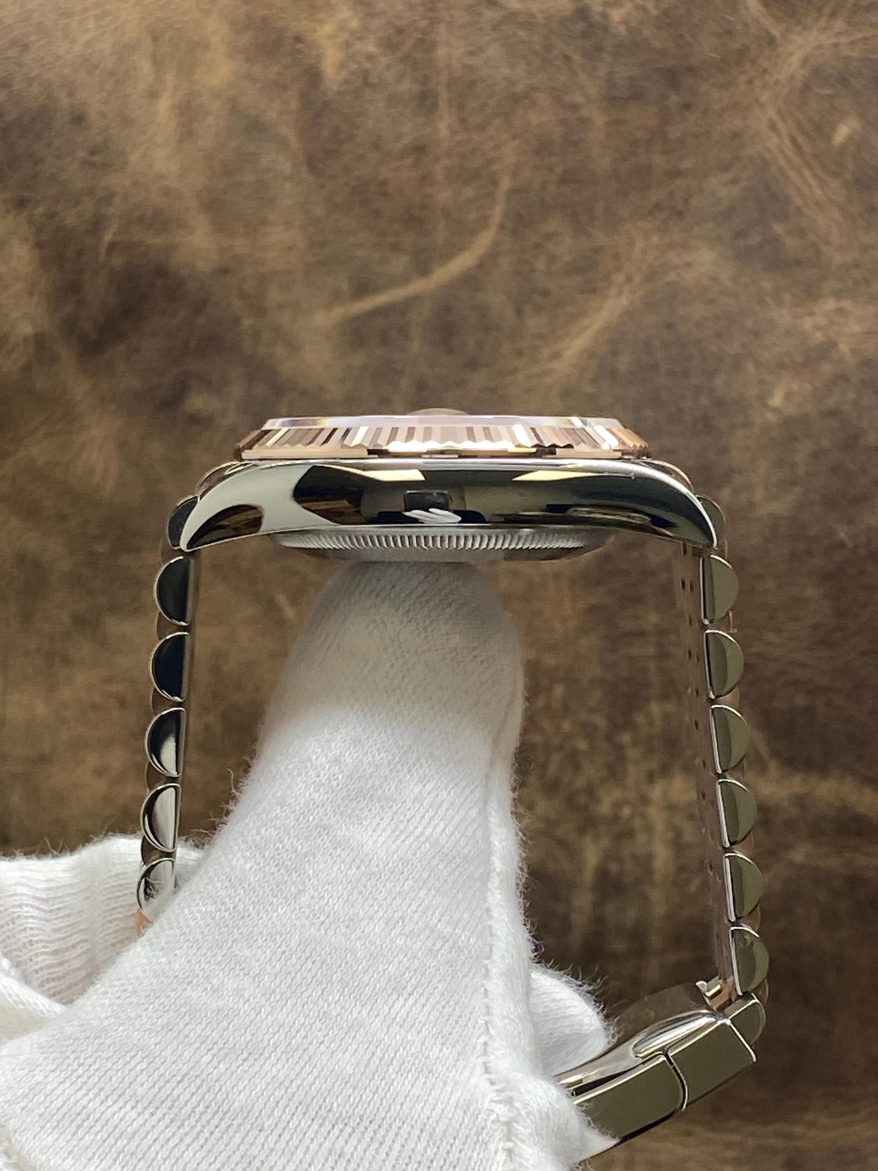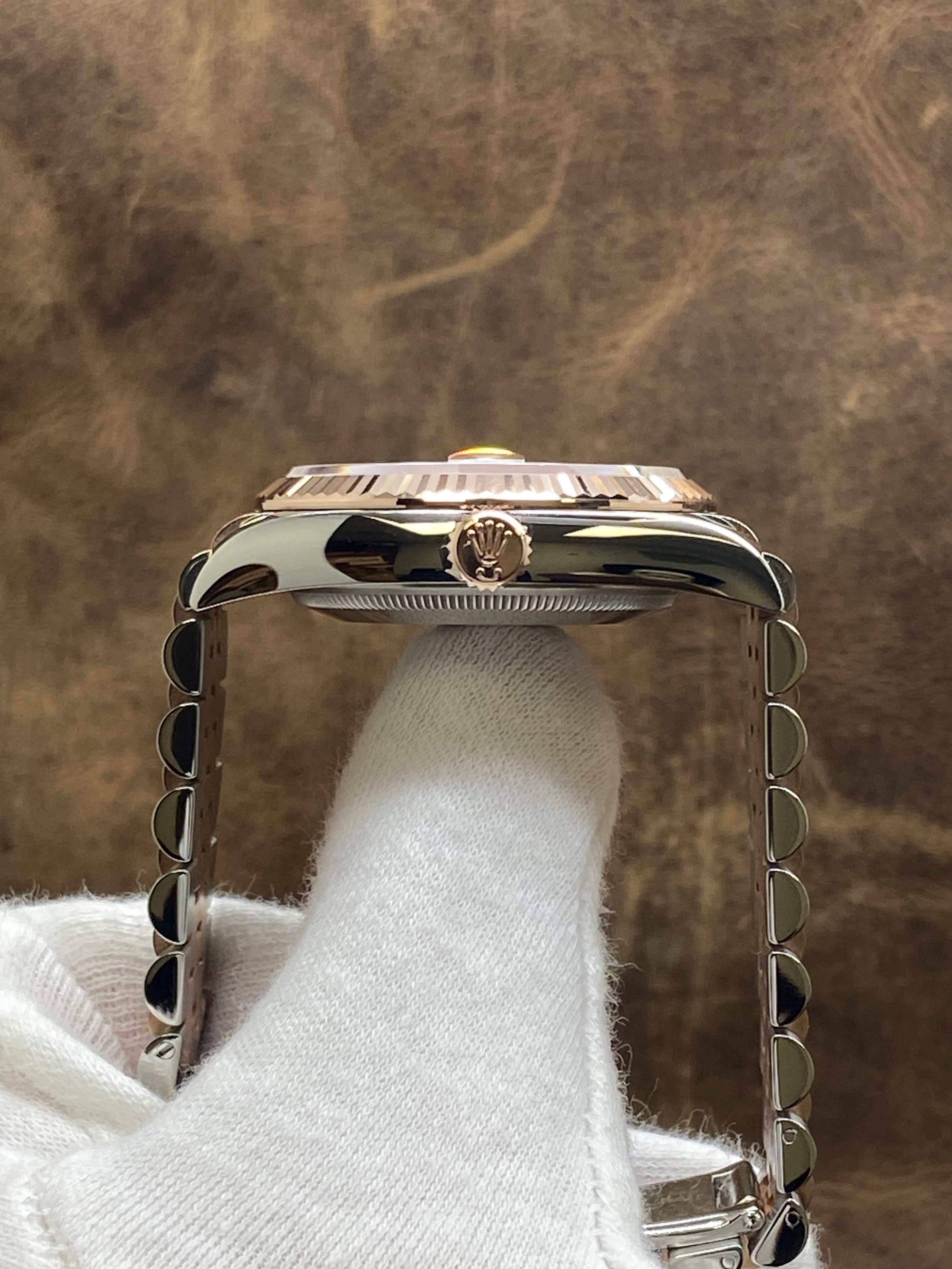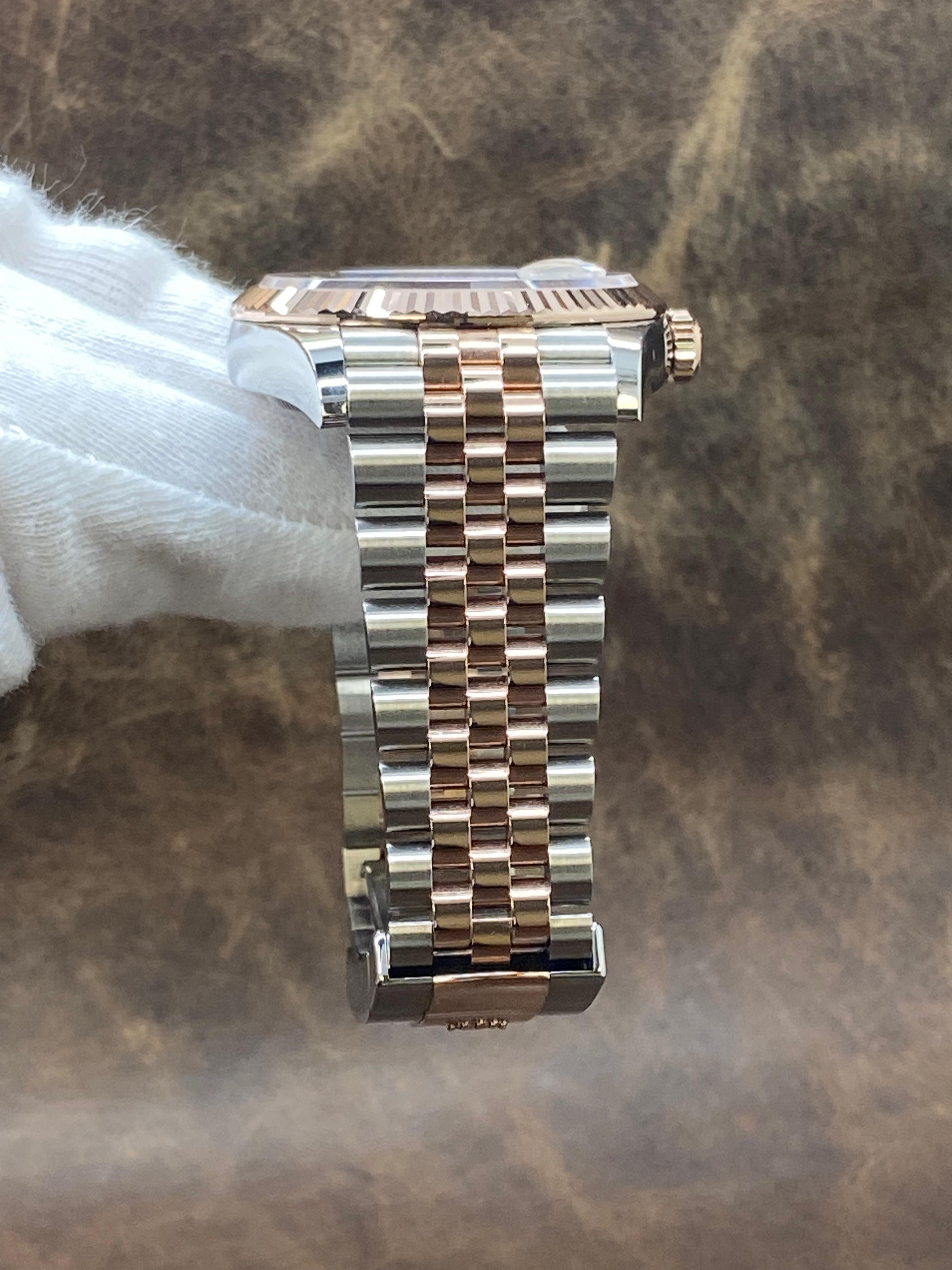 Stainless steel case with a stainless steel & 18k rose gold jubilee bracelet. Fixed fluted 18k rose gold bezel. Chocolate dial with rose gold tone & luminous hands and index hour markers. Dial type: analog. Rolex calibre 3235 automatic movement with about 70 hours of power reserve. Sapphire crystal. Screw down crown. Solid case back. Case size: 36 mm. Case thickness: 12 mm. Round case shape. Band width: mm. Oysterclasp clasp. Water resistant at 100 meters / 330 feet. Functions: hours, minutes, seconds, date. Rolex Datejust 36 126231 Chocolate Dial Automatic Watch.