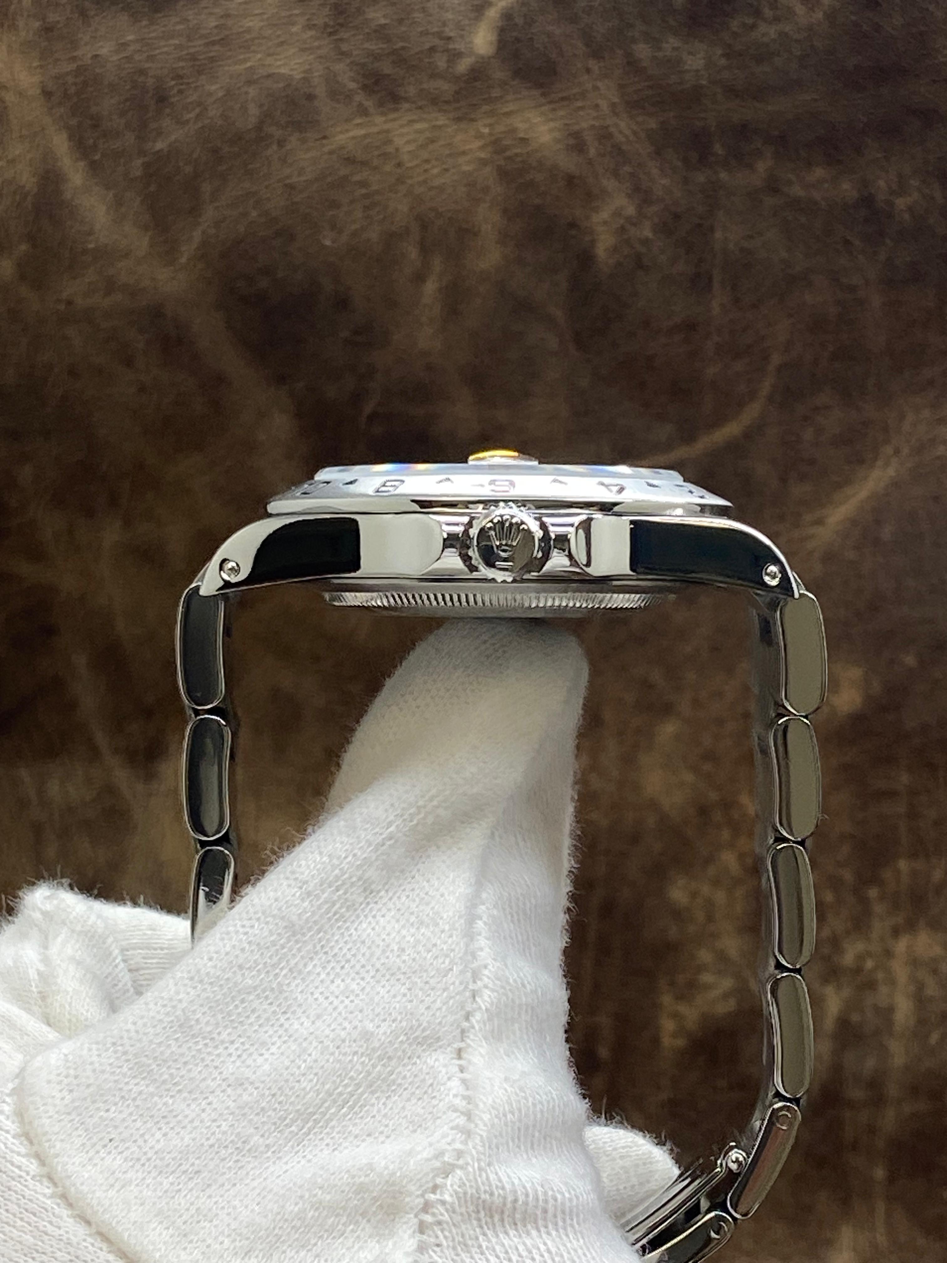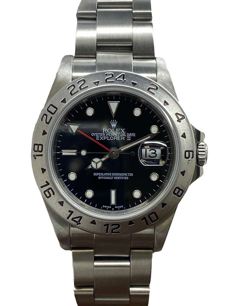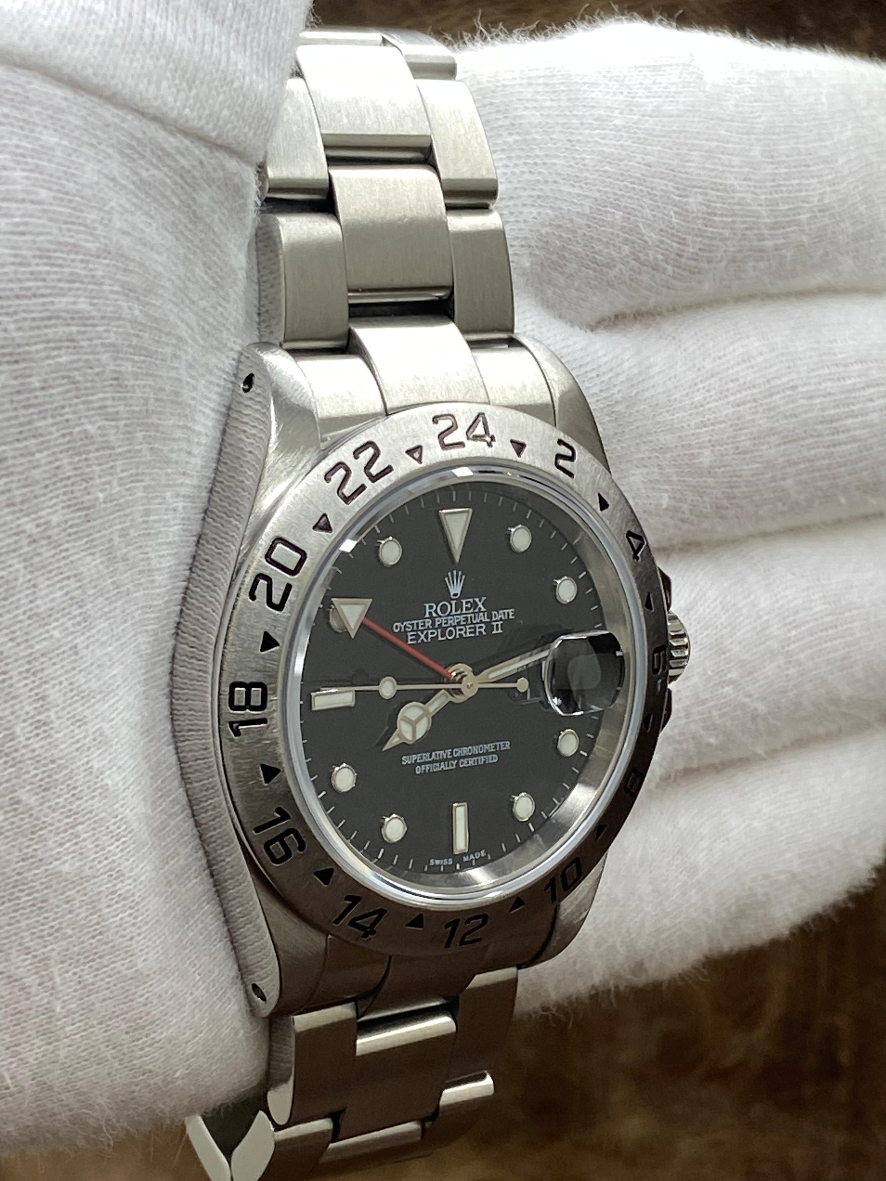 This pre-owned Rolex Explorer II SEL 16570 is in excellent condition and comes with: NO box or papers. The bezel has a couple of deep marks near the 6-8 numerals. Max wrist size: 7.25 in.