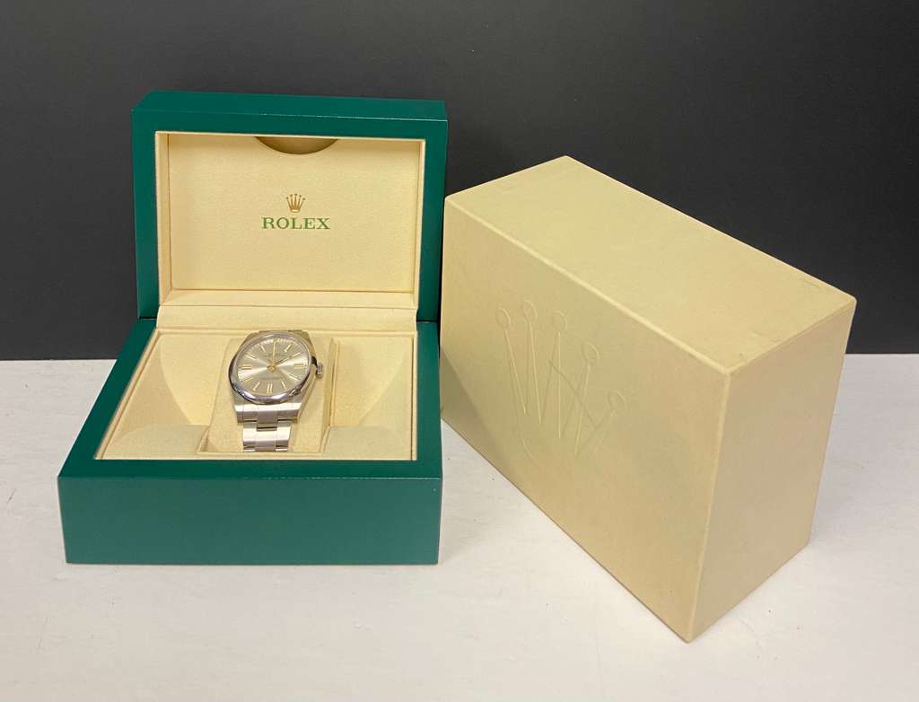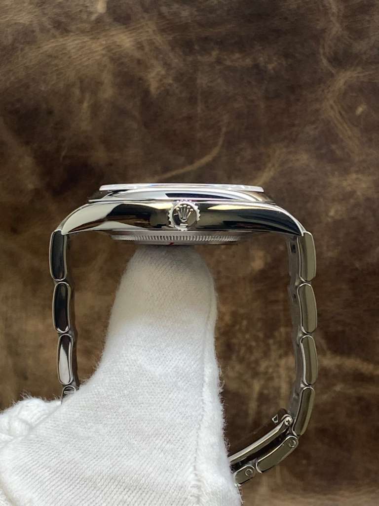 This pre-owned Rolex Oyster Perpetual 41 124300 is in mint condition and comes with: original Rolex box only. Max wrist size: 6.75 in.