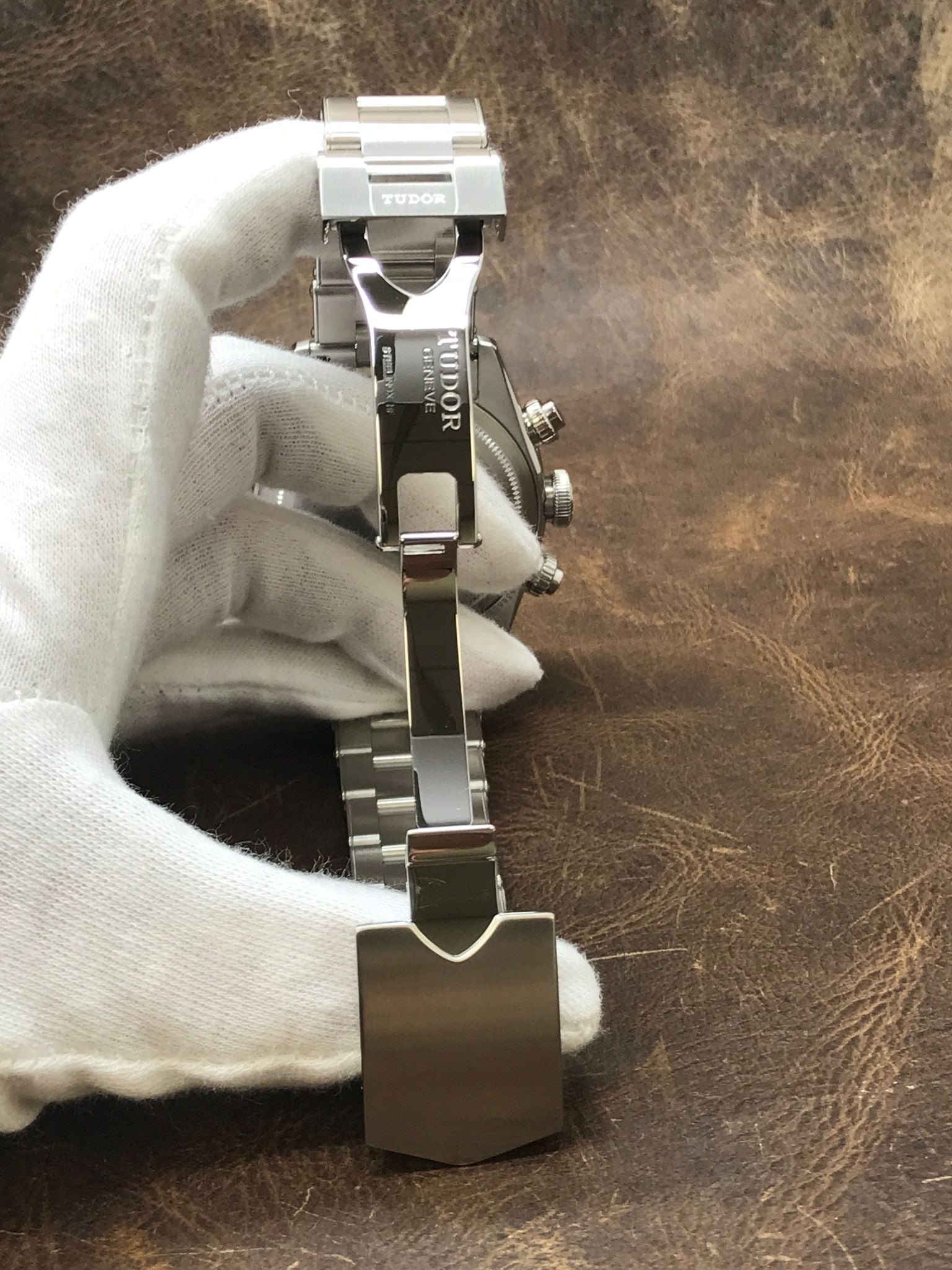 This pre-owned Tudor Black Bay Chrono 79360N is in fine condition and comes with: original Tudor double box, booklets and matching warranty card dated April 2021. Max wrist size: 8.25 in.