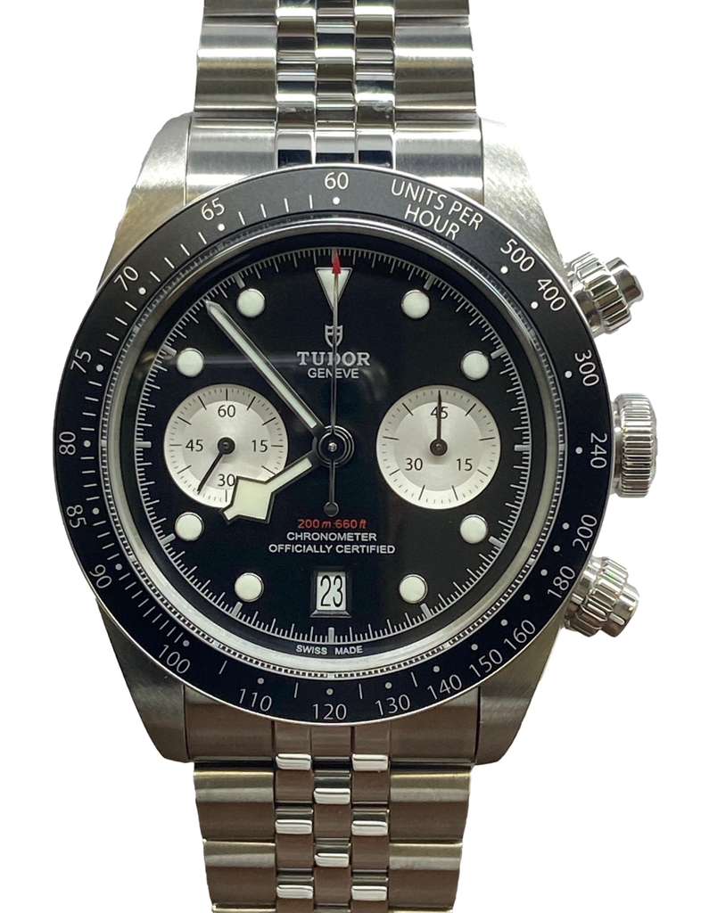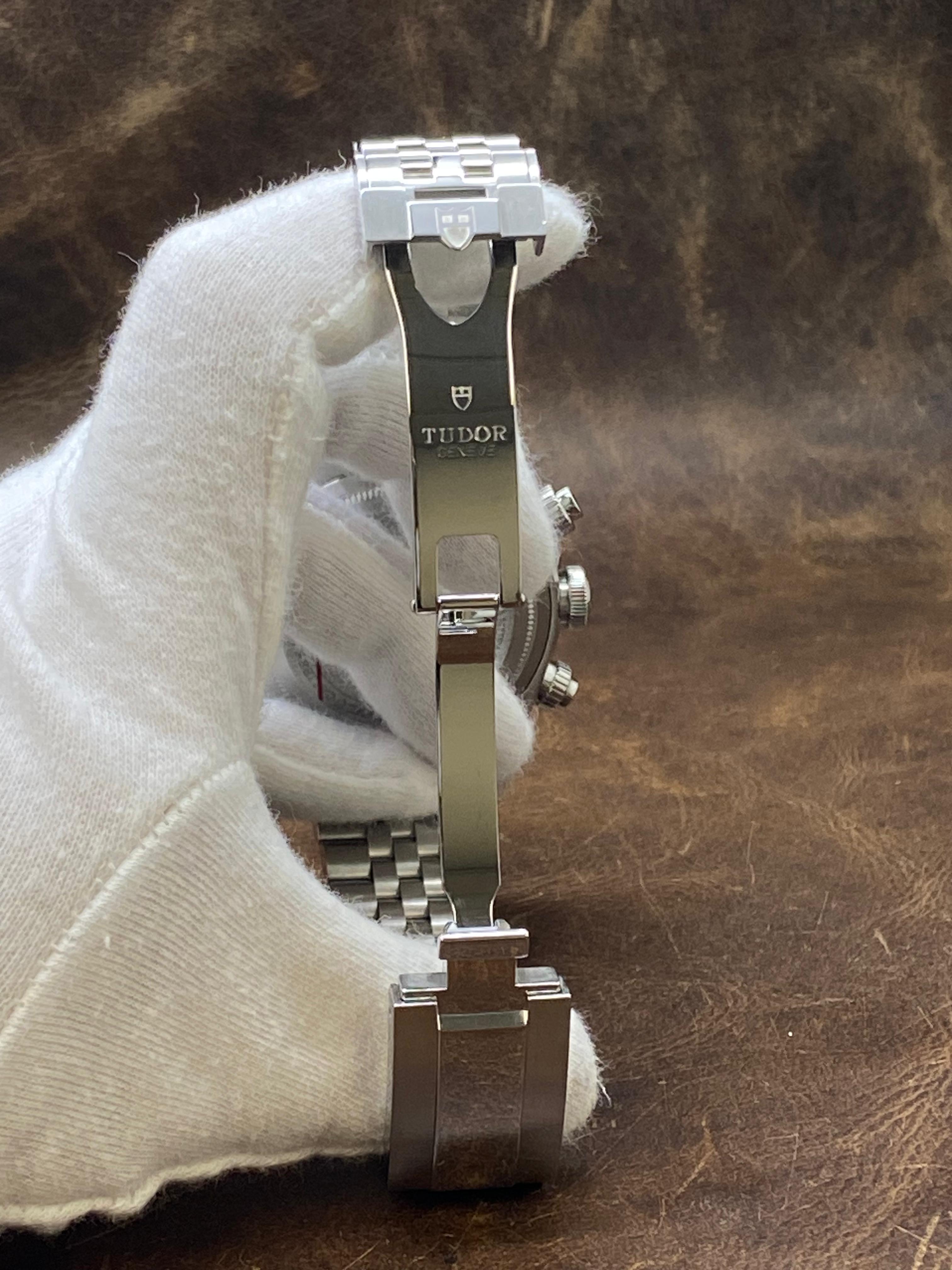 This pre-owned Tudor Black Bay Chrono 2025 B&P 79360N is in mint condition and comes with: original Tudor double box, tag, booklets and matching warranty card dated June 2025. Max wrist size: 8.25 in.