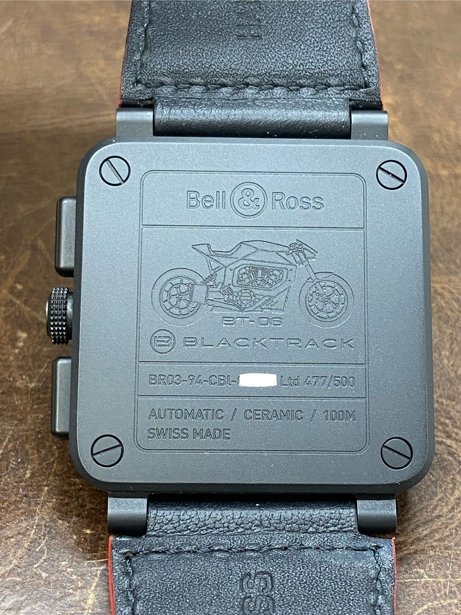 This pre-owned Bell & Ross BR0394-BTR Blacktrack Ceramic L.E 500pcs BR03-94 is in excellent condition and comes with: original Bell & Ross double box, booklet, tools, extra strap and matching warranty card dated Dec 2023 with valid factory warranty until Dec 2025. Max wrist size: 8 in.