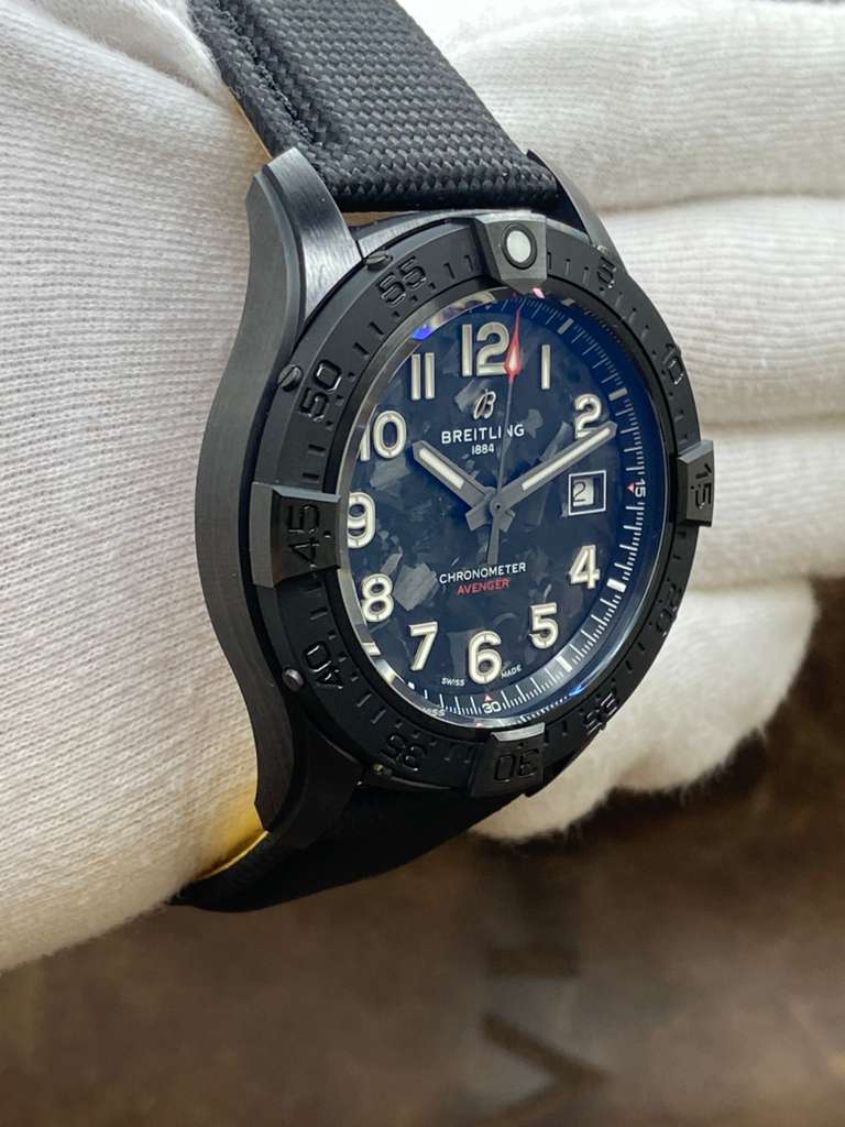 This pre-owned Breitling Avenger Automatic 42 Night Mission S17328101B1X1 is in unworn - full stickers condition and comes with: original Breitling box, booklet, tag and matching warranty card activated Jan 2023. Max wrist size: 7.5 in.