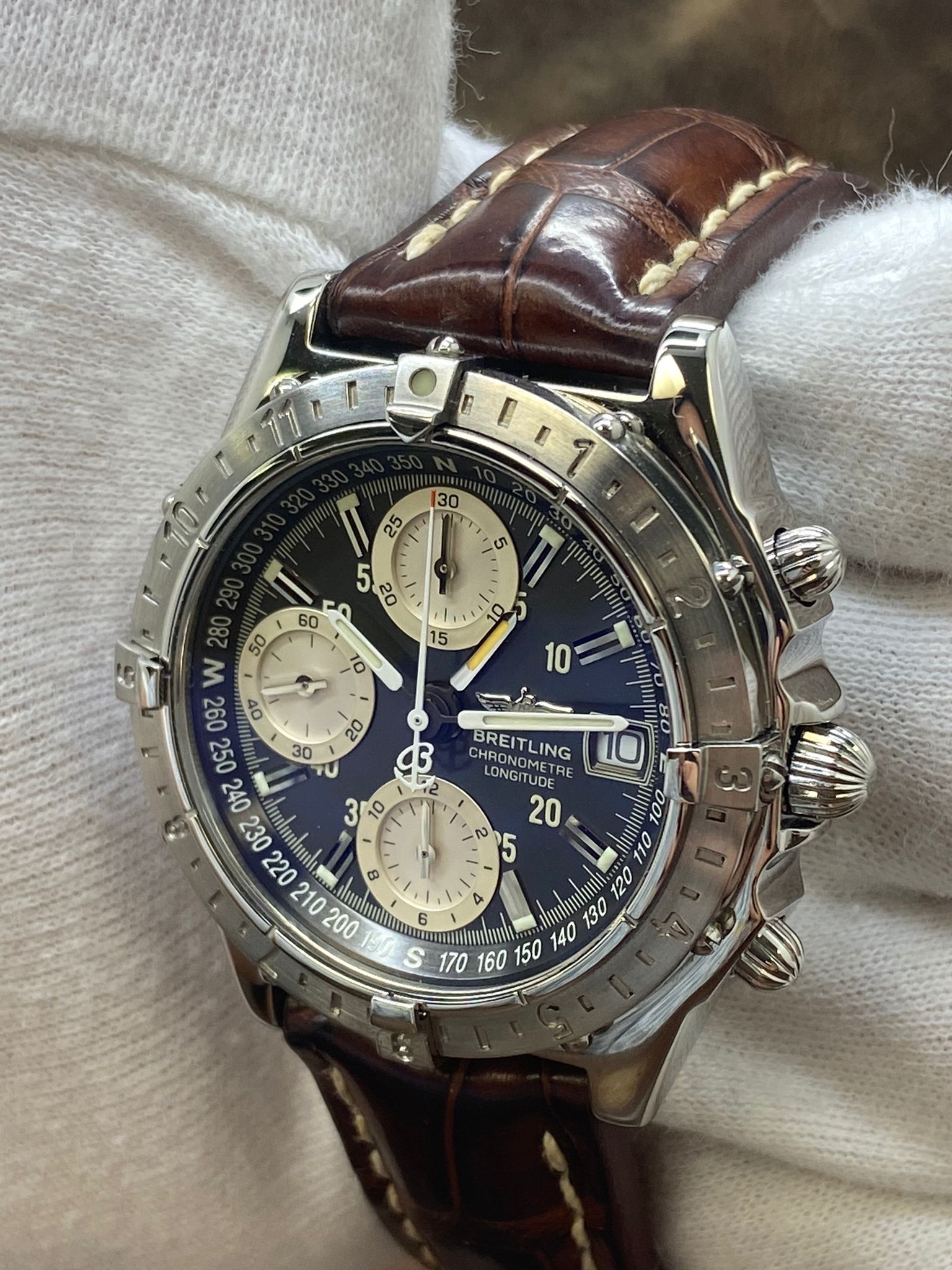 This pre-owned Breitling Chronomat Longitude 40mm A20348 is in very good condition and comes with: NO box or papers. Max wrist size: 6.25 in.