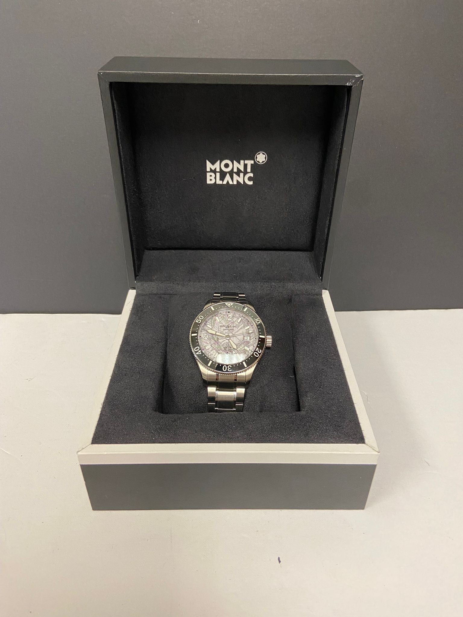 This pre-owned Montblanc Iced Sea 1858 is in excellent condition and comes with: original Montblanc box only. Max wrist size: 8.5 in.