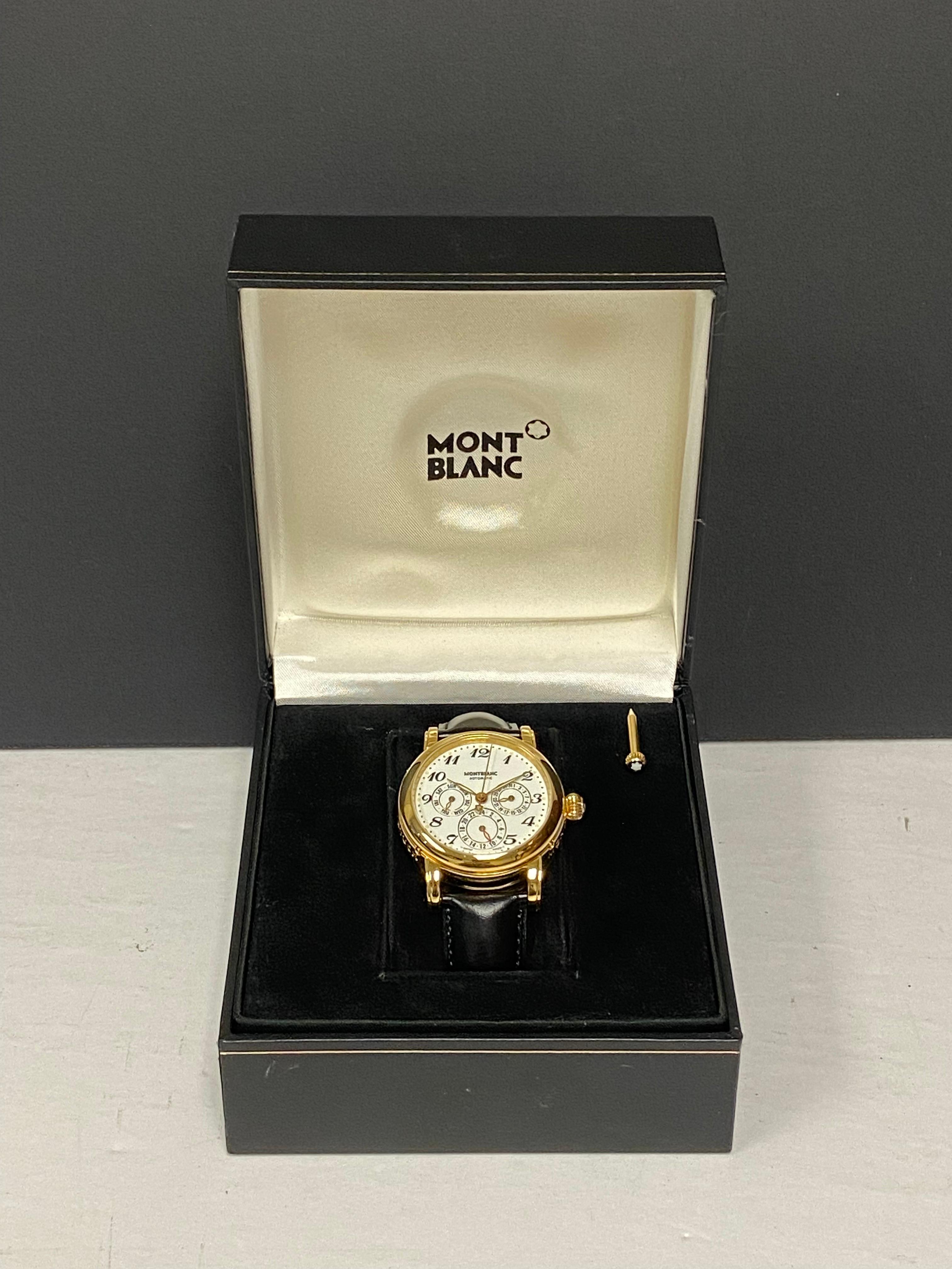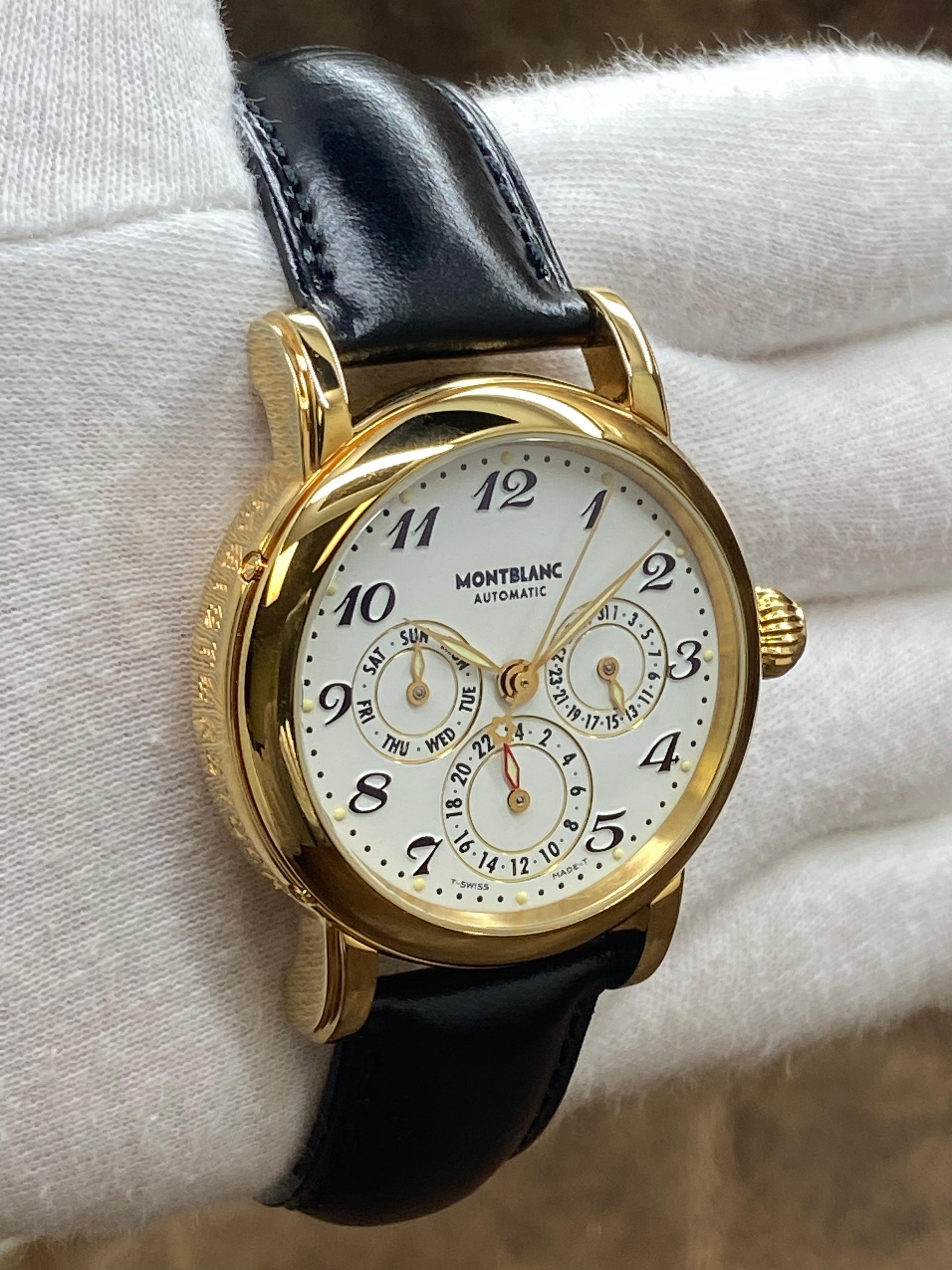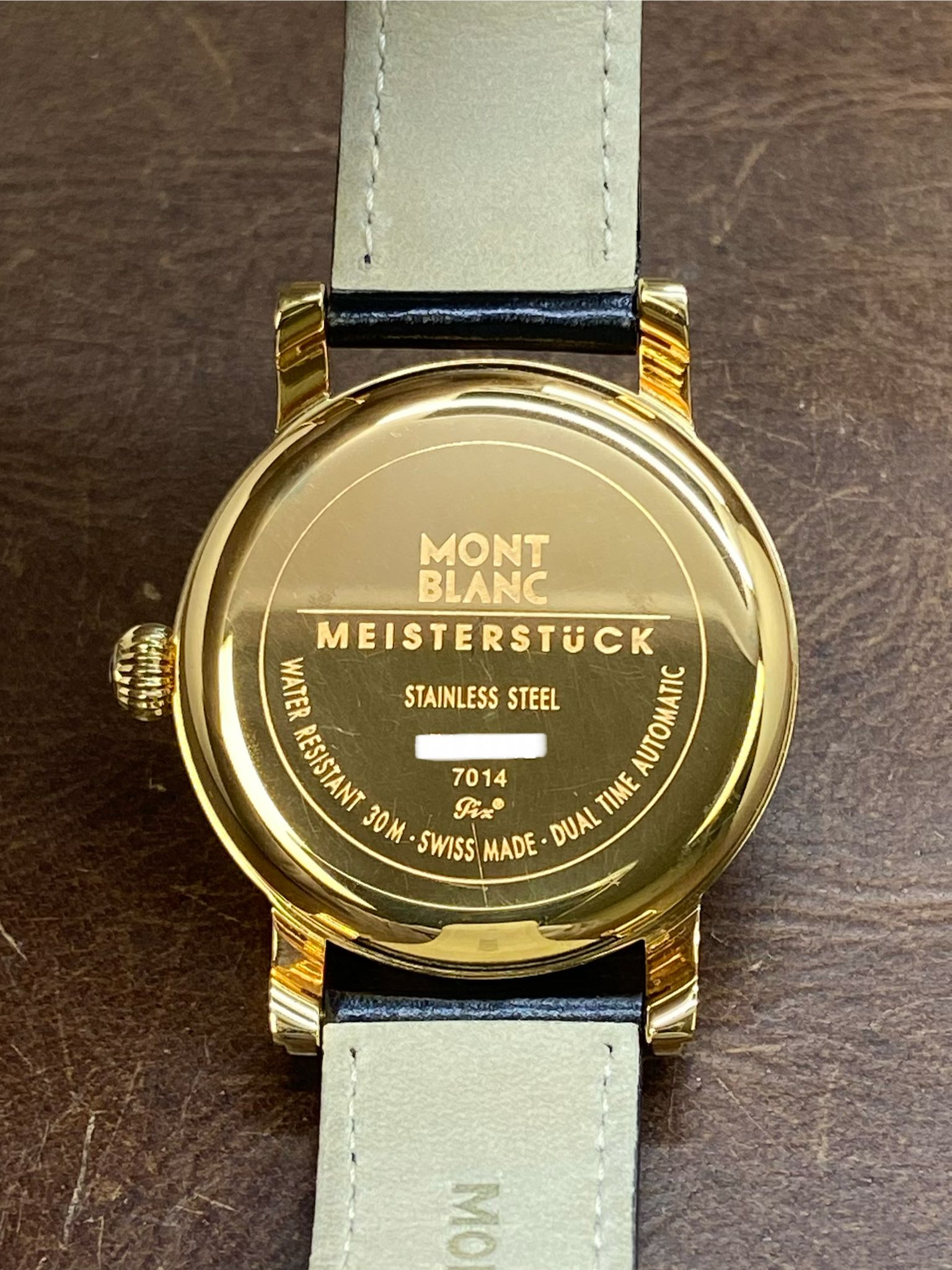 This pre-owned Montblanc Meisterstuck Dual Time Day Date 7014 is in excellent condition and comes with: original Montblanc box only. Max wrist size: 8 in.