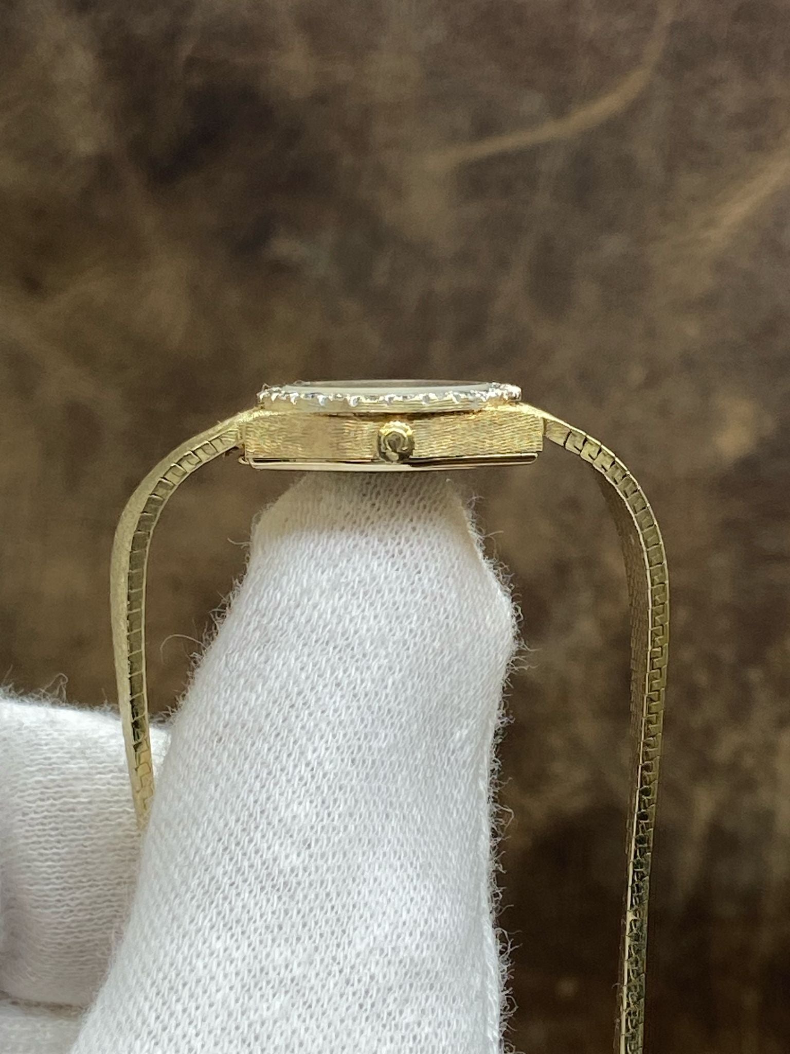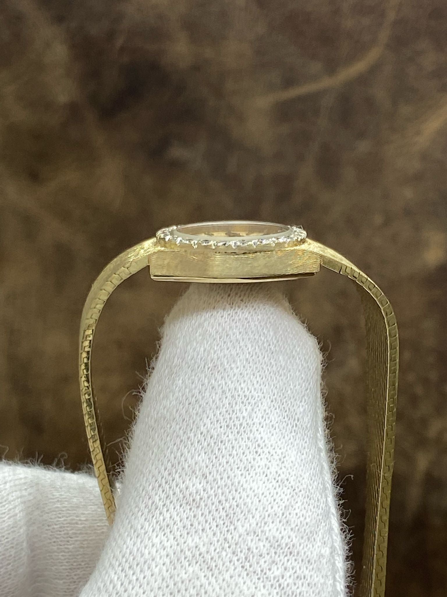 - Bezel Material 14K Gold with diamonds
