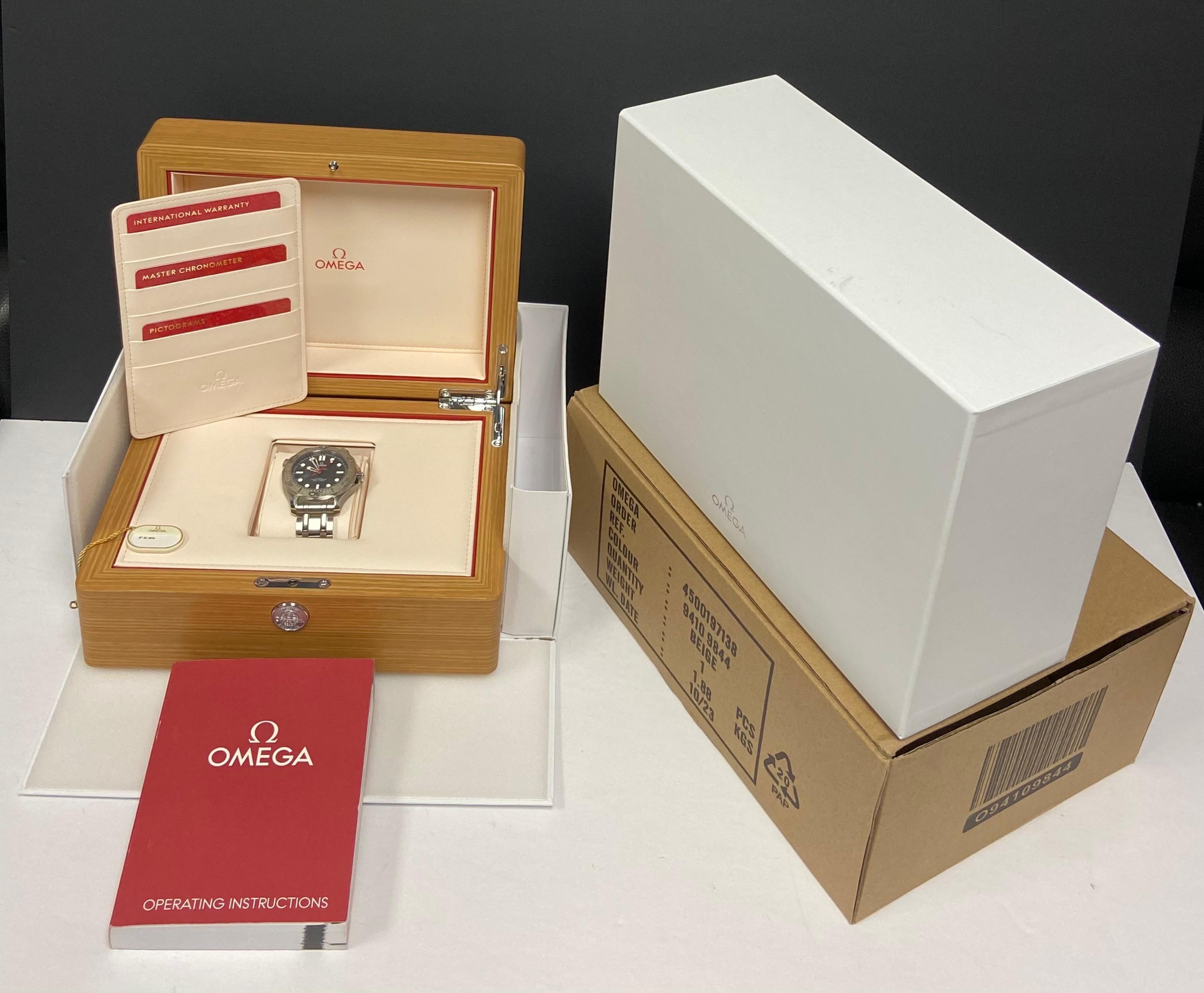 - original Omega double box, tag, booklet & matching pictograms, chronometer and warranty card dated 2025