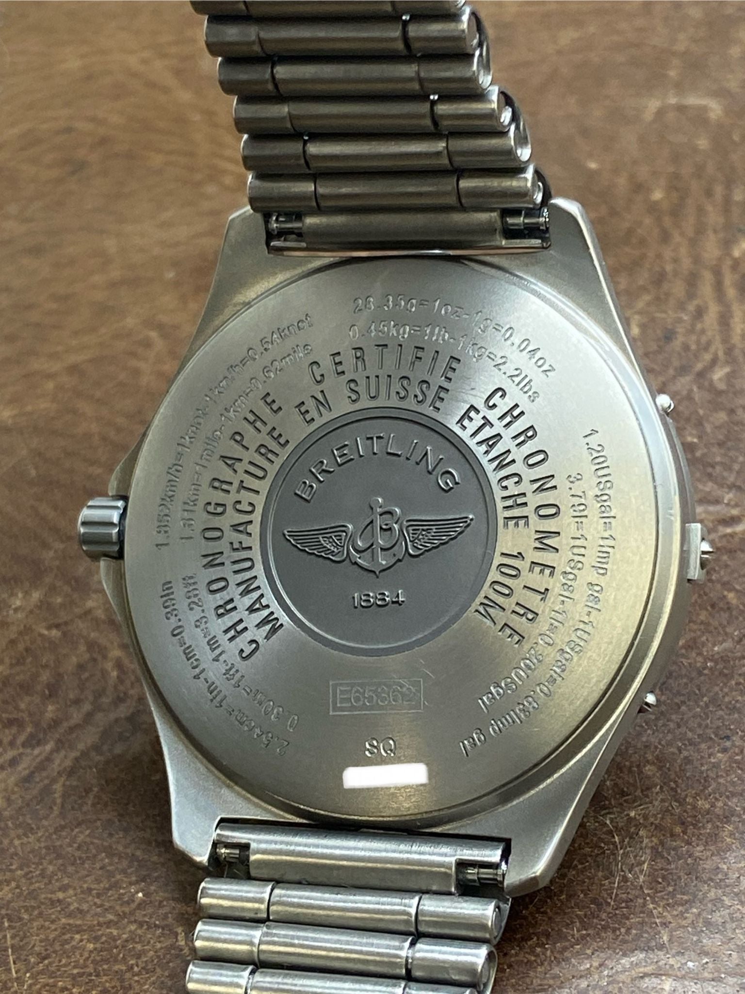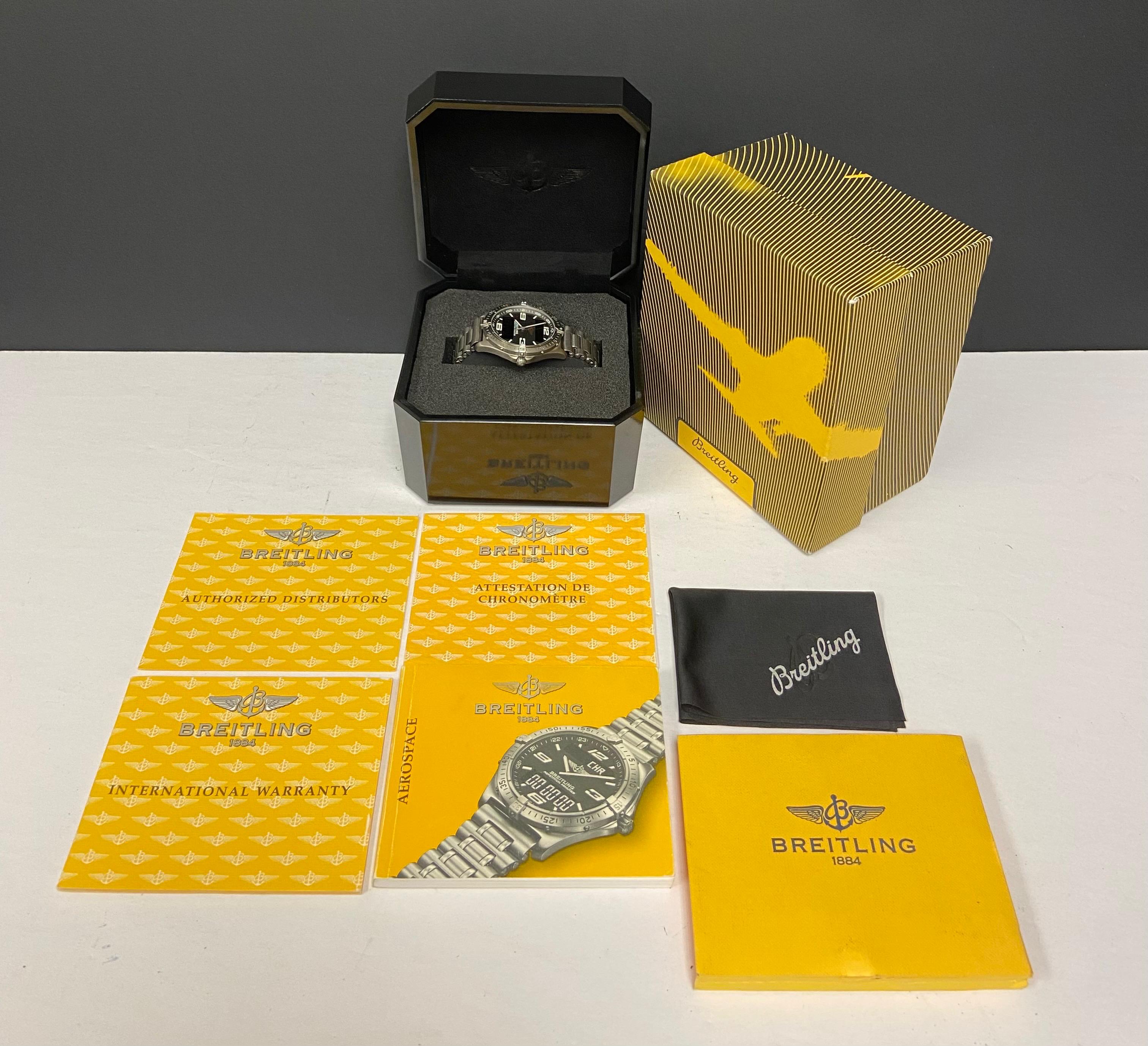 This pre-owned Breitling Aerospace Titanium E65362 is in excellent condition and comes with: original Breitling double box, booklets and matching warranty papers dated 2000. The watch went under full service with Breitling in Dec 2022. Max wrist size: 7.5 in.