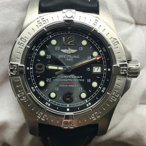 In 1940, Breitling unveiled the Chronomat watch, characterized by a patented rotating slide rule for technicians and scientists to compute complex calculations. In 1952, the Breitling Navitimer (a contraction of the words "Navigation" and "Timer") was born, taking the Chronomat’s slide rule but fitting it into a pilot’s timepiece as a tool watch for aviators. Then, in 1957, Breitling introduced the SuperOcean dive watch to compete with similar offerings from Rolex, Blancpain, and Omega launched earlier that decade. The Chronomat, Navitimer, and SuperOcean continue to be a part of Breitling’s current catalog of watches.
