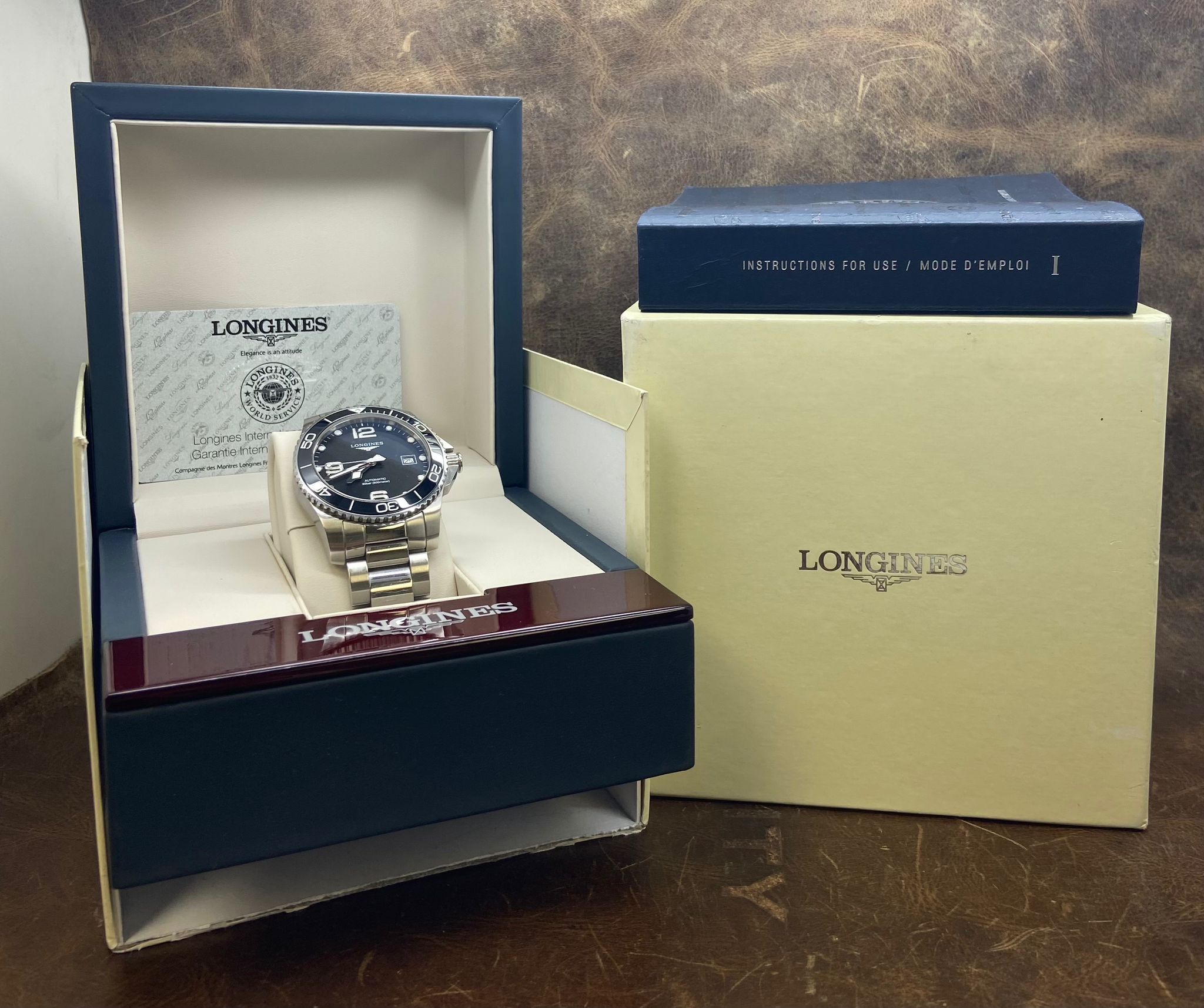 - original Longines double box, booklet and matching warranty card dated Feb 2020