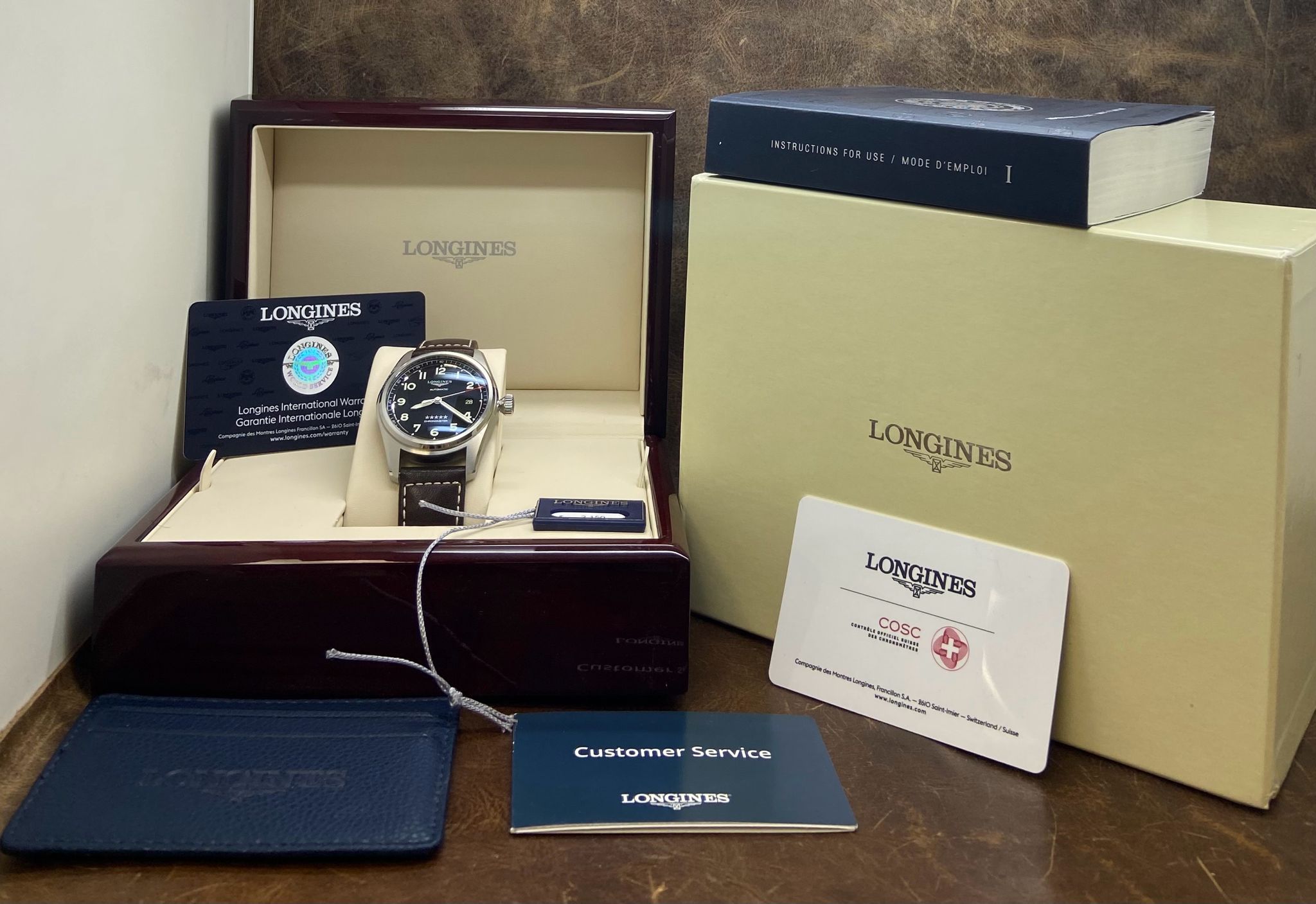 - original Longines double box, tag, booklets and matching warranty card dated 2021