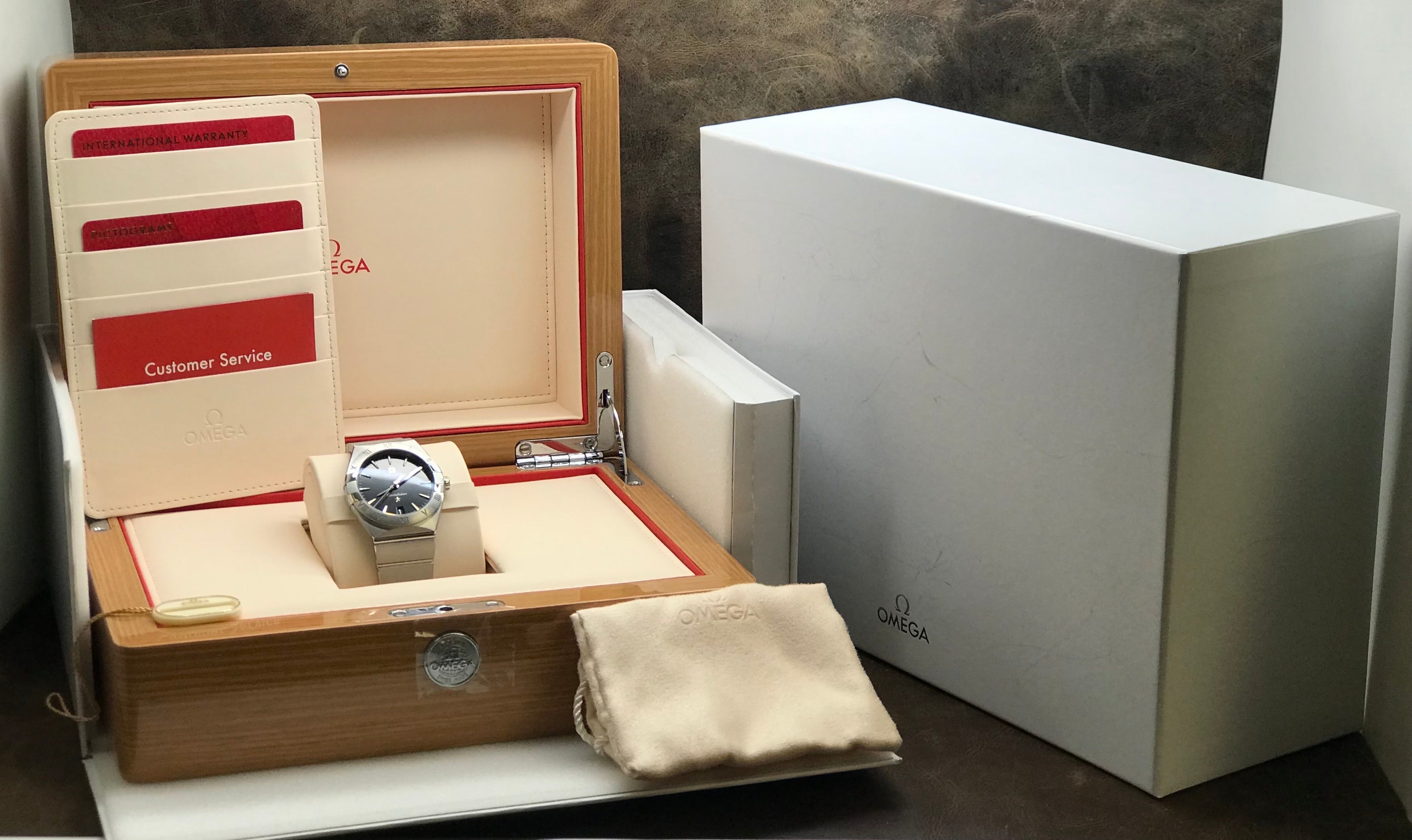 - original Omega double box, tag, booklet & matching pictograms and warranty card dated Dec 2021