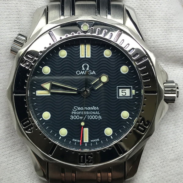 The Omega Seamaster, created in 1948, began to peak in popularity in the 1950s and 1960s as sports watches earned widespread use. The timepiece most commonly features a stainless steel case and bracelet, along with an Omega symbol clasp. The case-back proudly displays the Omega logo, and the bezel is unidirectional with a blue, black, or silver dial. Thanks to its helium release valve, the watch is water-resistant to an impressive 1200 meters. The luminescent hands and anti-reflective sapphire crystal enhance visibility.