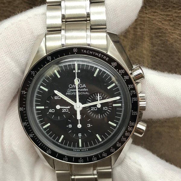While the Omega Speedmaster was originally conceived as a watch for motorsports, characterized by the combination of a stopwatch function and the tachymeter scale engraved on the bezel (the very first chronograph to move the tachymeter from the dial to the bezel), the watch soon became world famous for its association with space exploration. The Speedmaster Professional became flight-qualified by NASA in 1965 and it made history in 1969 when it became the first watch worn on the moon by Buzz Aldrin. As such, the Omega Speedmaster Professional is now affectionately known as the "Moonwatch". Vintage Speedmaster Professional watches are particularly popular in the secondary market.