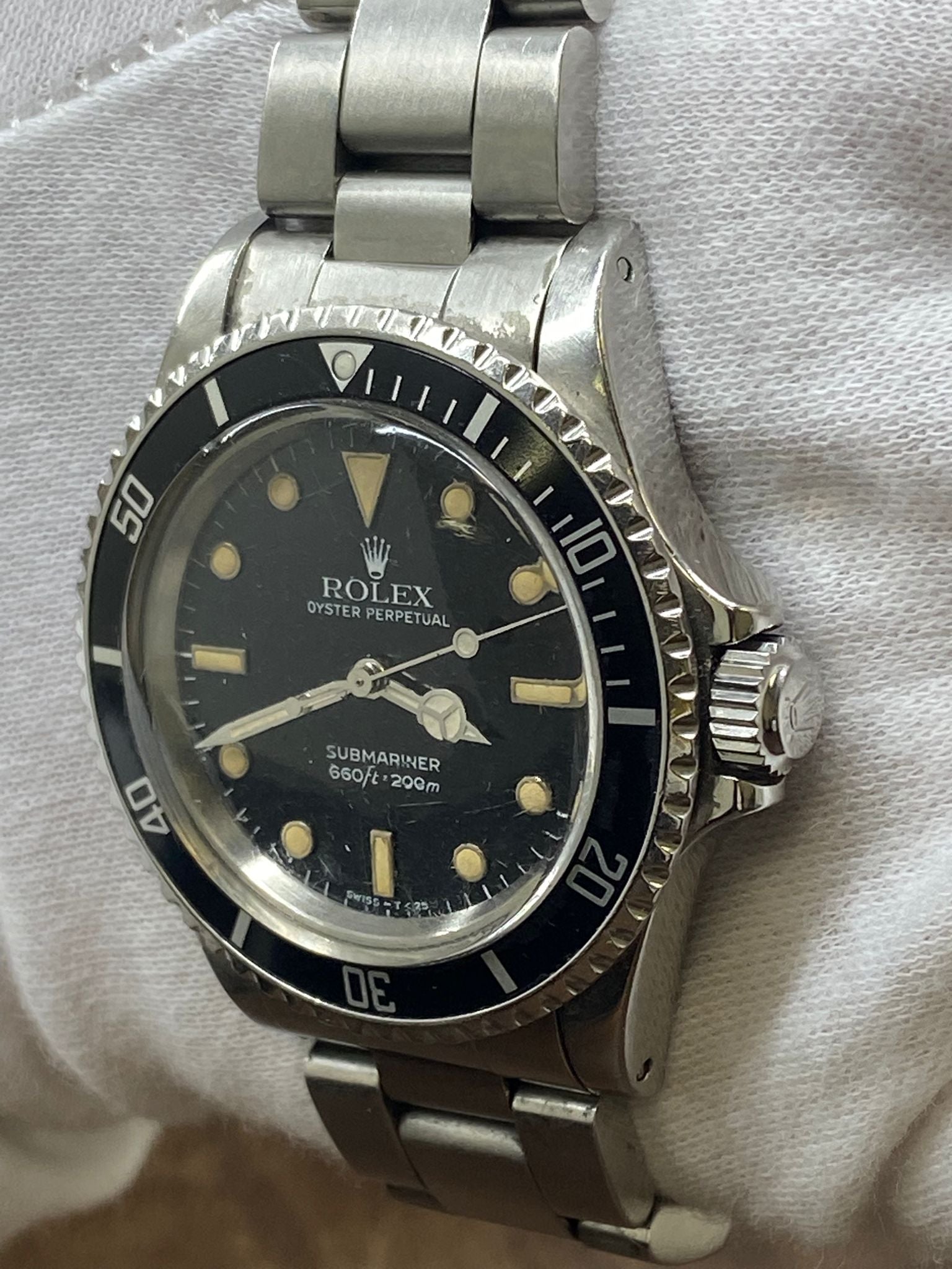 This pre-owned Rolex Submariner No-Date Vintage 5513 is in very good condition and comes with: NO box or papers. The watch has several signs of wear on the case, insert, crystal and bracelet but overall in great condition and NOT over-polished. Max wrist size: 6.75 in.
