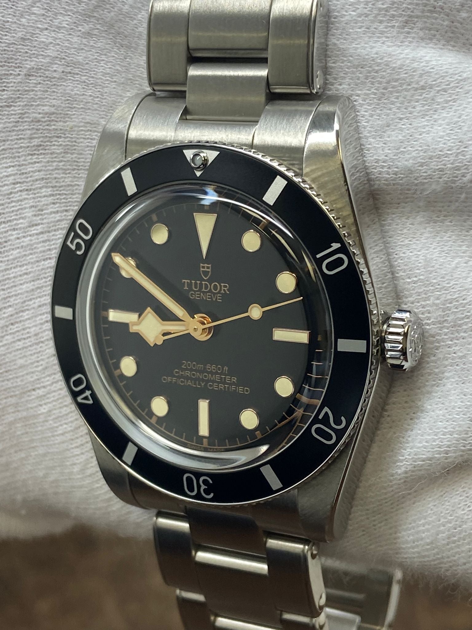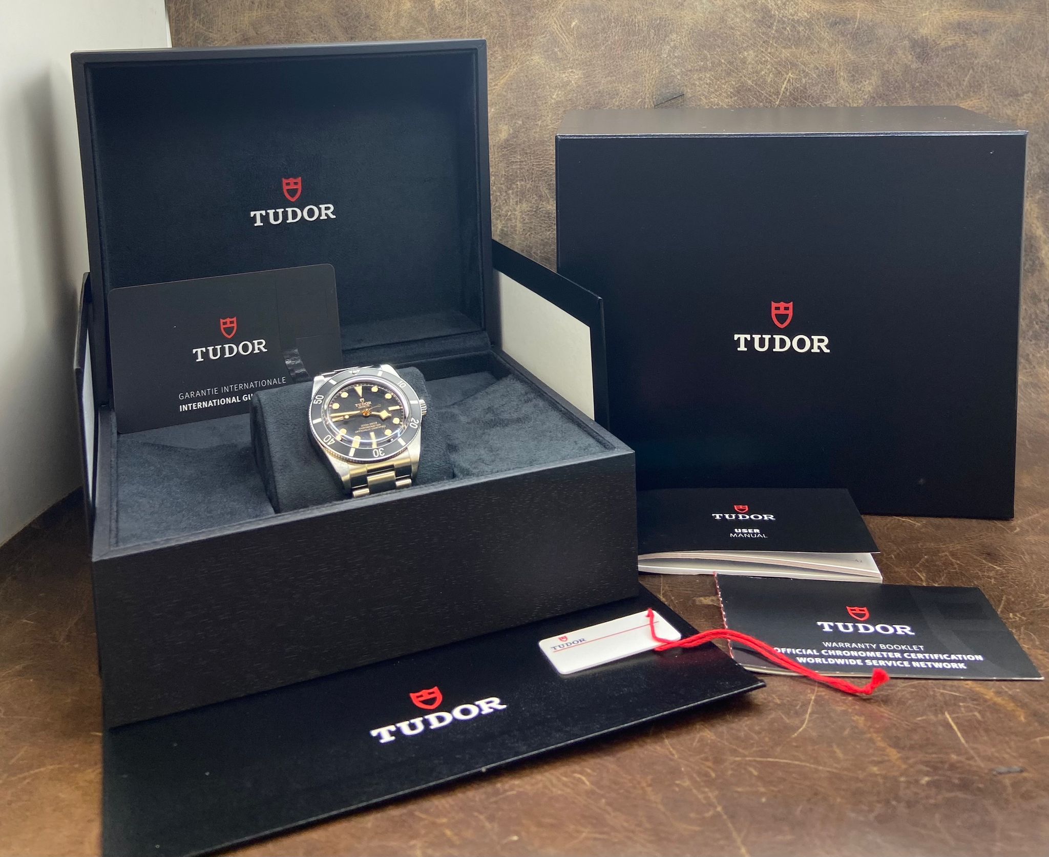This pre-owned Tudor Black Bay 54 79000N is in mint condition and comes with: original Tudor double box, booklets, tag and matching warranty card dated May 2023. Max wrist size: 8.25 in.