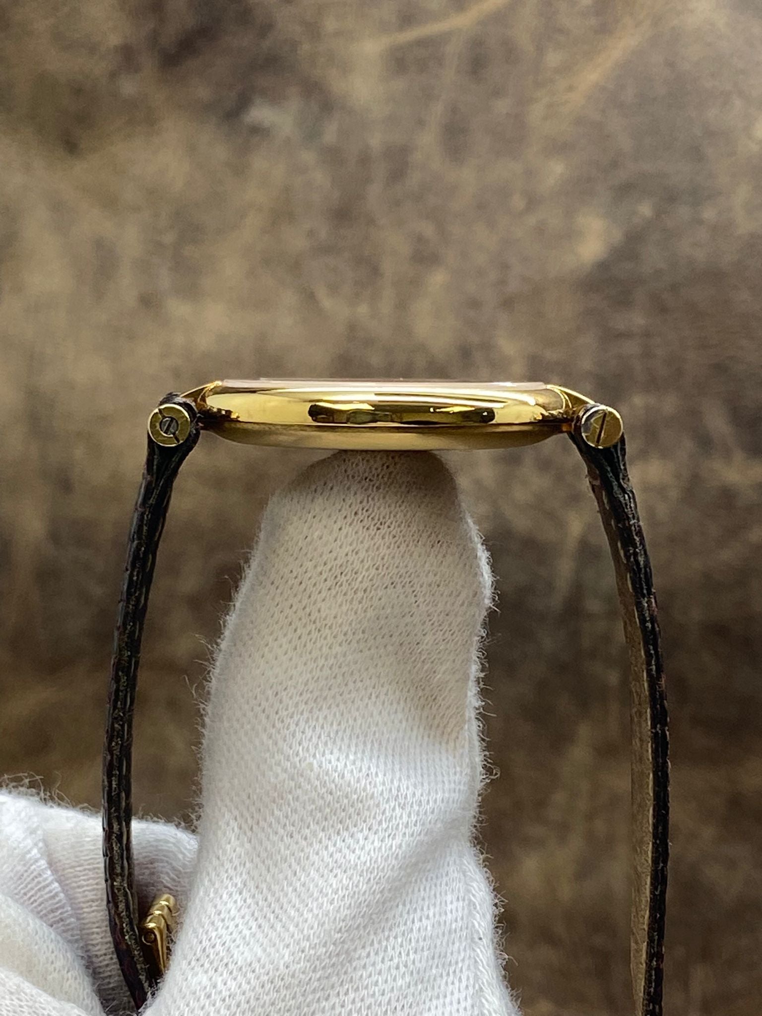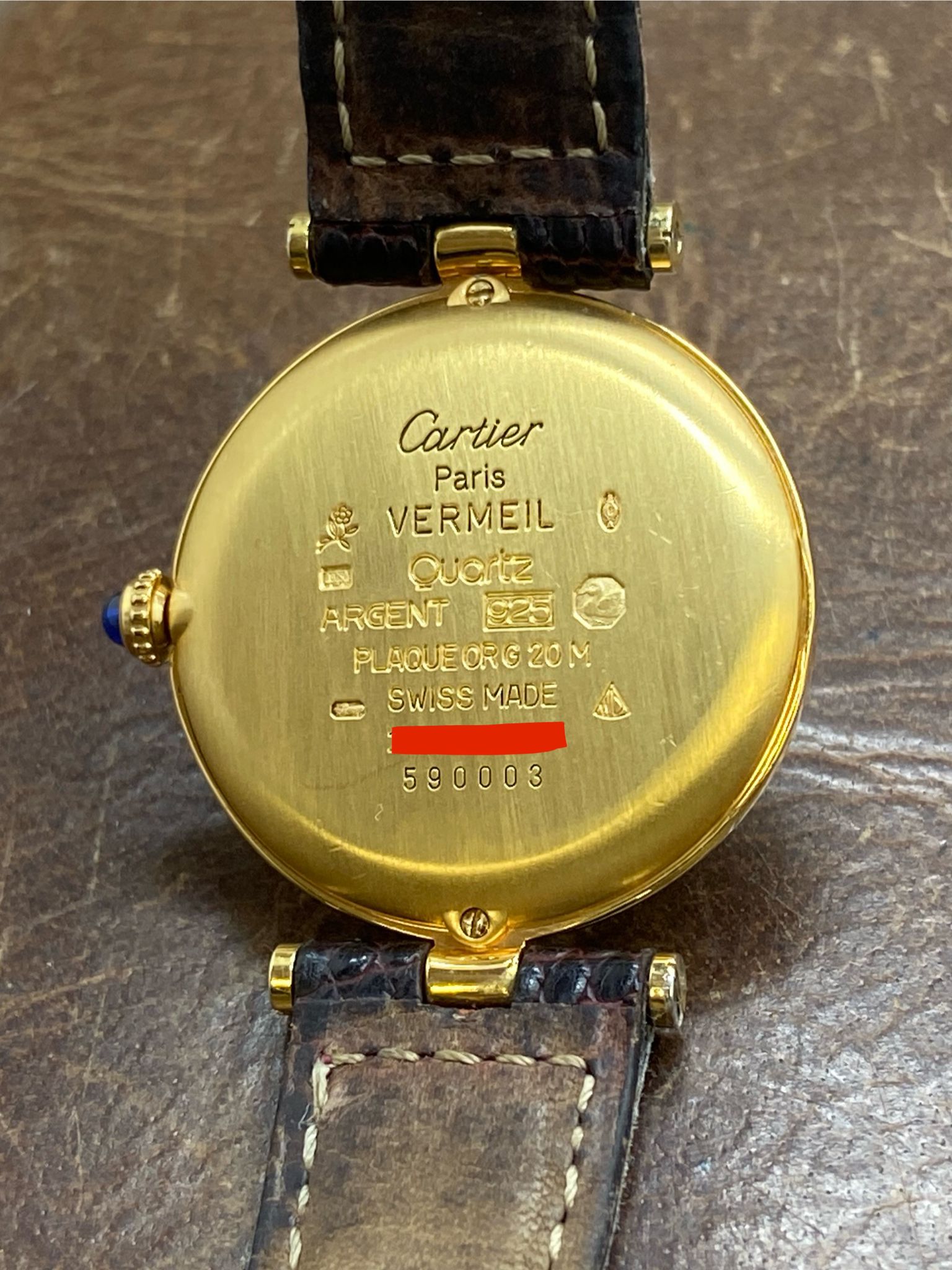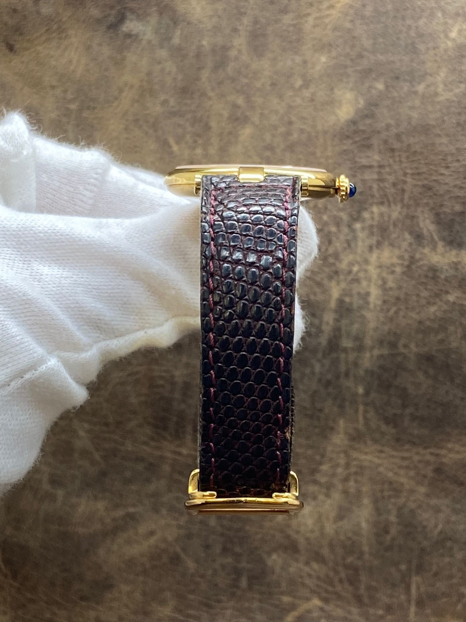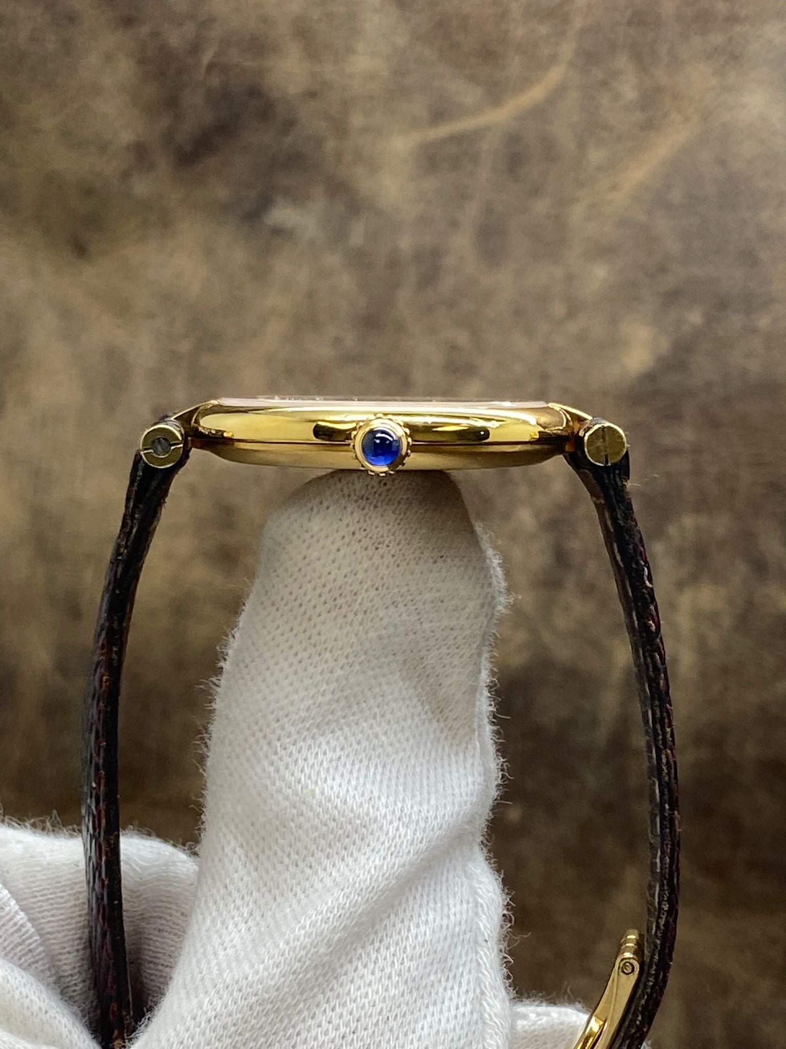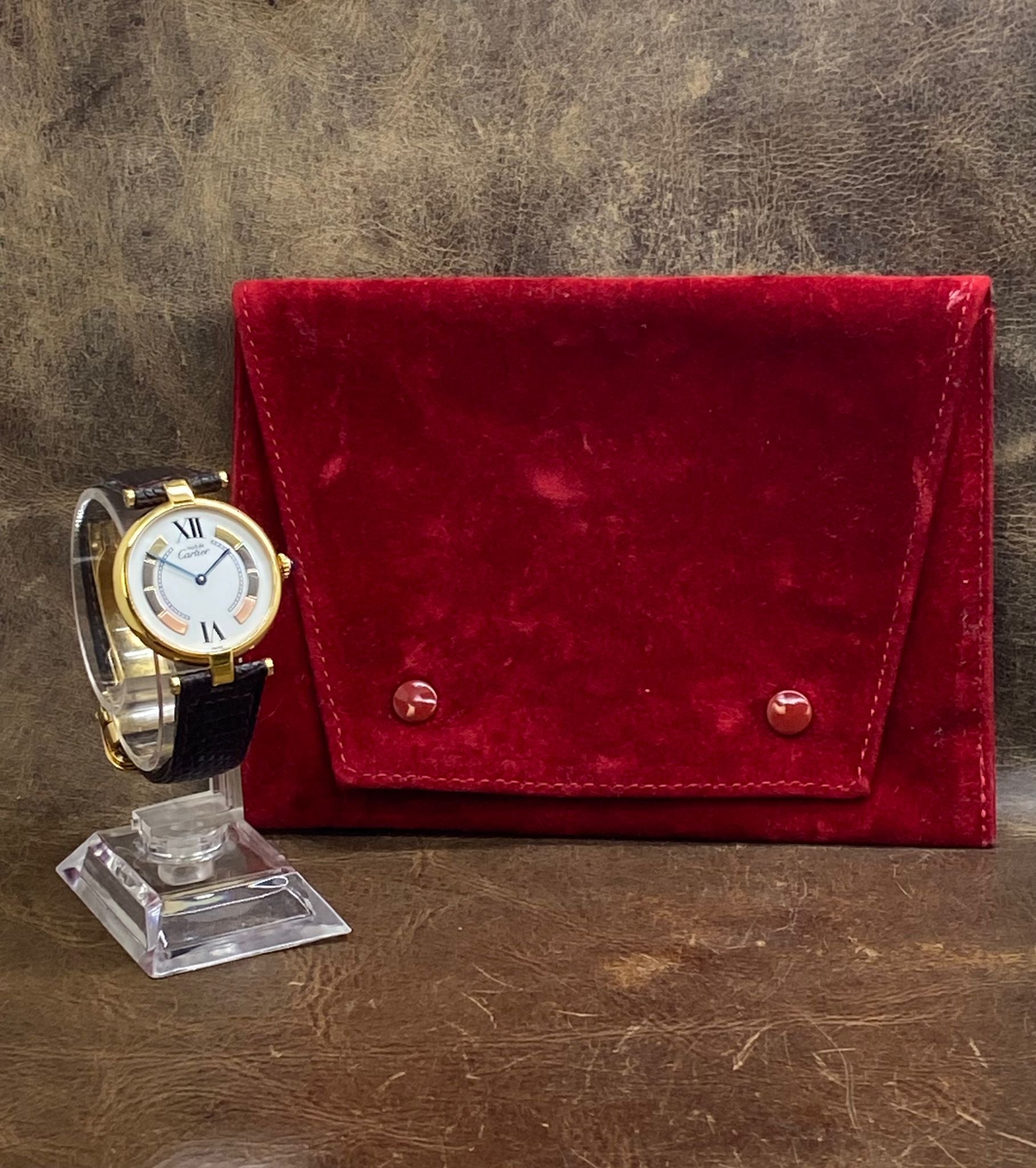 This pre-owned Cartier Must de Cartier Vermeil 590003 is in very good condition and comes with: NO box or papers. The dial has some signs of wear on the gold parts near 2 & 5 o'clock. Max wrist size: 6.25 in.