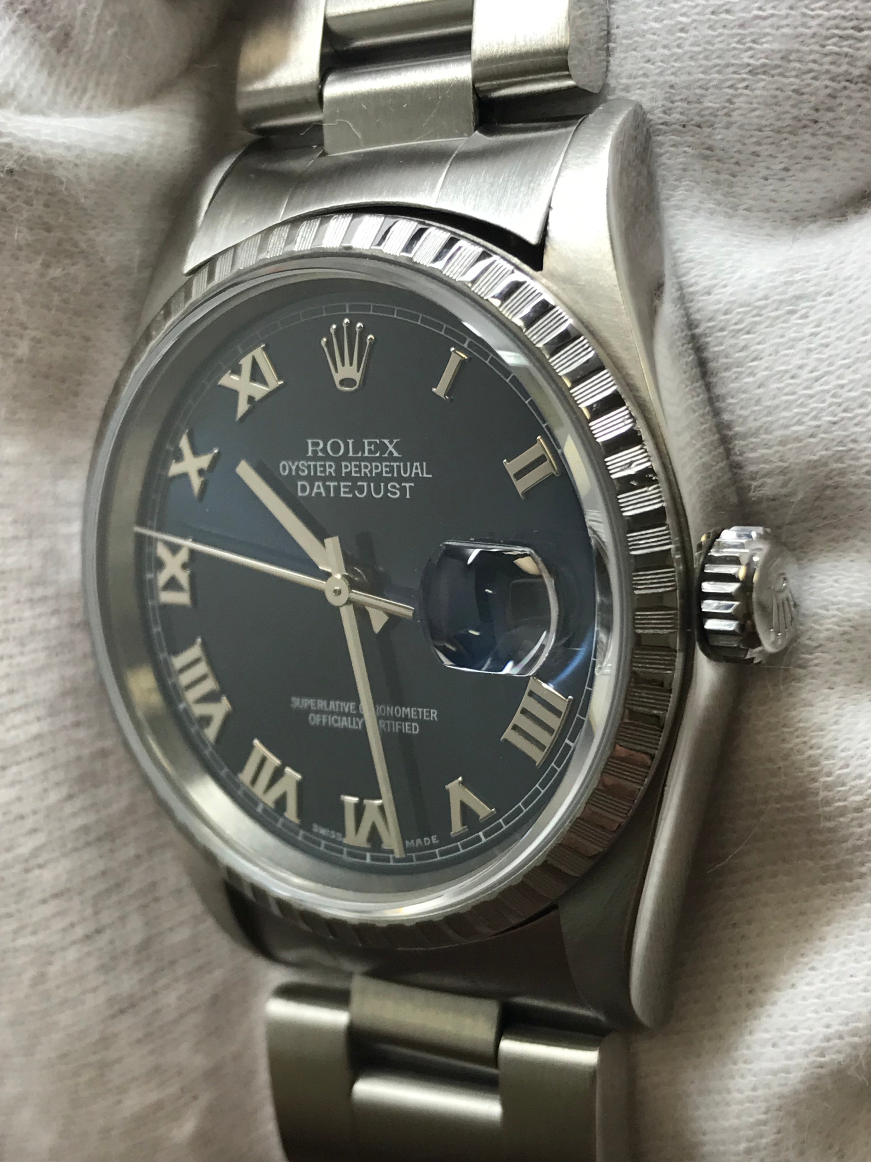Rolex Datejust 36mm 16220 Blue Roman Dial Automatic Watch