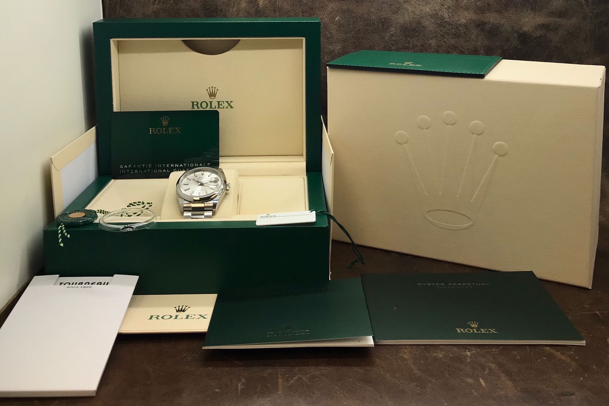 This pre-owned Rolex Datejust 36mm 126200 is in unworn - full stickers condition and comes with: original Rolex double box, tags, booklets and matching warranty card dated March 2022. the watch is unworn with full stickers but has a few very minor handling marks on the bracelet. Max wrist size: 6.5 in.