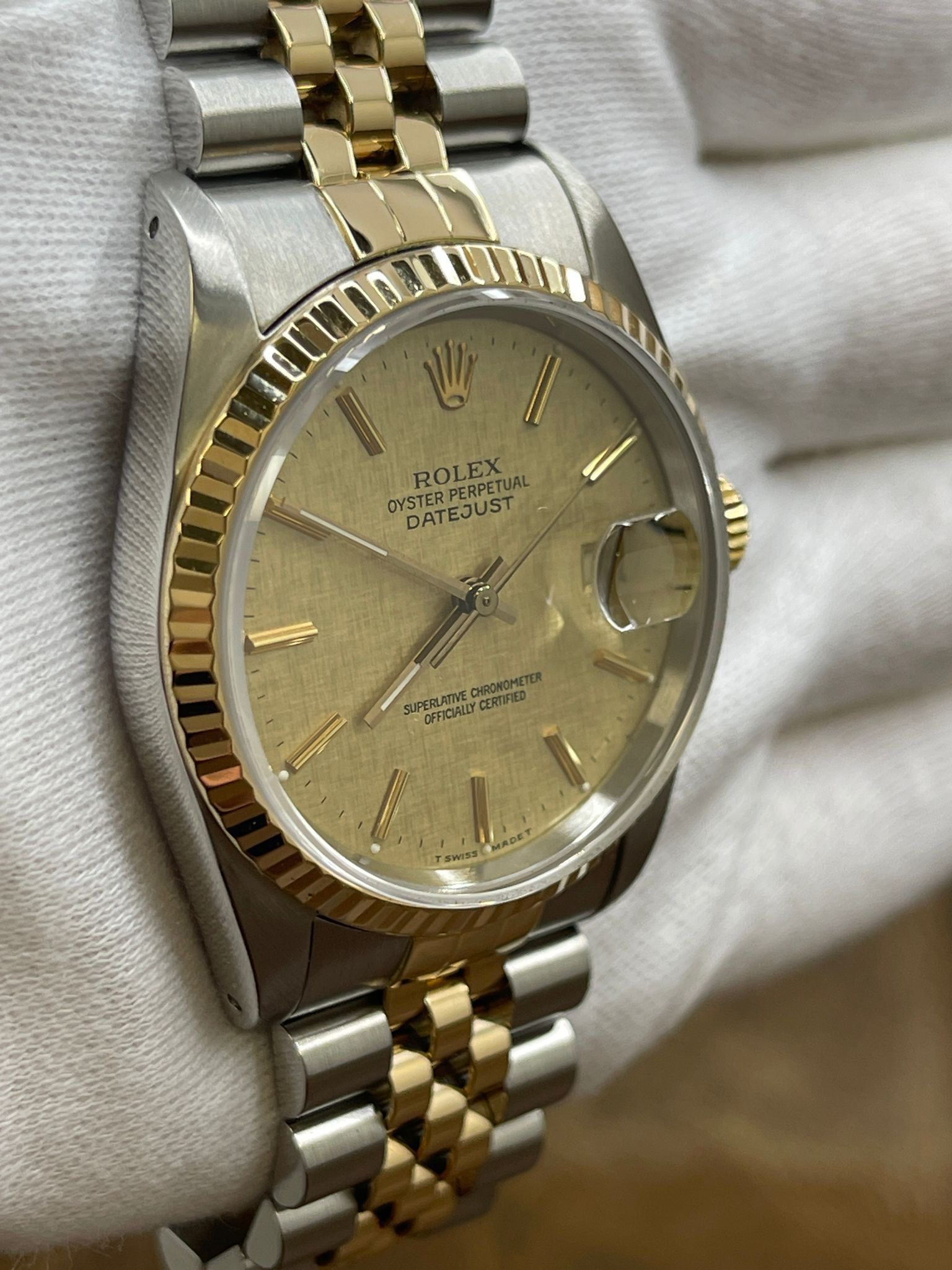 Rolex Datejust 36mm 16233 Champagne Linen Dial Automatic Watch