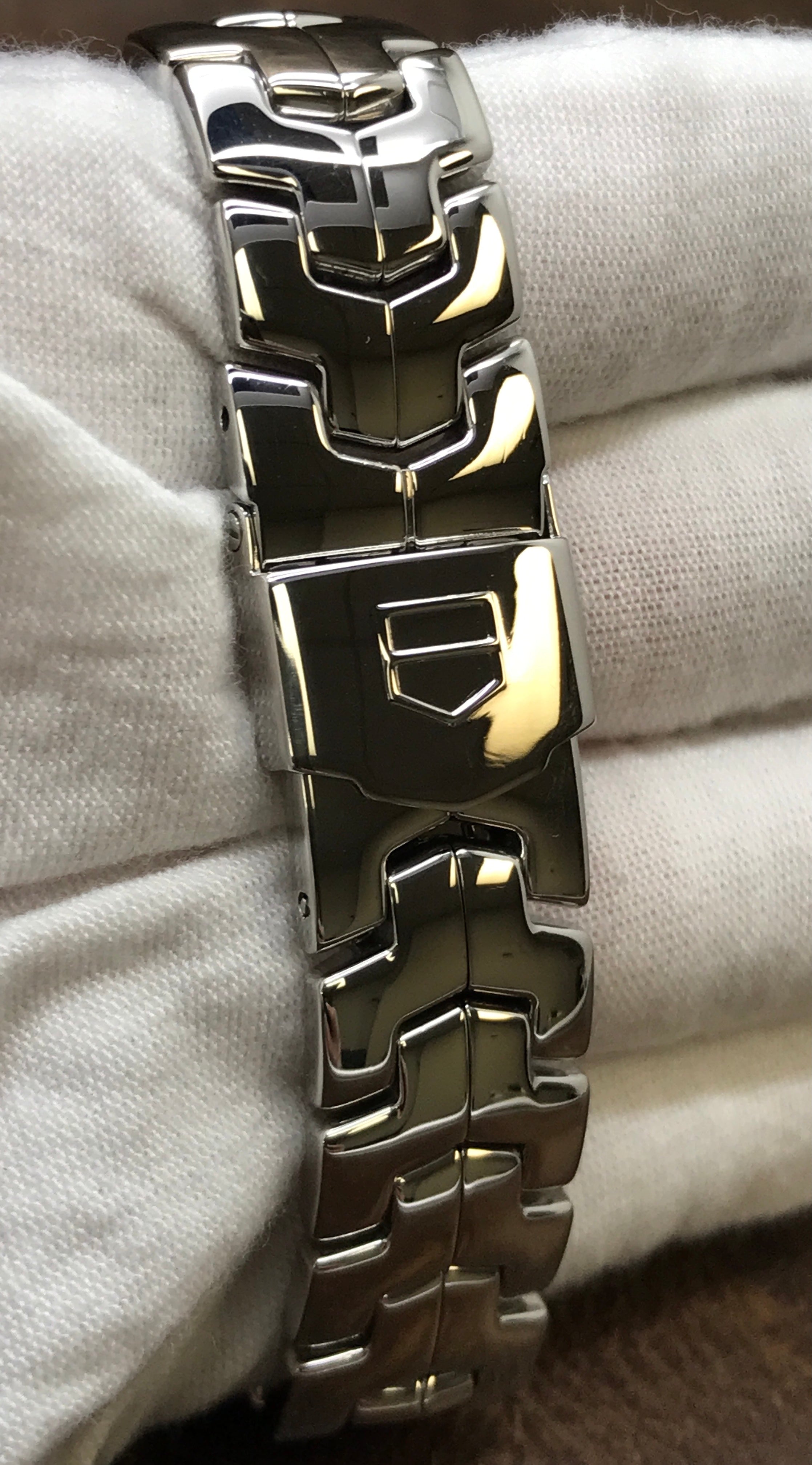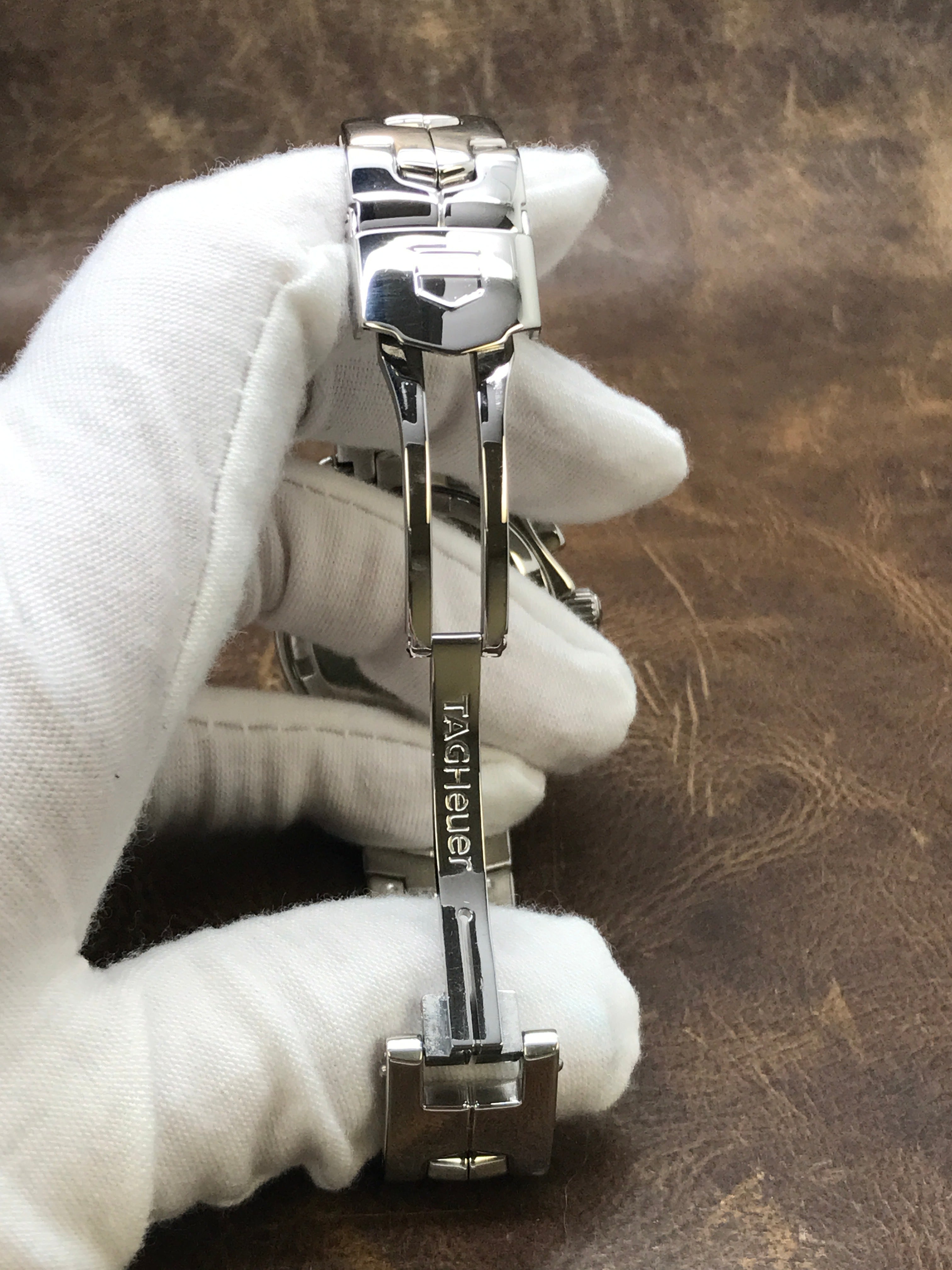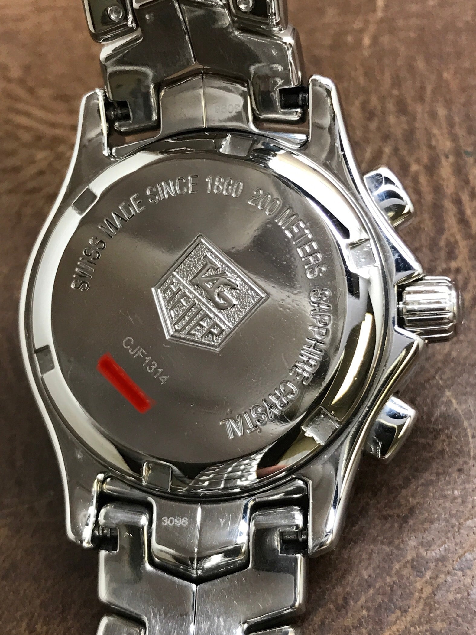 This pre-owned TAG Heuer Link Chronograph CJF1314 is in excellent condition and comes with: NO box or papers. there is a minor mark on the silver minute tracker near 5 o'clock. Max wrist size: 6 in.