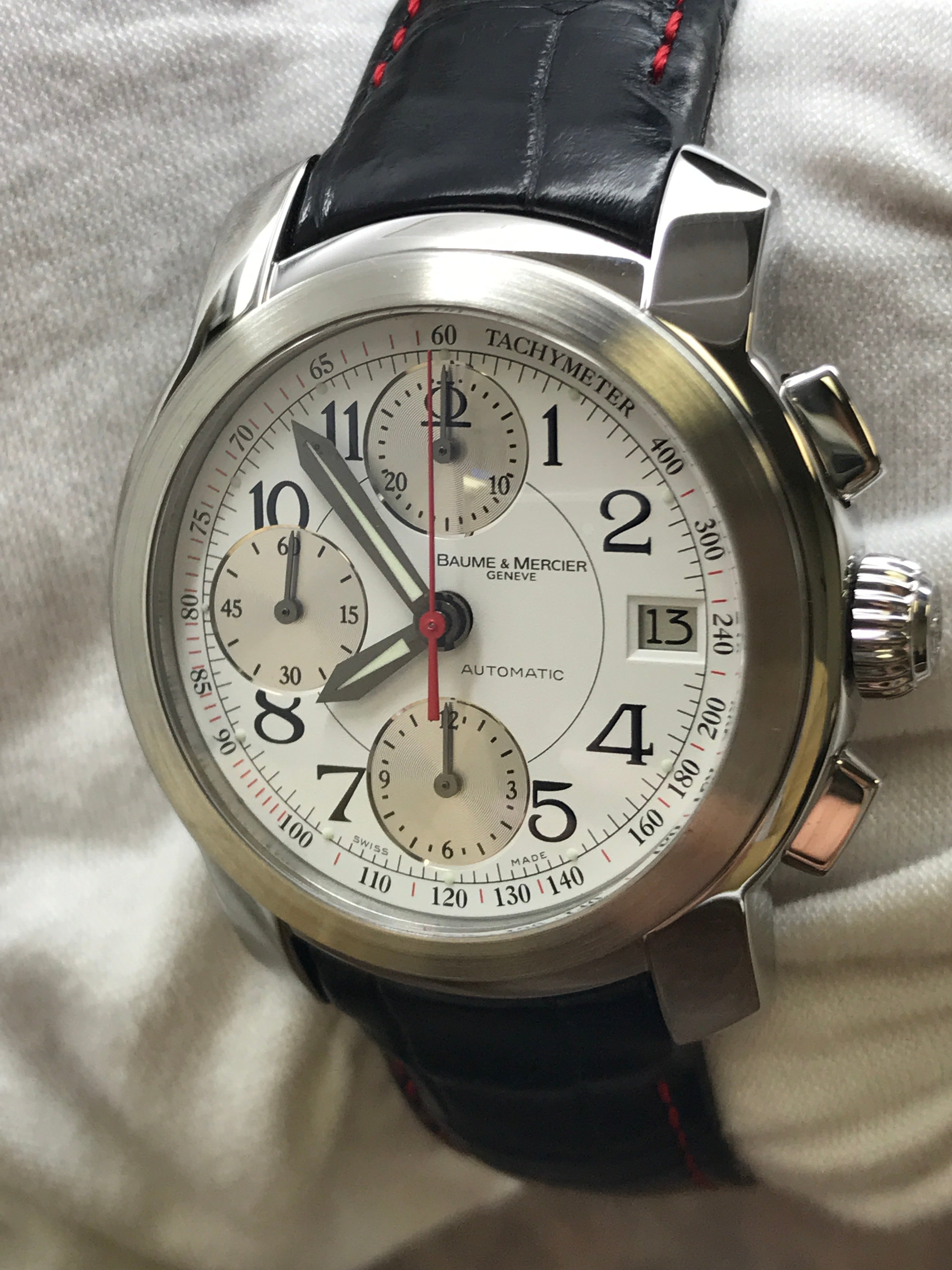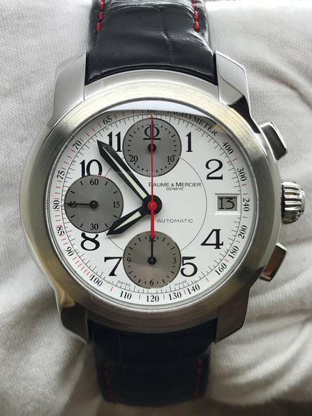 This pre-owned Baume & Mercier Capeland MV045216 is in excellent condition and comes with: original Baume & Mercier double box, booklet & matching warranty card dated 2004. Max wrist size: 7 in.