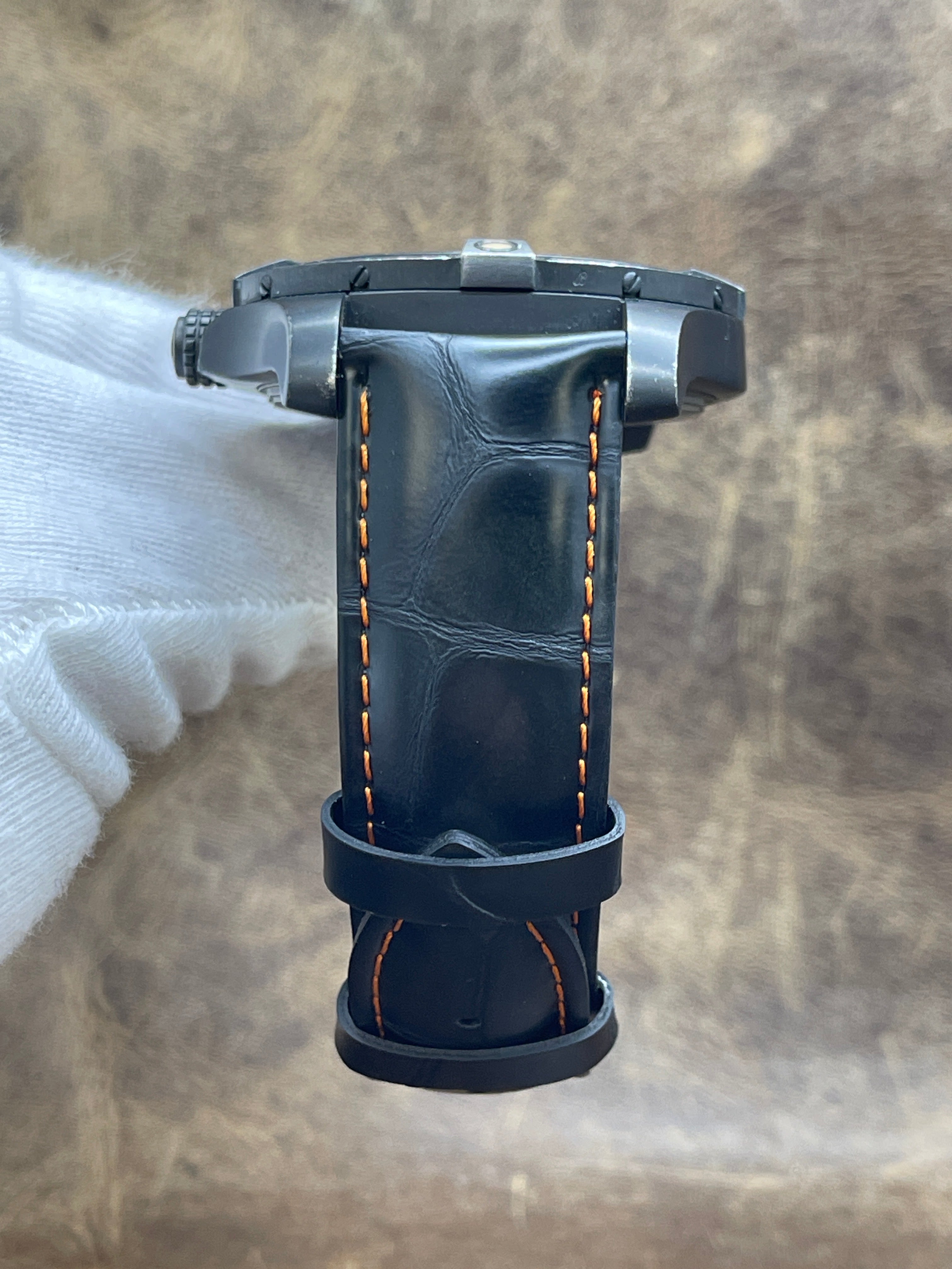 - Features Date; Hour; Minute; Seconds; DLC coated titanium; Leather; Analog; strap